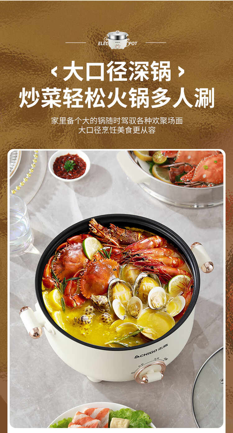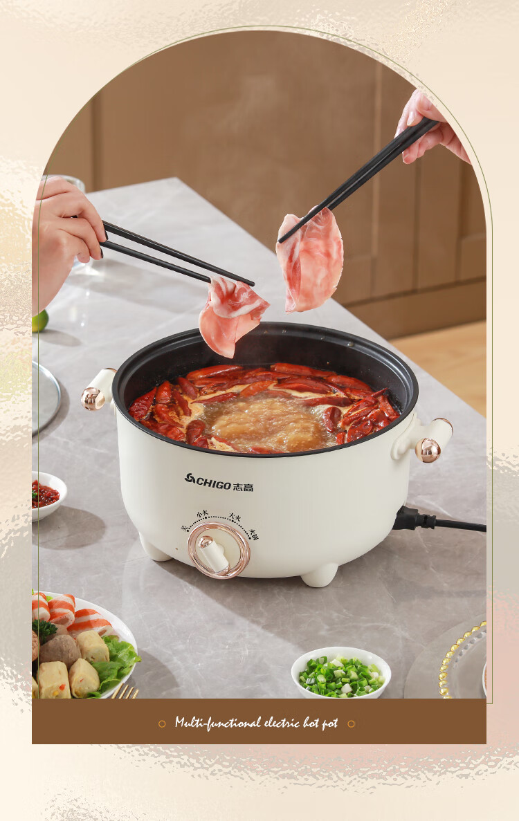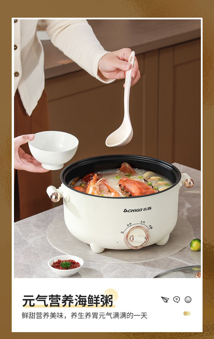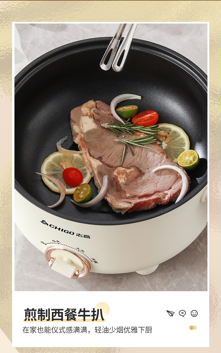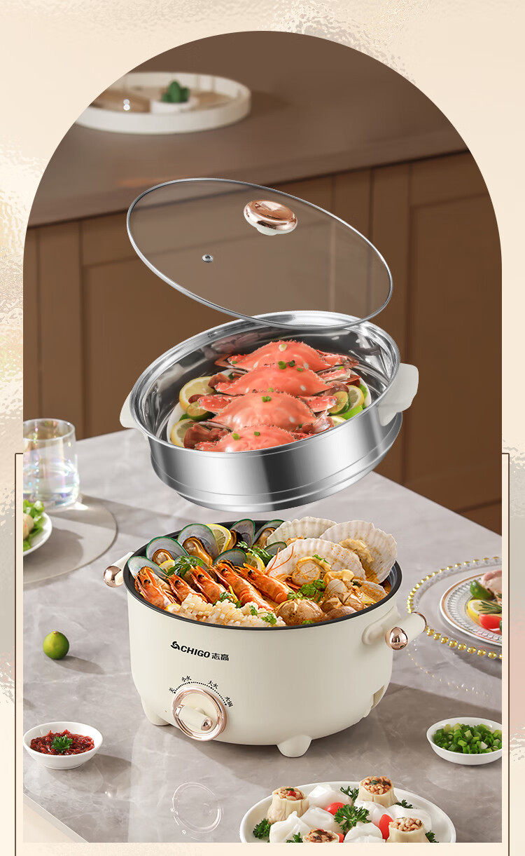 志高火锅专用锅电煮锅电火锅电热火锅宿舍学生锅电蒸锅家用多功能一体式煎炒蒸煮小电锅电炒锅小型 2L 【1人】20CM+1.5米电线