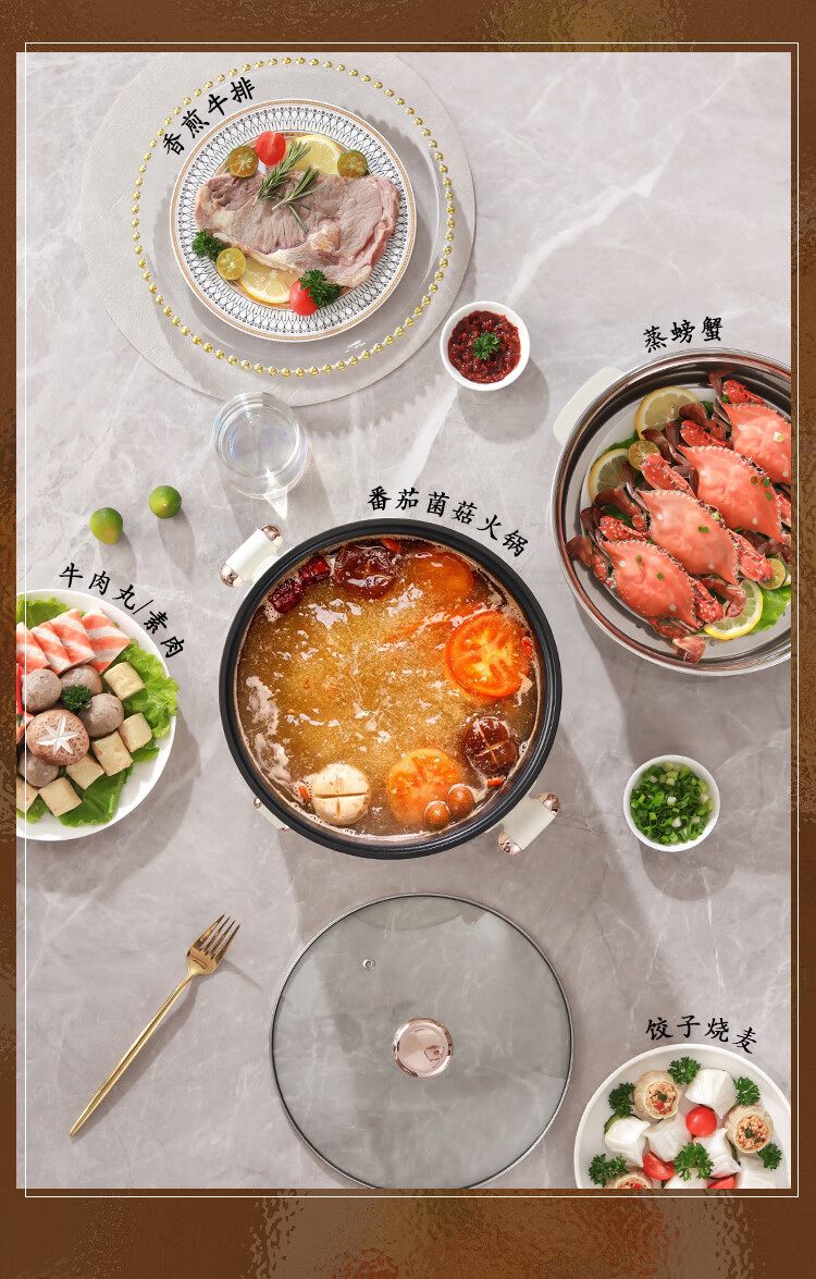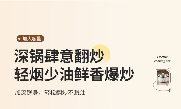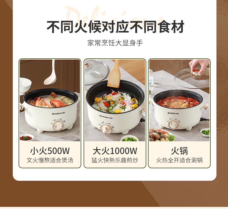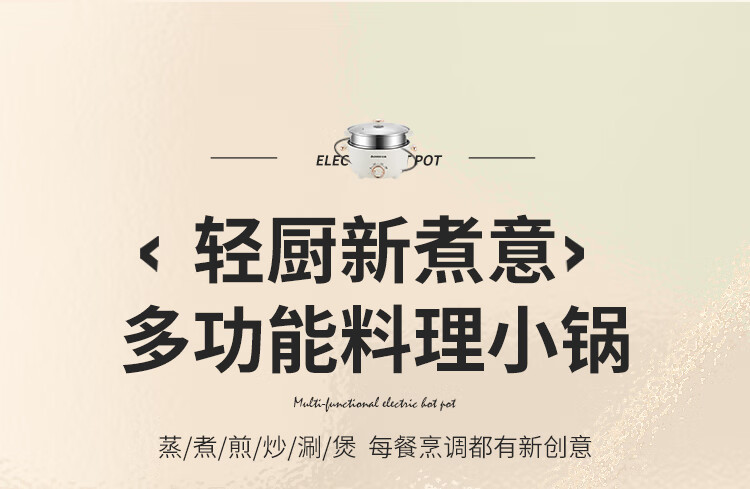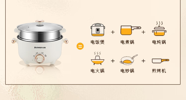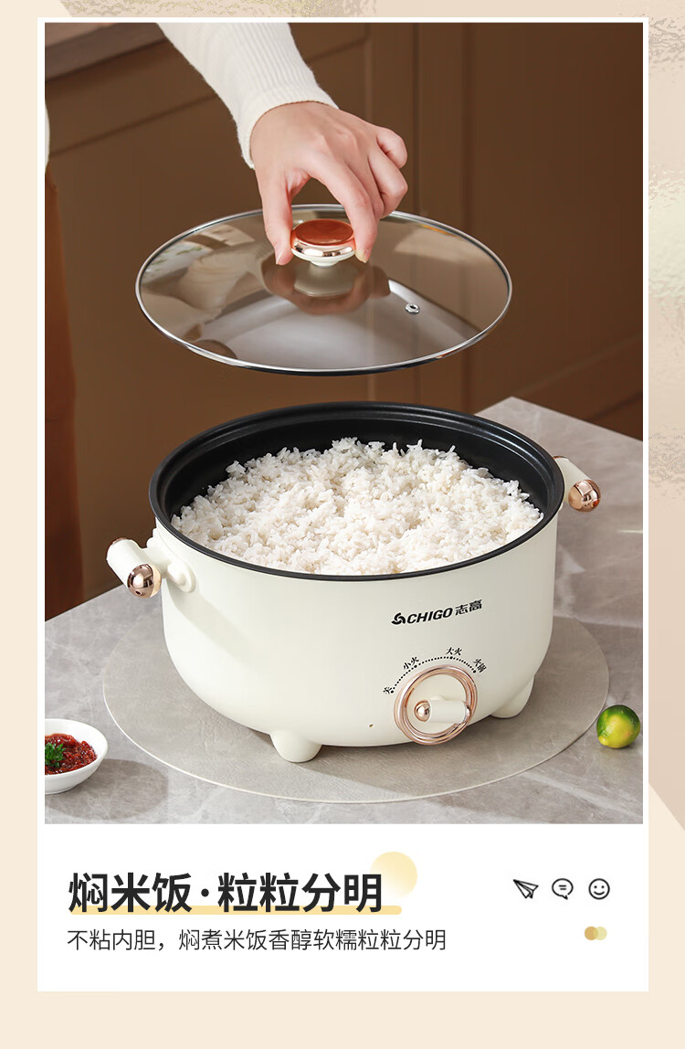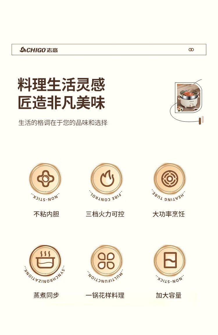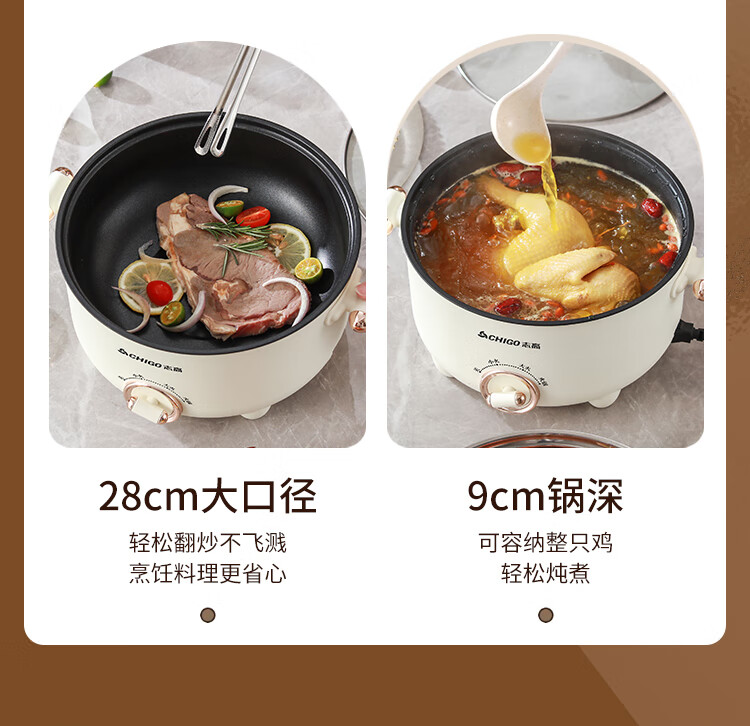 志高火锅专用锅电煮锅电火锅电热火锅宿舍学生锅电蒸锅家用多功能一体式煎炒蒸煮小电锅电炒锅小型 2L 【1人】20CM+1.5米电线
