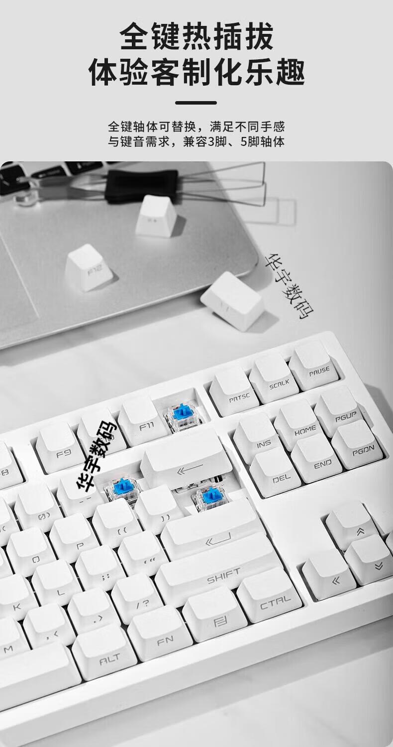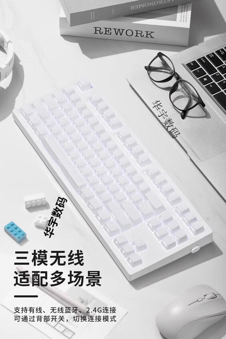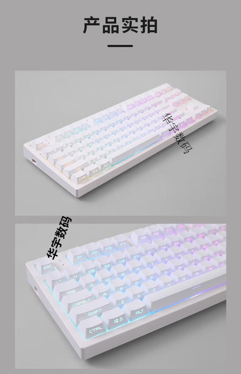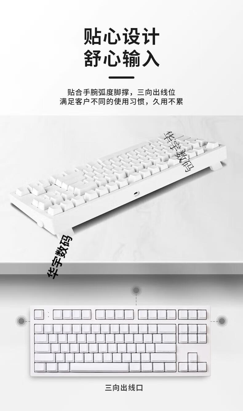 Fu Ling MK870 pure white side-engraved mechanical keyboard finished product customized kit 87 keys hot-swappable e-sports gaming office white three-template + pure white side-engraved keycaps green axis