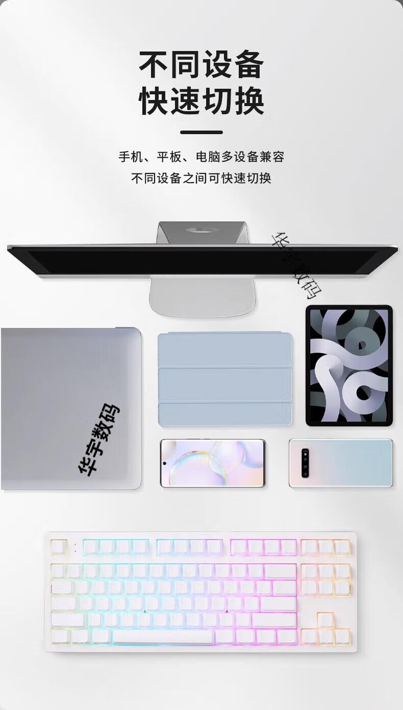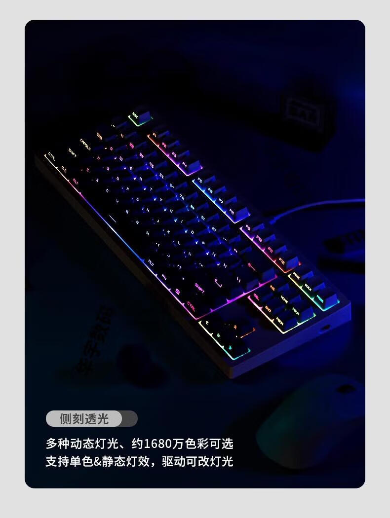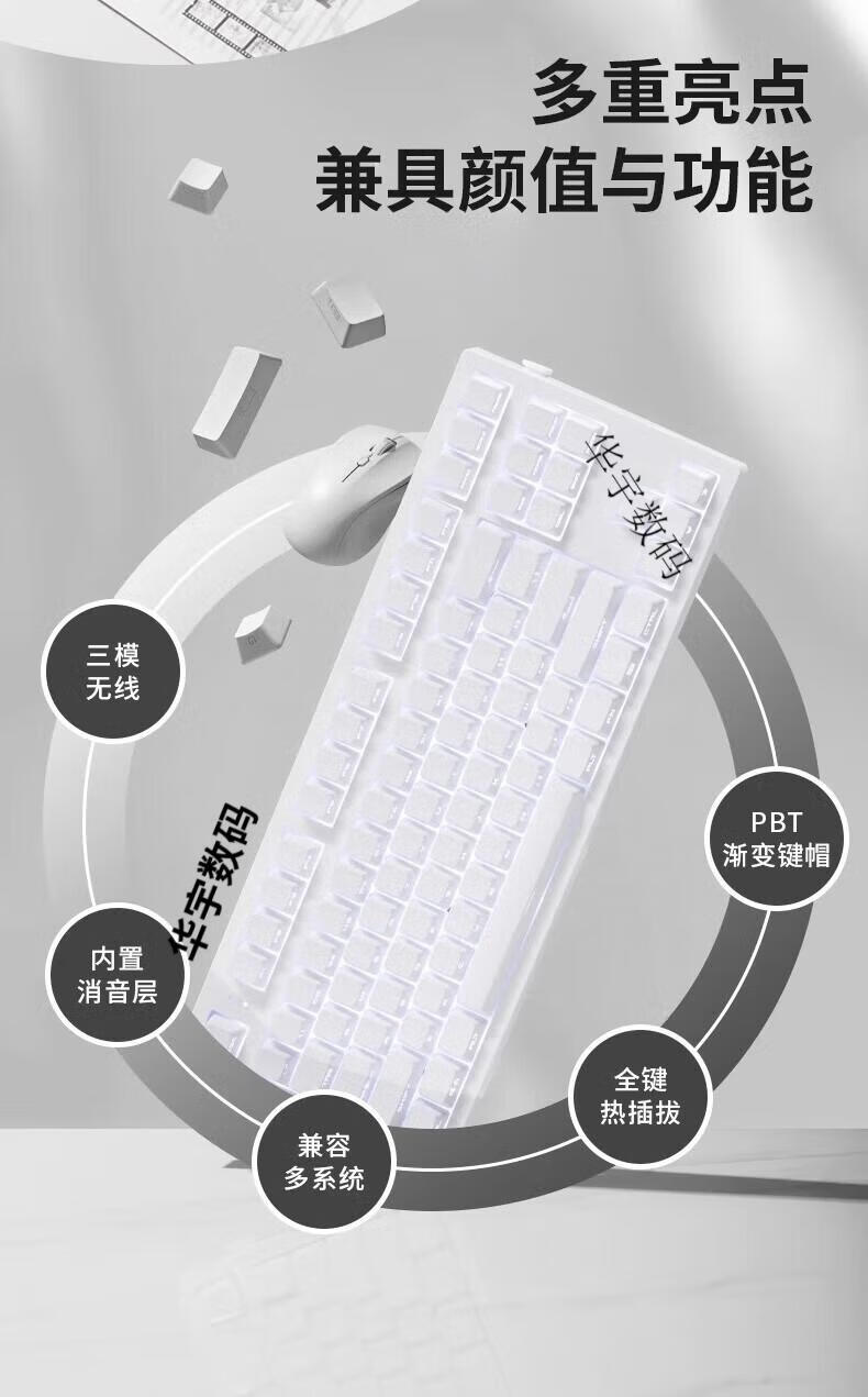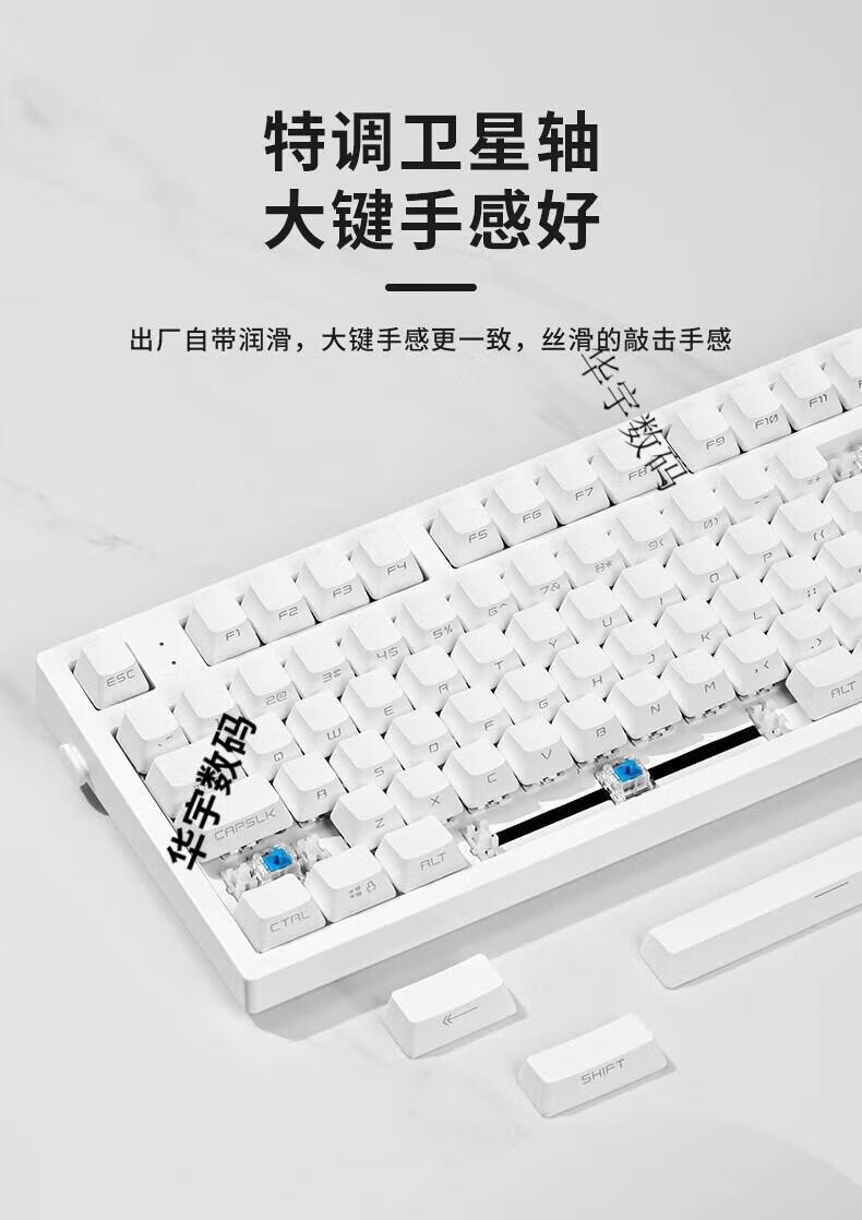 Fu Ling MK870 pure white side-engraved mechanical keyboard finished product customized kit 87 keys hot-swappable e-sports gaming office white three-template + pure white side-engraved keycaps green axis