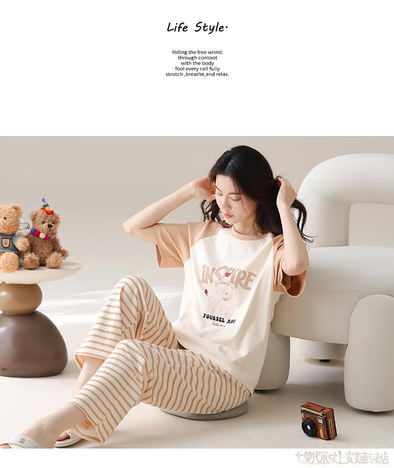 Modal-Pyjama für Damen, Sommer 2025, neue Kurzarm-Anzughose aus Baumwolle, dünne Streifen im koreanischen Stil, können draußen getragen werden Y9712 M (empfohlen 75–95 Jin Jin entspricht 0,5 kg)