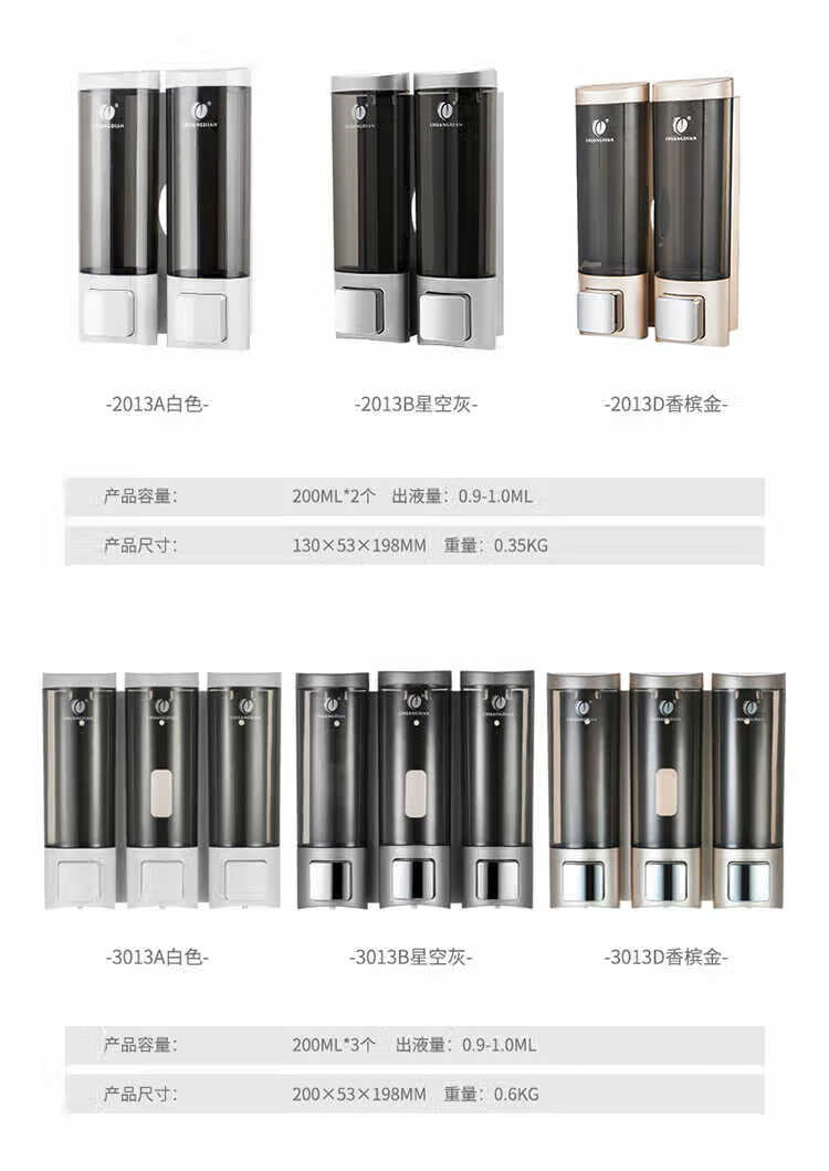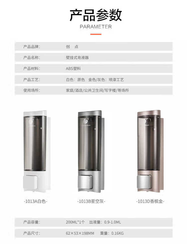 温以嘉CD-2013A酒店宾馆免打孔皂液器卫生间壁挂式洗手液盒按压盒子 银色1013B