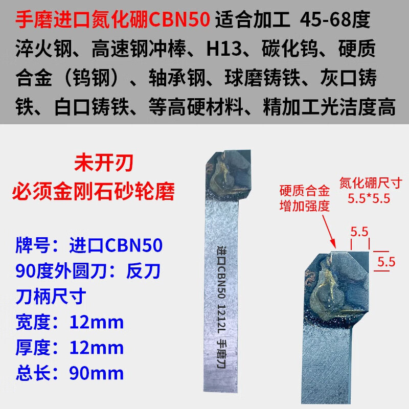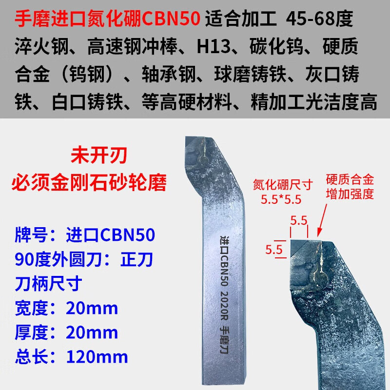 XMSJmnuhgCBN boron nitride hardened welding turning tool 20 square 90 degrees YS8 outer circle quenching ordinary knife YT726YD0 CBN50/inner hole 12140/hard steel cast iron