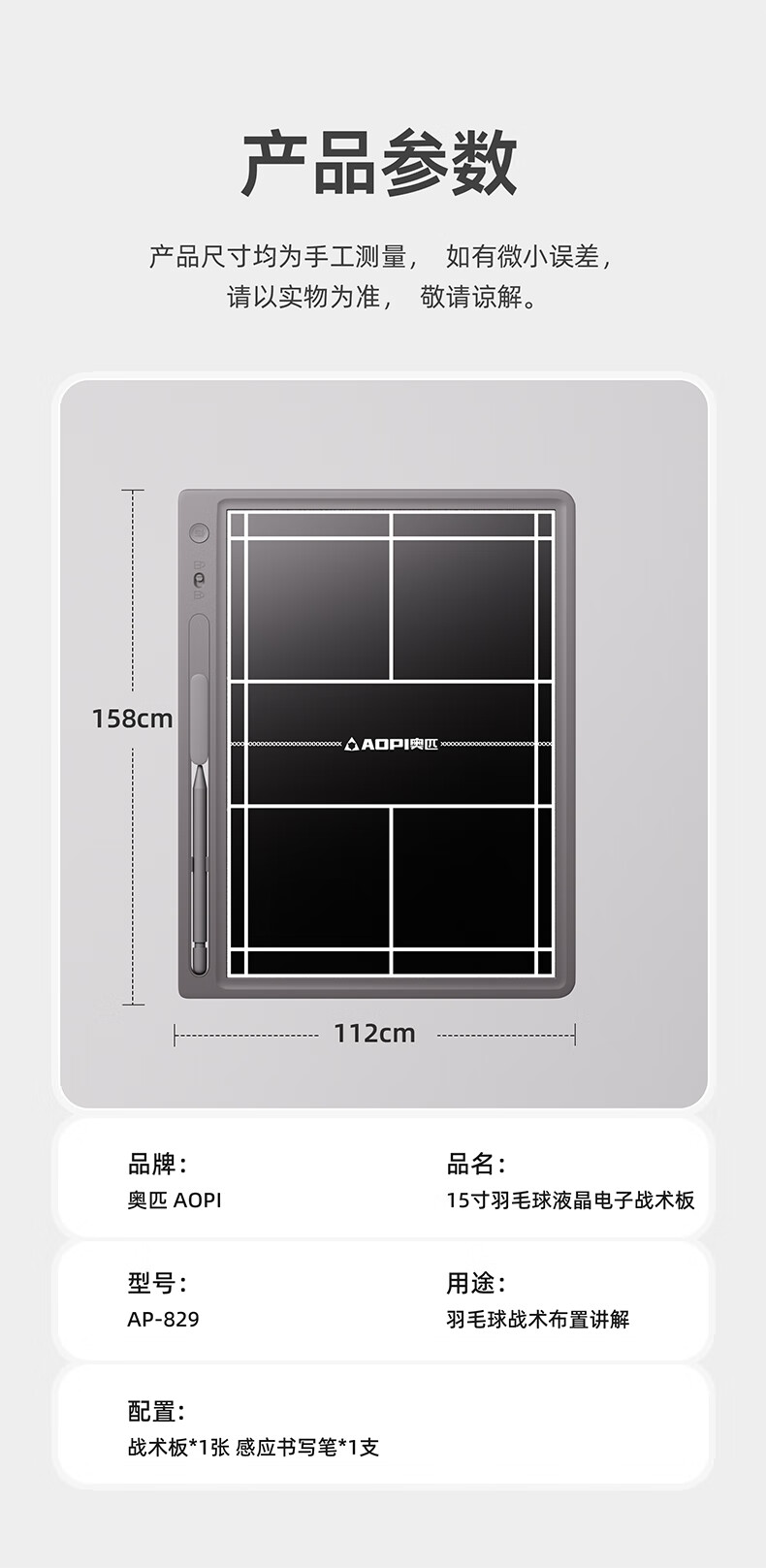 奥匹(AOPI)【新品】羽毛球电子战术板足球比赛训练示教板教练指挥教学技术板 羽毛球15英寸_AP-829