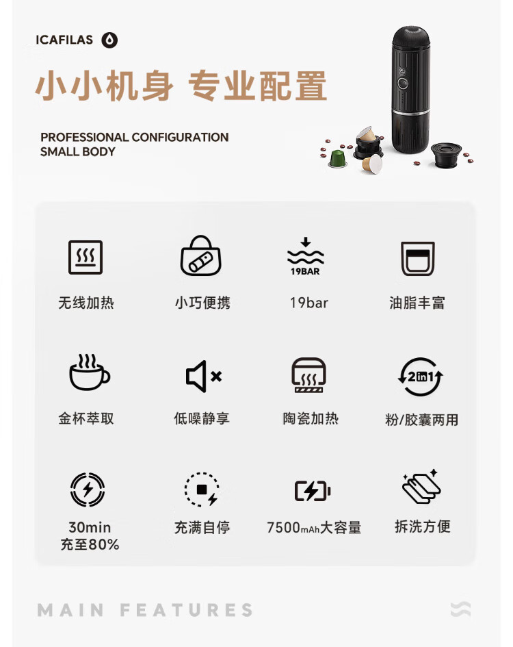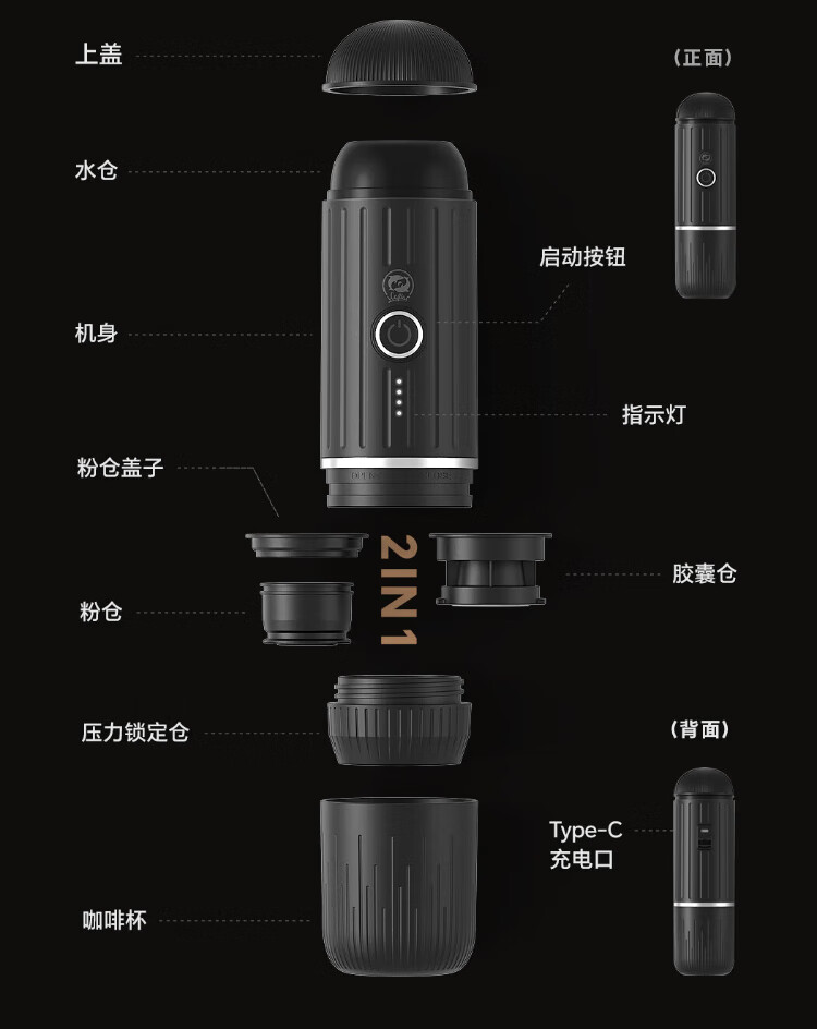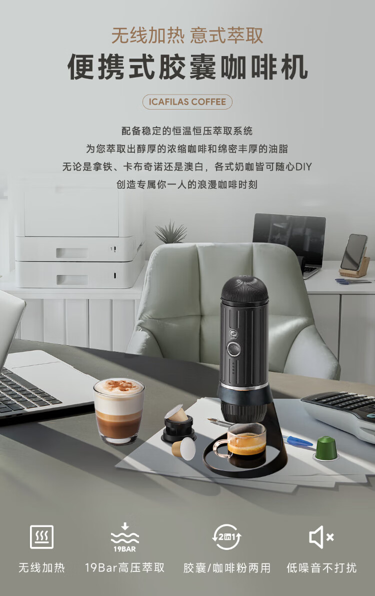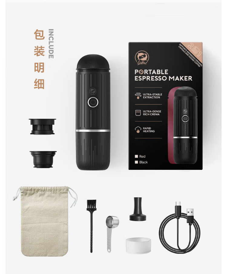 2 dolphins portable capsule coffee machine outdoor wireless heating semi-automatic Italian small mini office American fully automatic blue wireless heating capsule coffee powder dual use