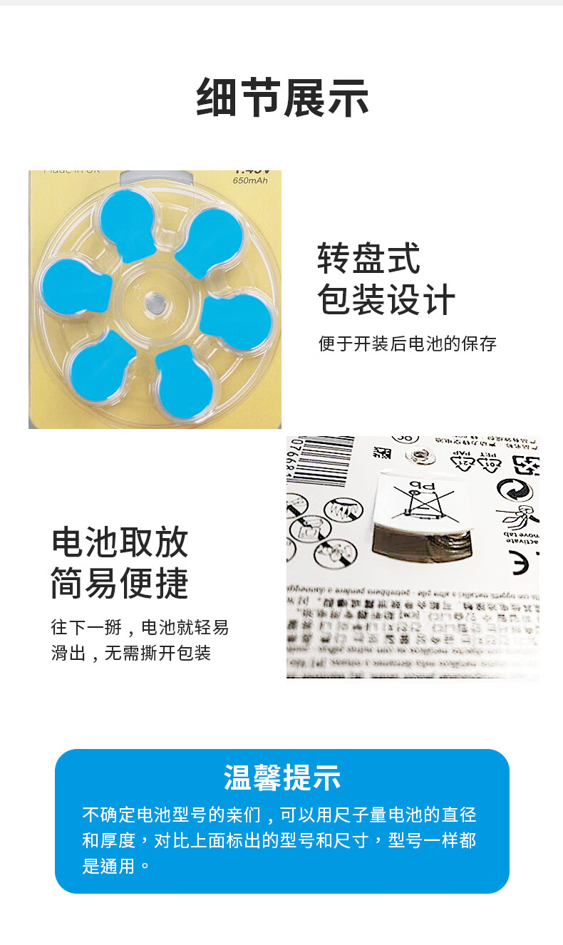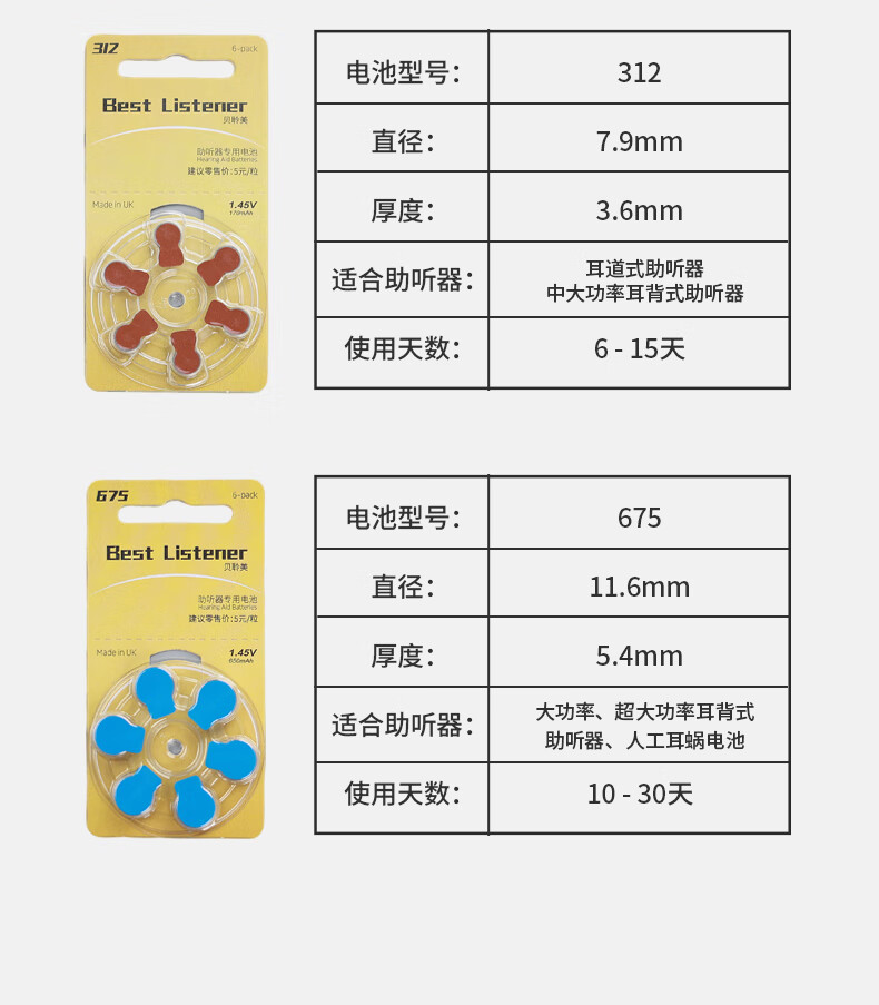 Boyin hearing aid button battery Beilimei zinc air battery imported from the UK for hearing aids *6 capsules 312#