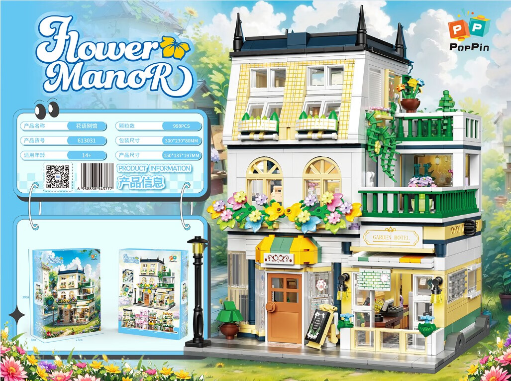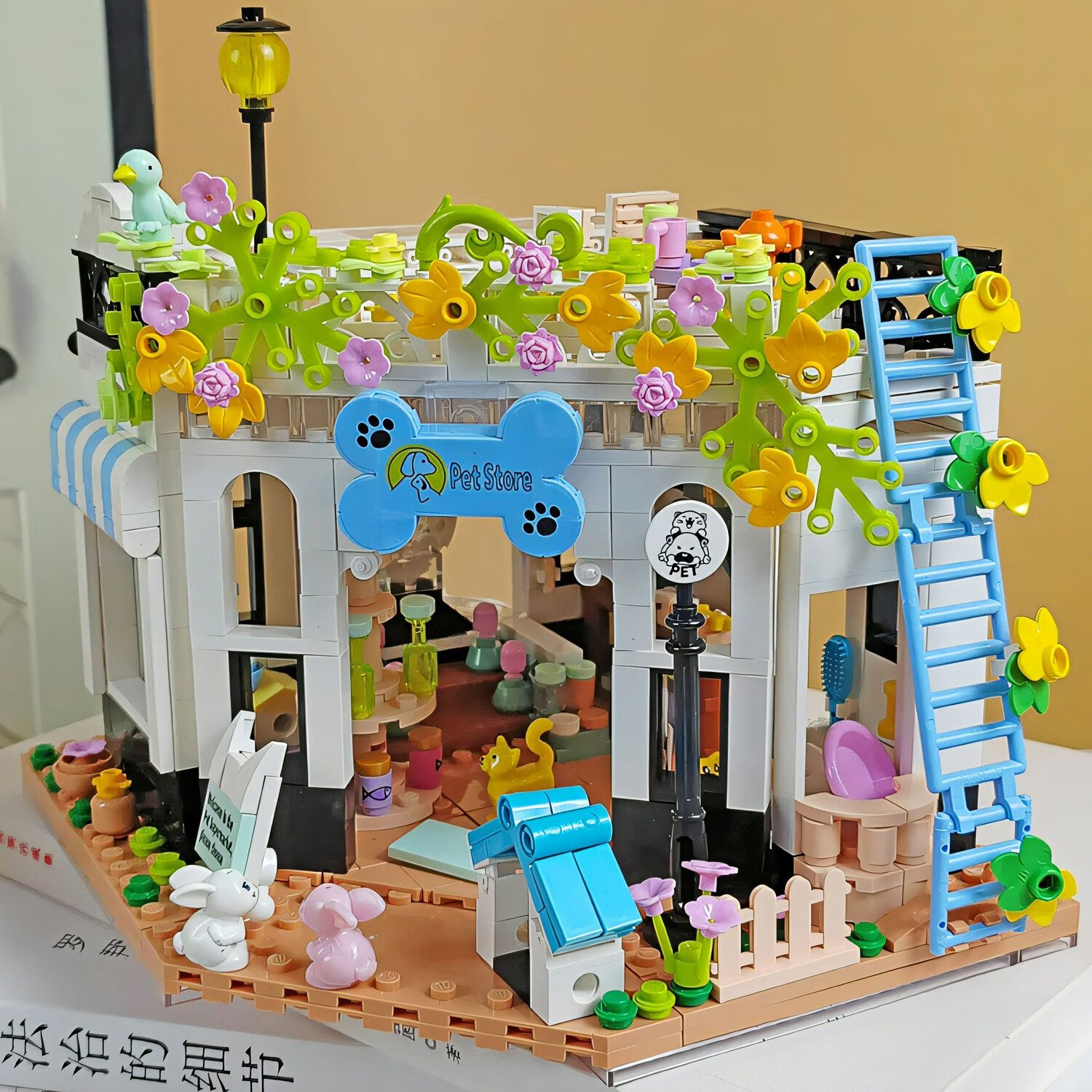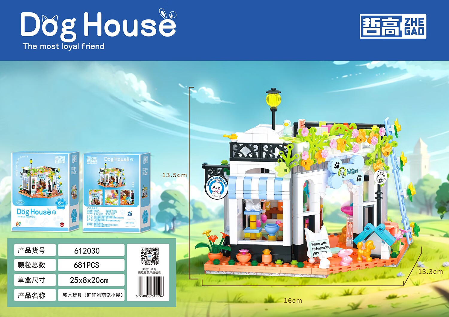 2024 New Zhegao Building Blocks Flower Play House Girl Toy Version Assembled House Street View Architecture Fun Dog Fashion Home 1048 Pieces