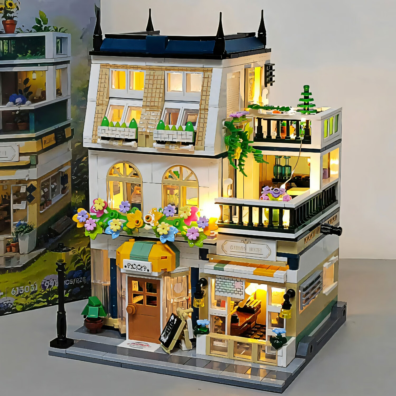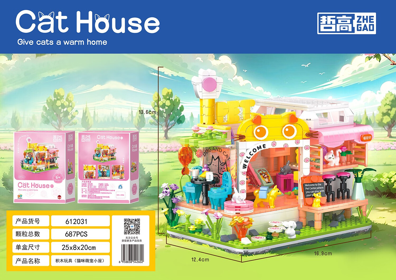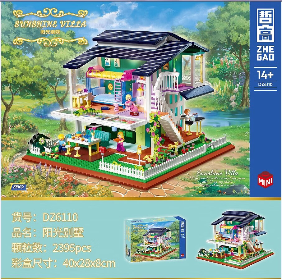 2024 New Zhegao Building Blocks Flower Play House Girl Toy Version Assembled House Street View Architecture Fun Dog Fashion Home 1048 Pieces