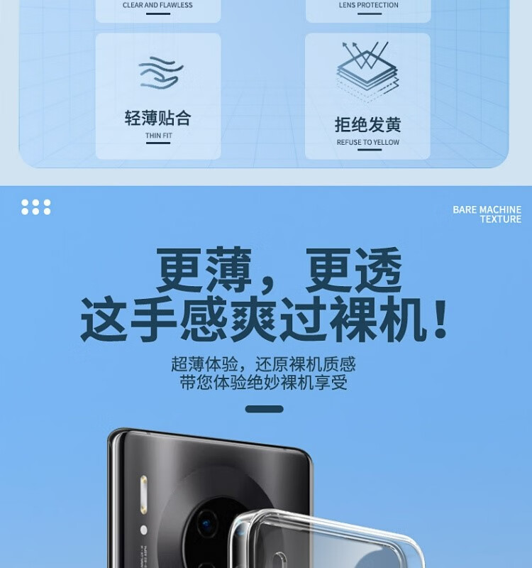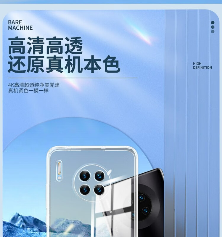 Huawei (HUAWEI) original Huawei mate30 mobile phone case mate30Pro silicone HD transparent simple anti-fall soft shell protective cover all-inclusive lens HD ice transparent shell 1 pack Huawei Mate30