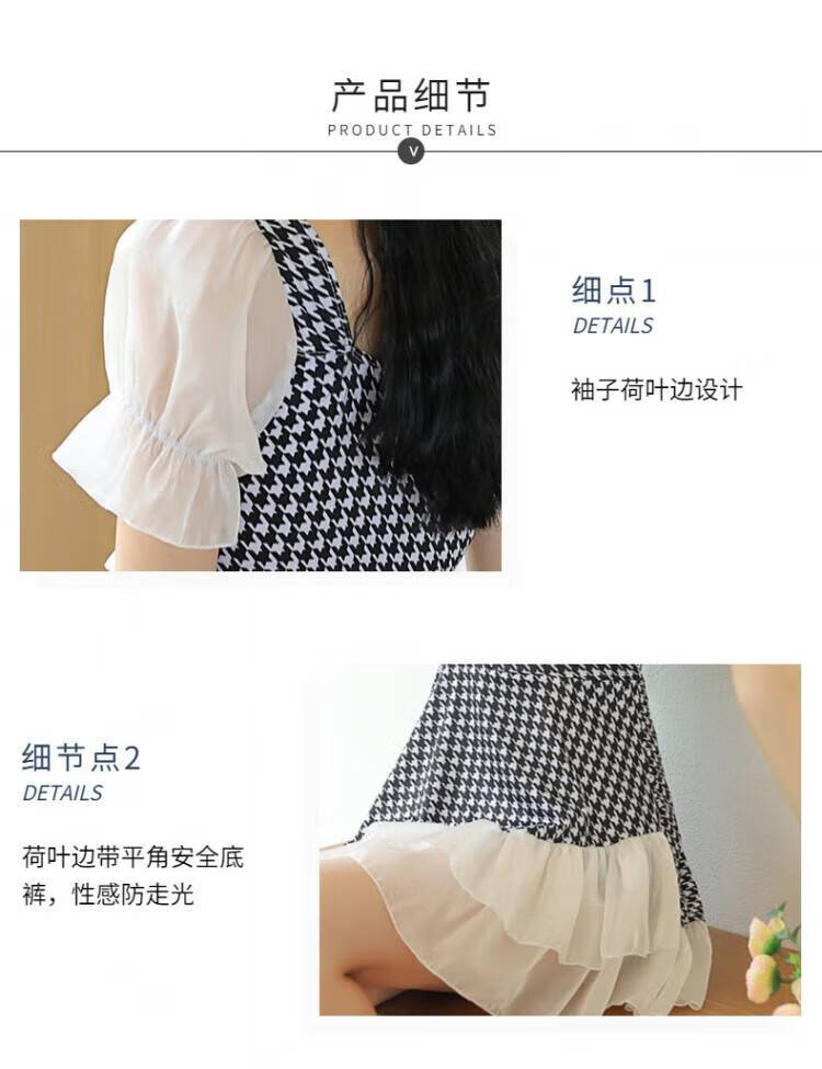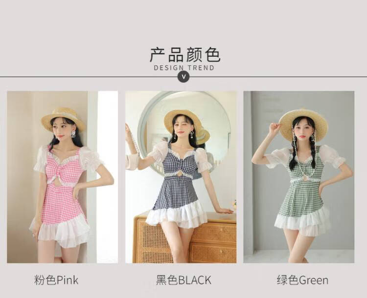 ZUQT网红新款连体裙式泳衣女夏保守小清新泡温泉游泳衣遮肚显瘦游泳装 9738-绿色 S