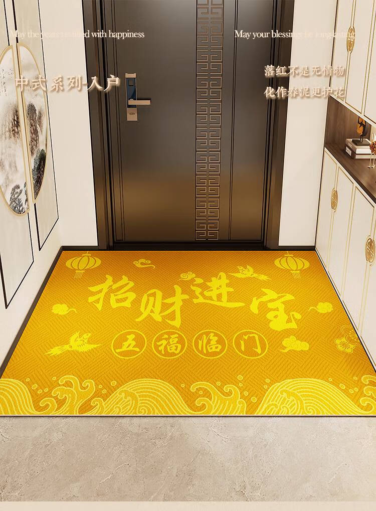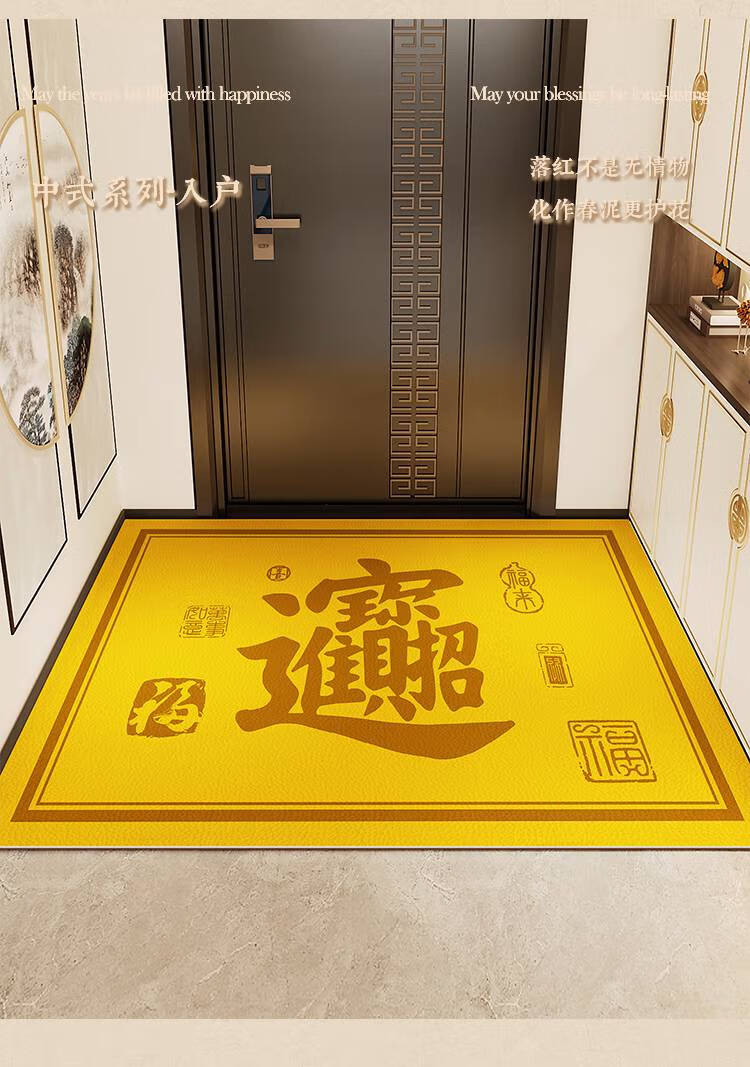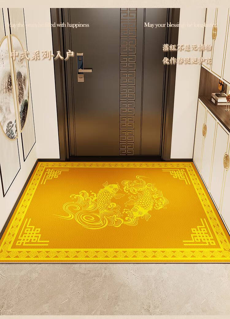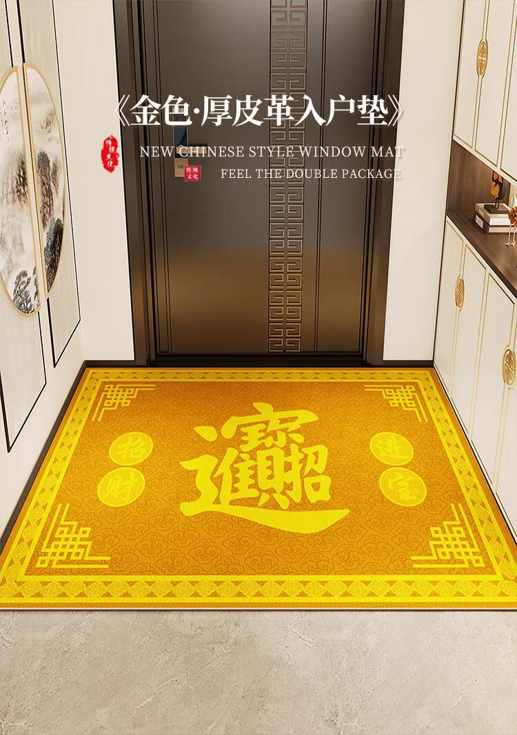 Shantou Lincun Chinese style golden yellow Feng Shui entrance door floor mat PV scrub-free entry door anti-slip and resistant Juzhen-gold-12159 60*90m leather thickened 5MM