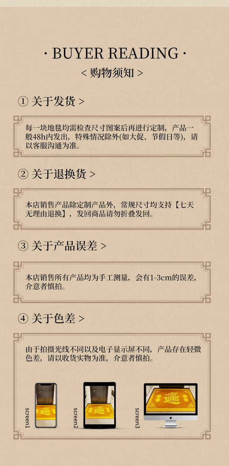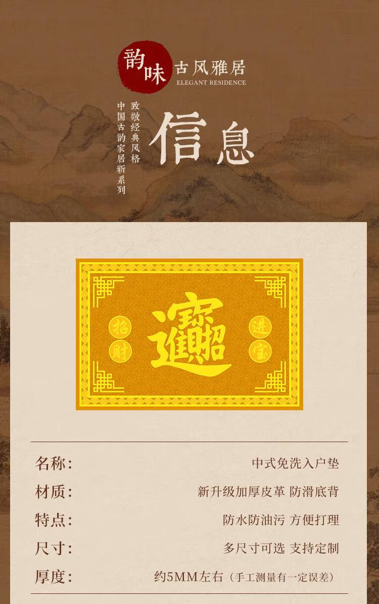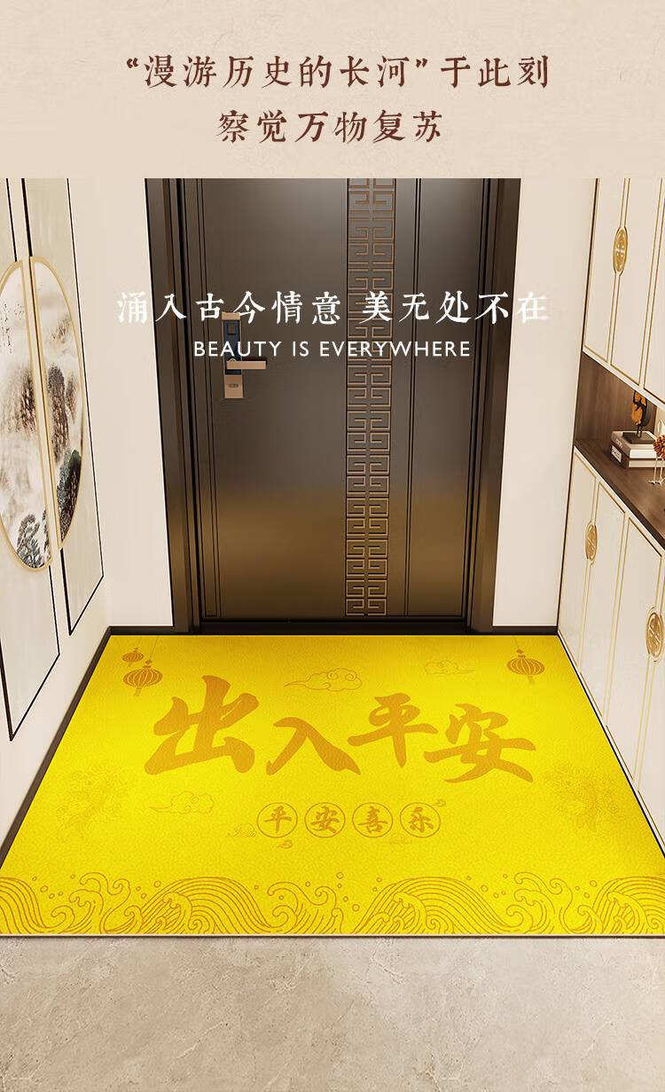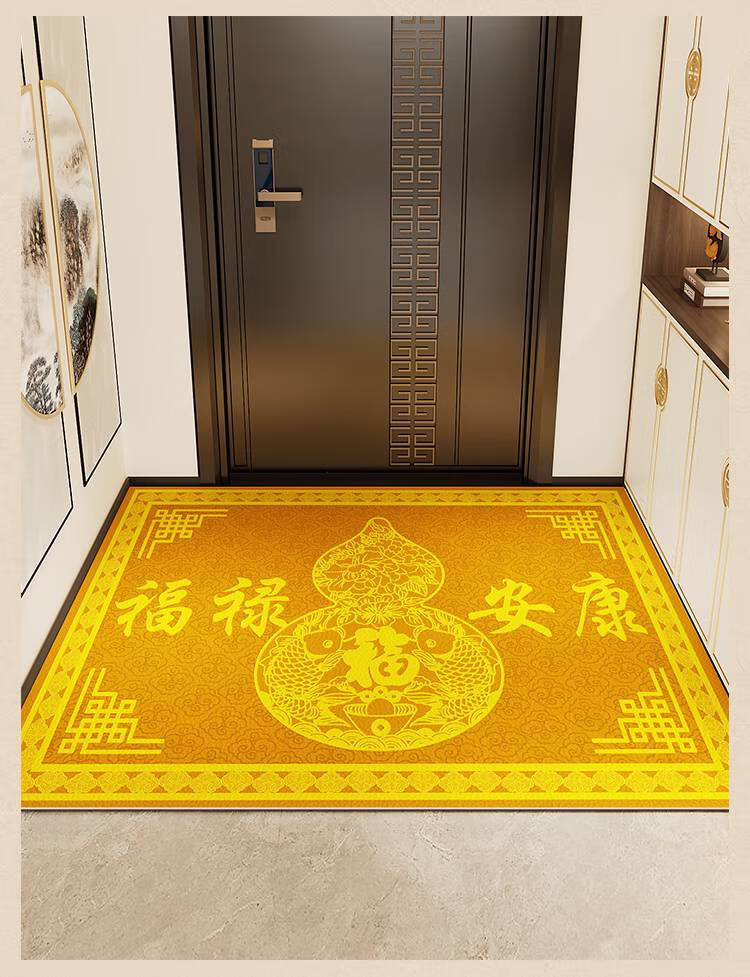 Shantou Lincun Chinese style golden yellow Feng Shui entrance door floor mat PV scrub-free entry door anti-slip and resistant Juzhen-gold-12159 60*90m leather thickened 5MM