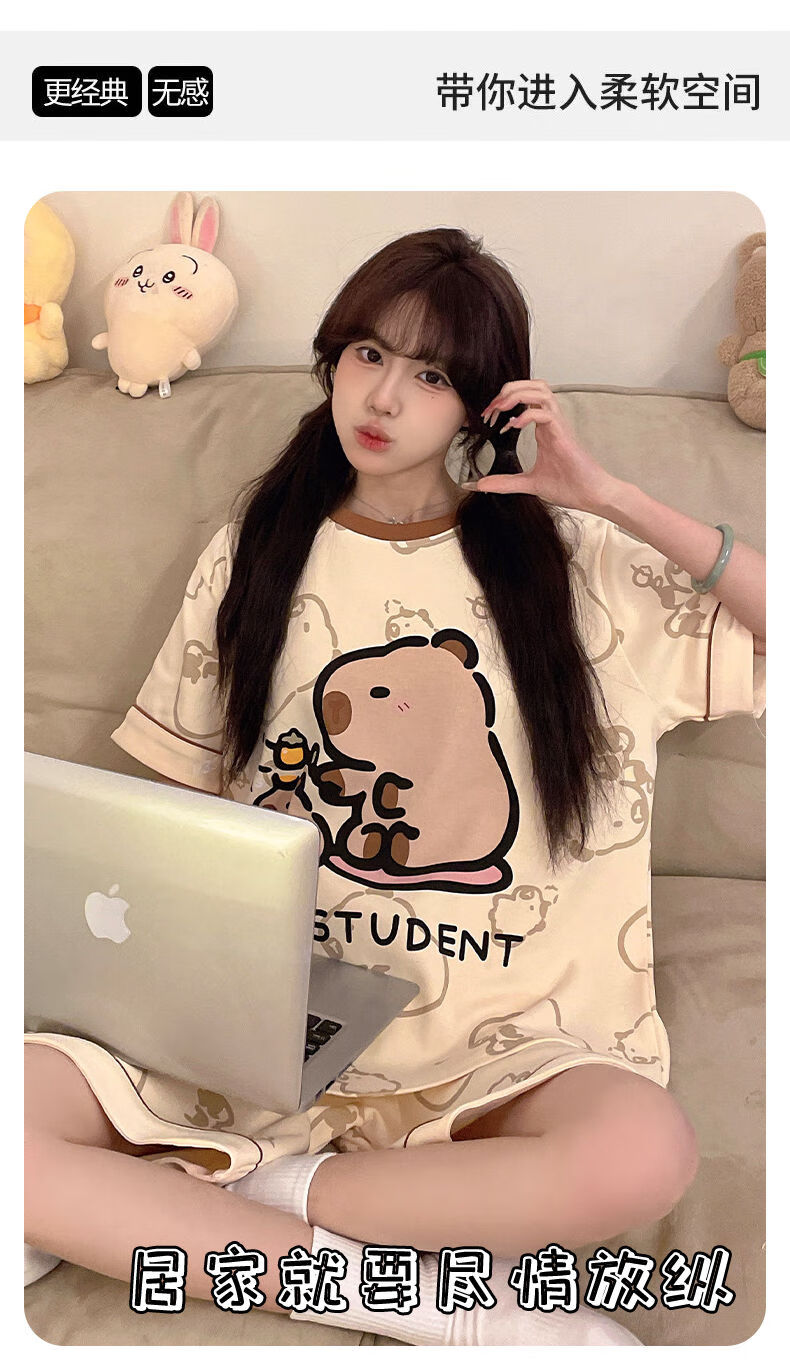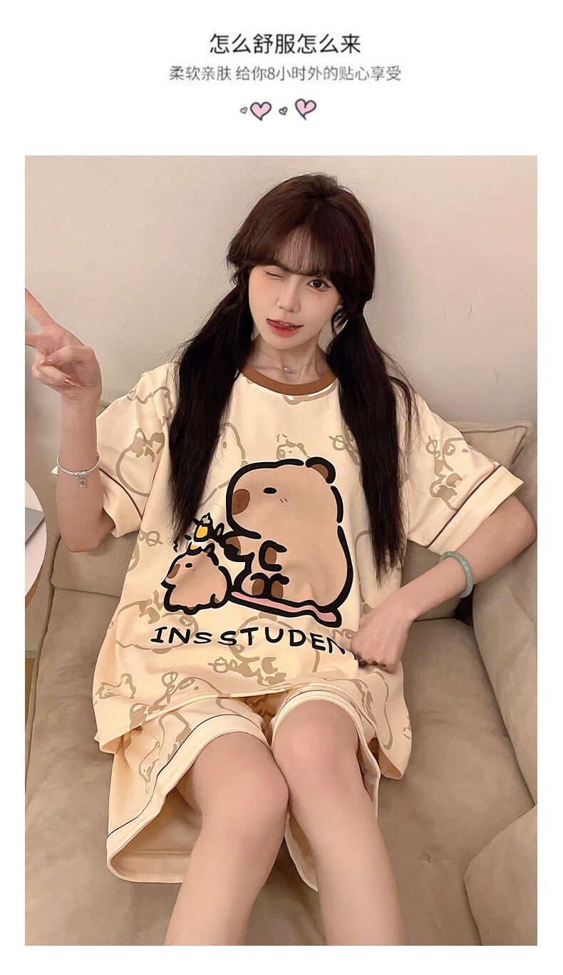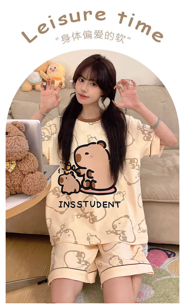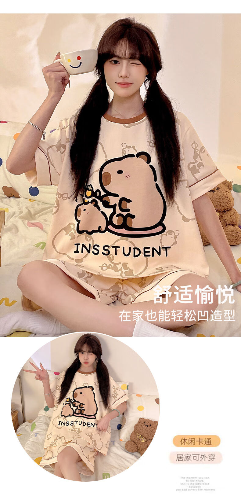 金迈鸟初中生睡衣女 卡皮巴拉母女睡衣子装中大童夏季短袖儿童家居服女 TN829-帕恰狗 40 8码【身高100-11b