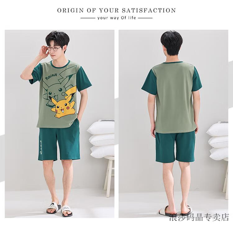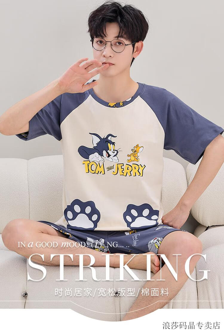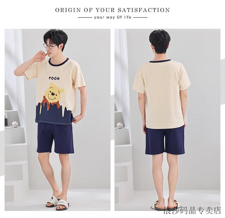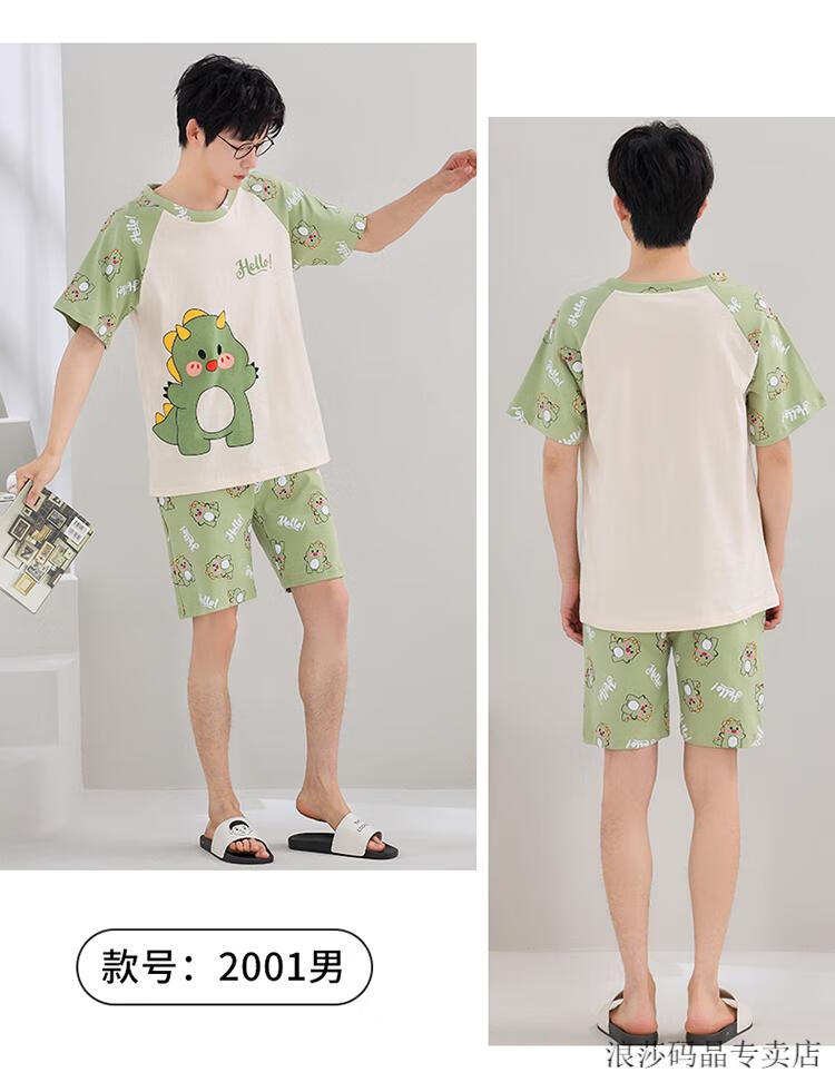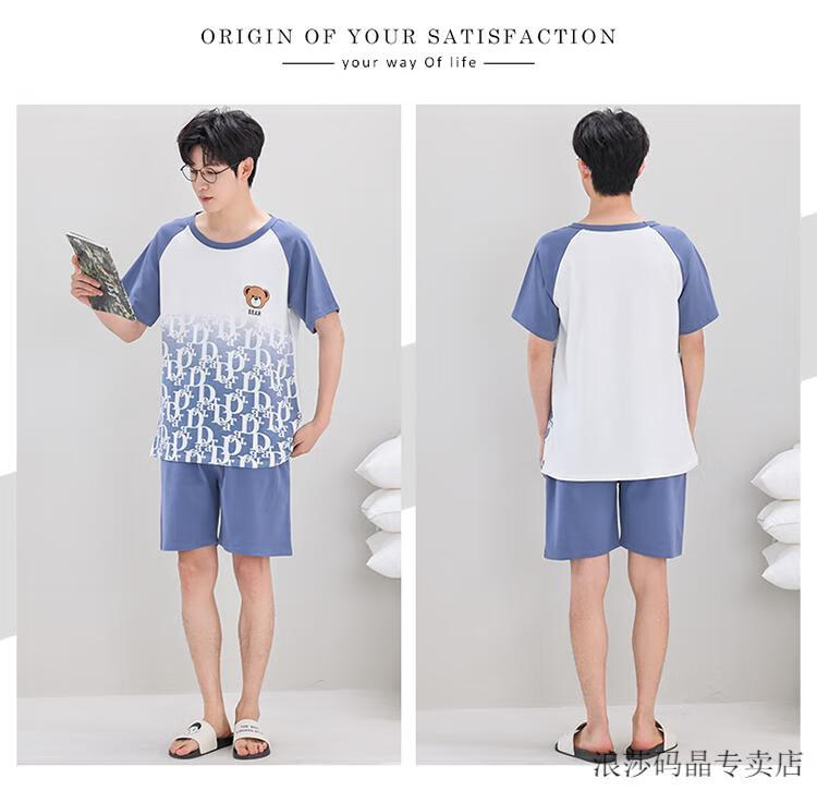 LangSha Summer Pajamas Men's Short-Sleeved Pure Cotton Thin Suit Loose Large Size Junior High School Students High School Students Cotton Home Clothes Q Short 1390 Gradient Bear Men L Standard Edition 90-120 Jin Jin is equal to 0.5 kg