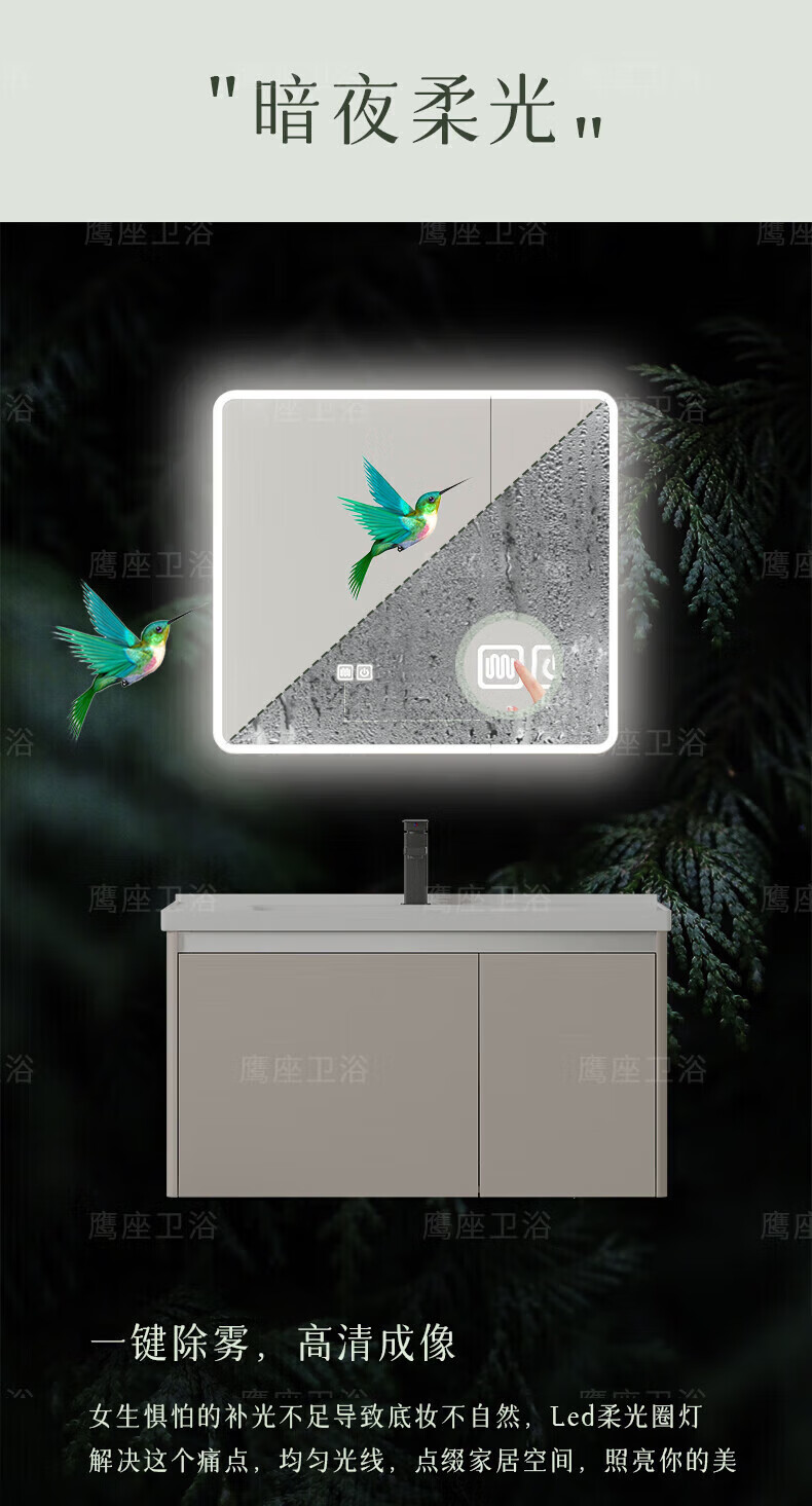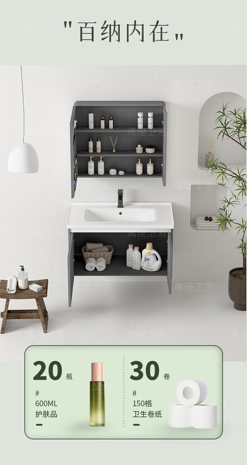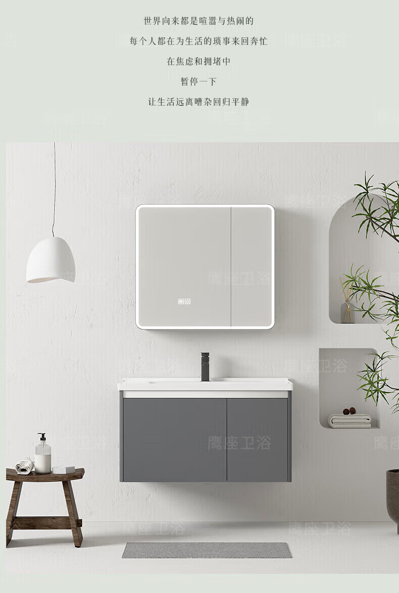 JOMOO Cream Style Space Aluminum Bathroom Cabinet Bathroom Ceramic Integrated Washbasin Washbasin Cabinet Combination Bathroom Washstand Double-Open Main Cabinet 1047 Ceramic Basin + Arc Mirror Cabinet (