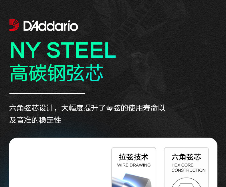 达达里奥民谣吉他弦一套6根木吉他琴弦一弦单根玄线六根全套铉 XSAPB1047覆膜磷铜(民谣琴弦)