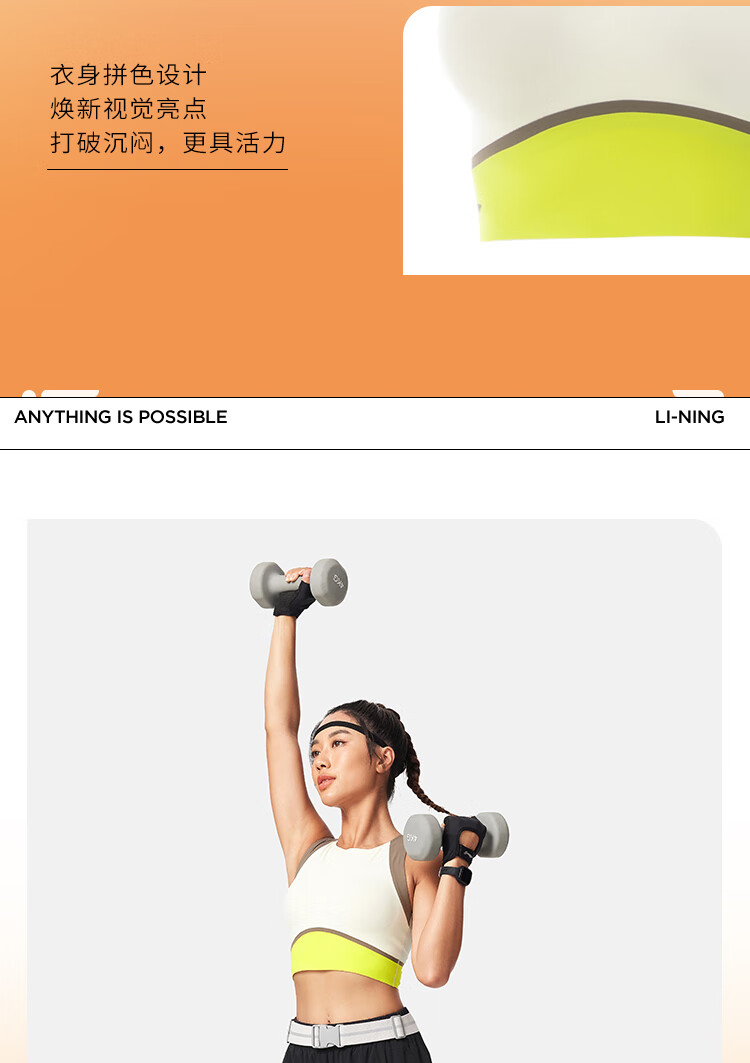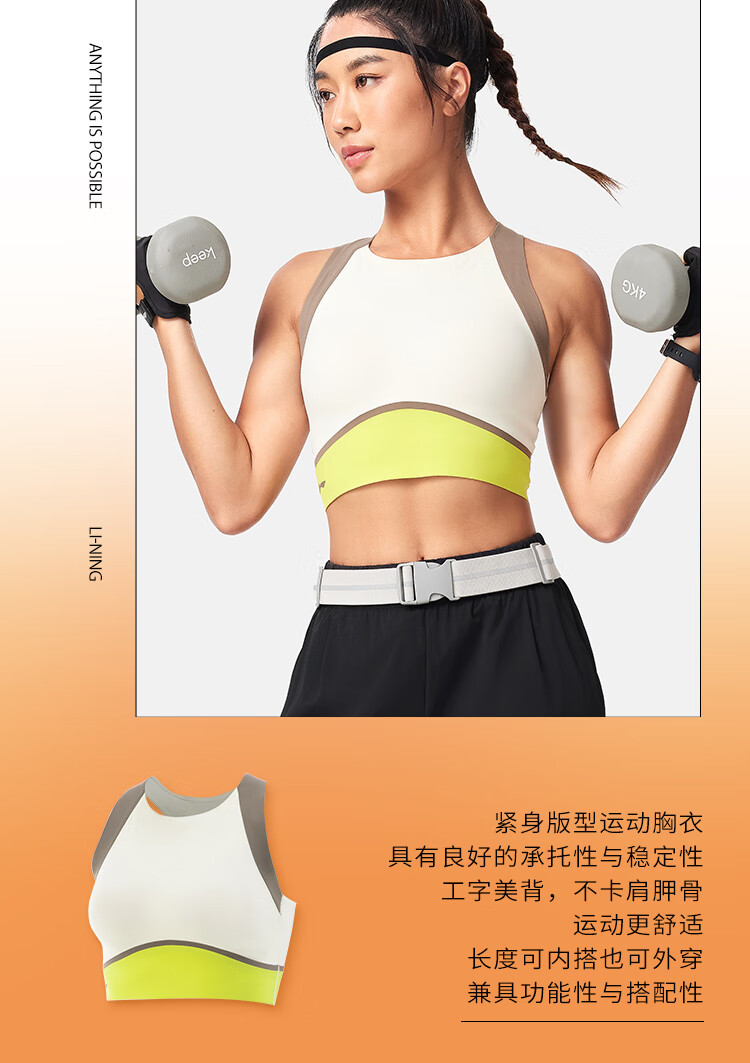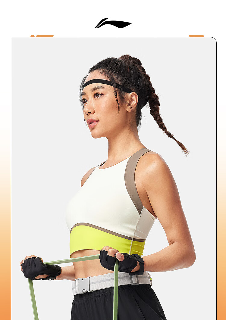Li Ning sports bra for women 2025 new medium-sized support fitness tights (special products are not returned or exchanged) Pearl white/M wood brown/Qingzhu green-1 S