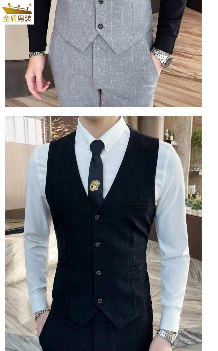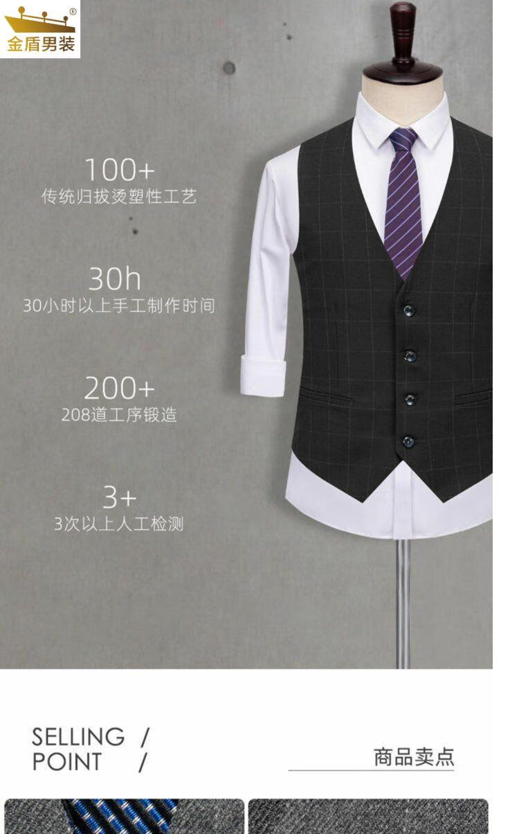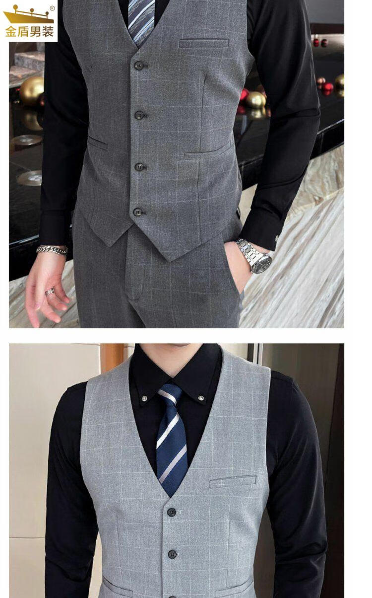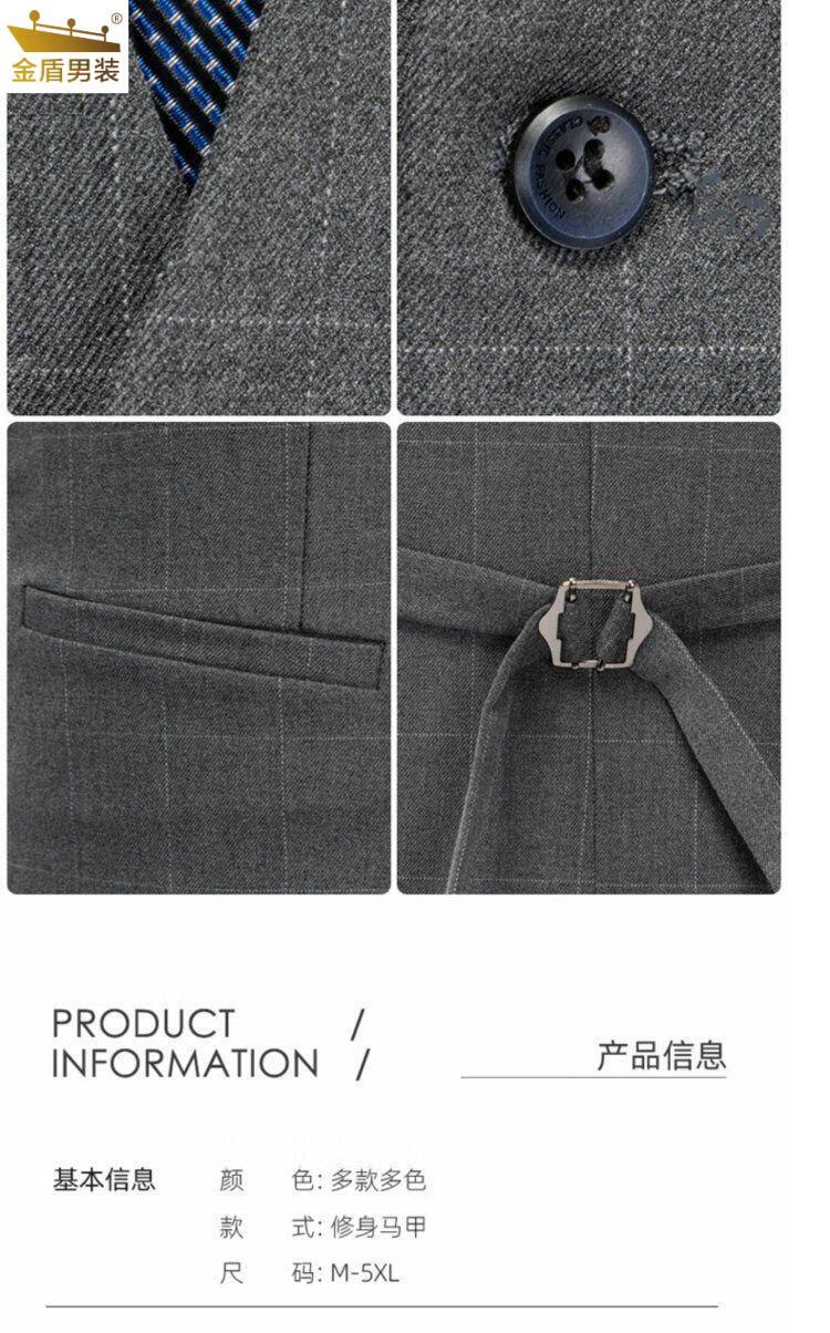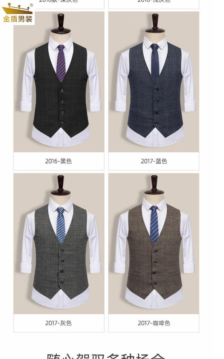 Golden Shield Men's Suit Vest Spring and Autumn Vest Groomsmen Brother's Outfit Groom Wedding Plaid Slim Casual Suit Vest 2016 Dark Gray (Single Vest) XL 126-135Jin Jin is equal to 0.5 kg