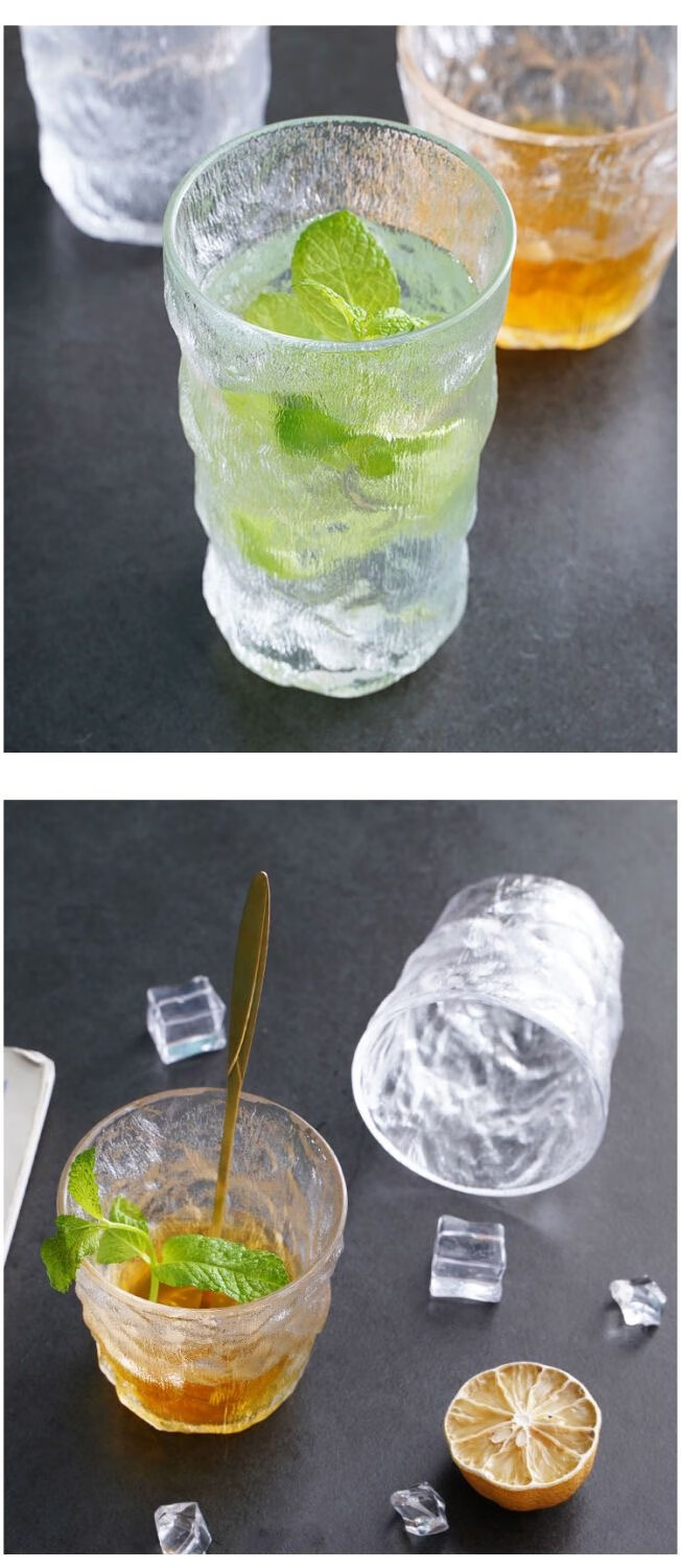 [Internet celebrity hot product] Glacier pattern glass cup fashion trend ins Feng Juice glass wine glass water cup Glacier short cup 250ml 1 piece
