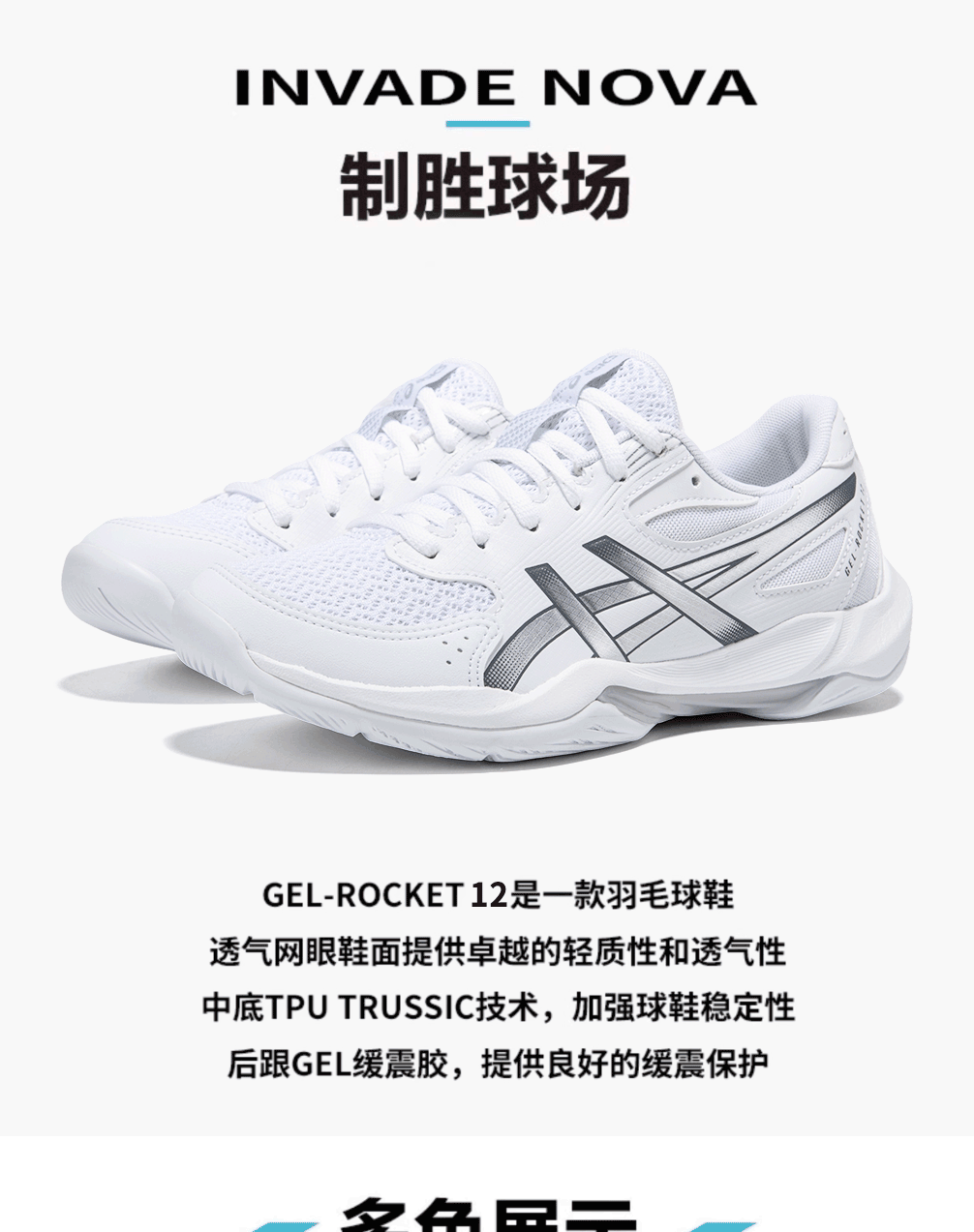 ASICS badminton shoes for men and women GEL-ROCKET 12 official flagship 2025 new professional training shoes white 40