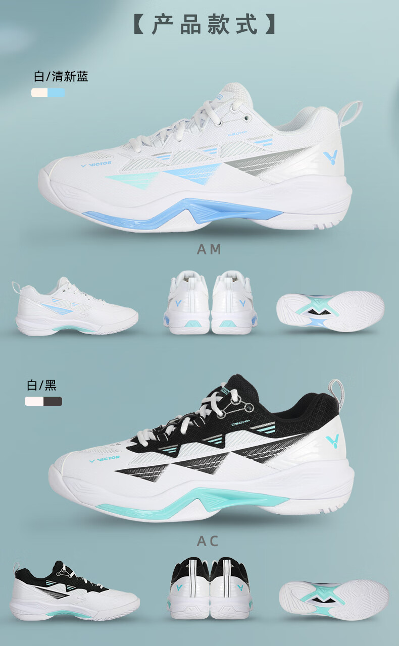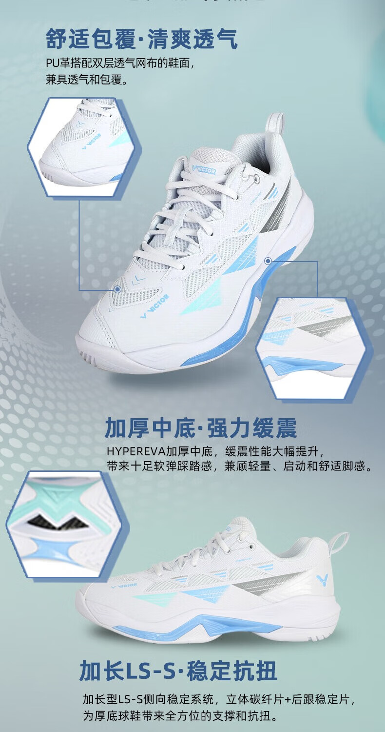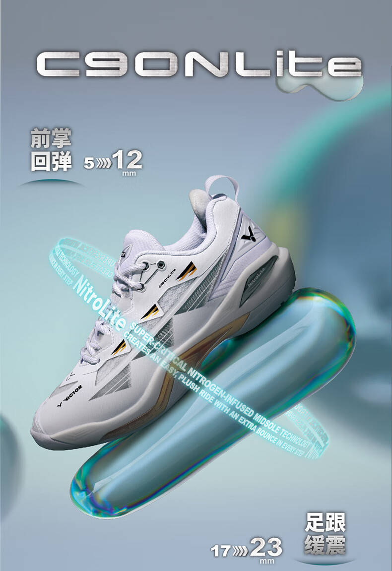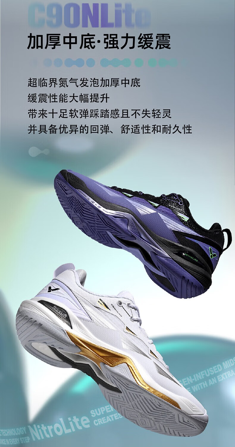 VICTOR Victory 25 new professional badminton shoes for men and women competition training sports shoes non-slip cushioning C90NitroLite C90HP-AM white fresh blue 43