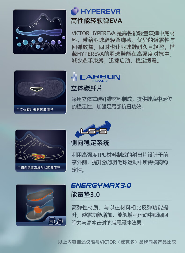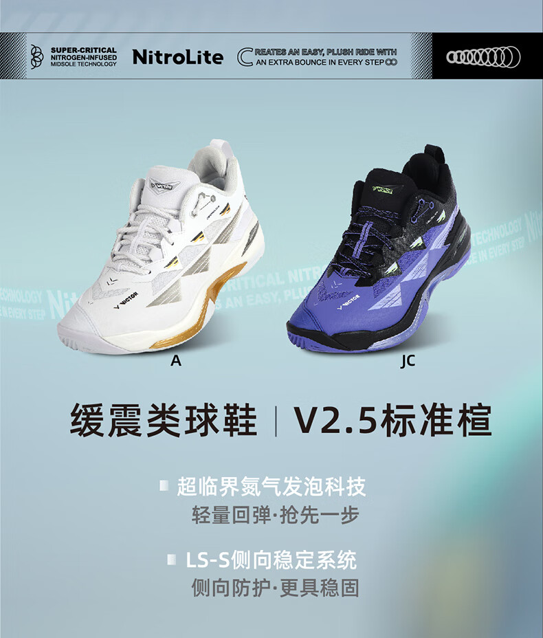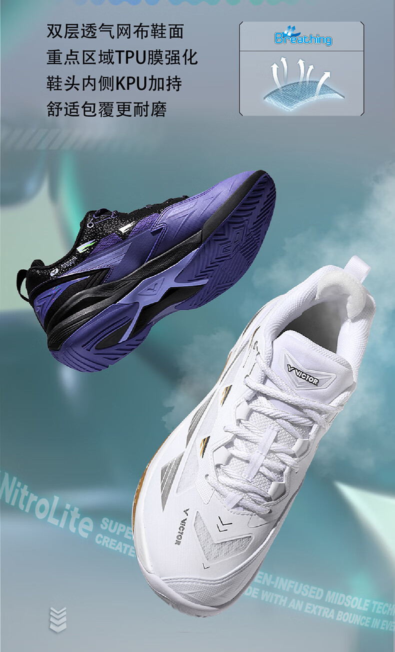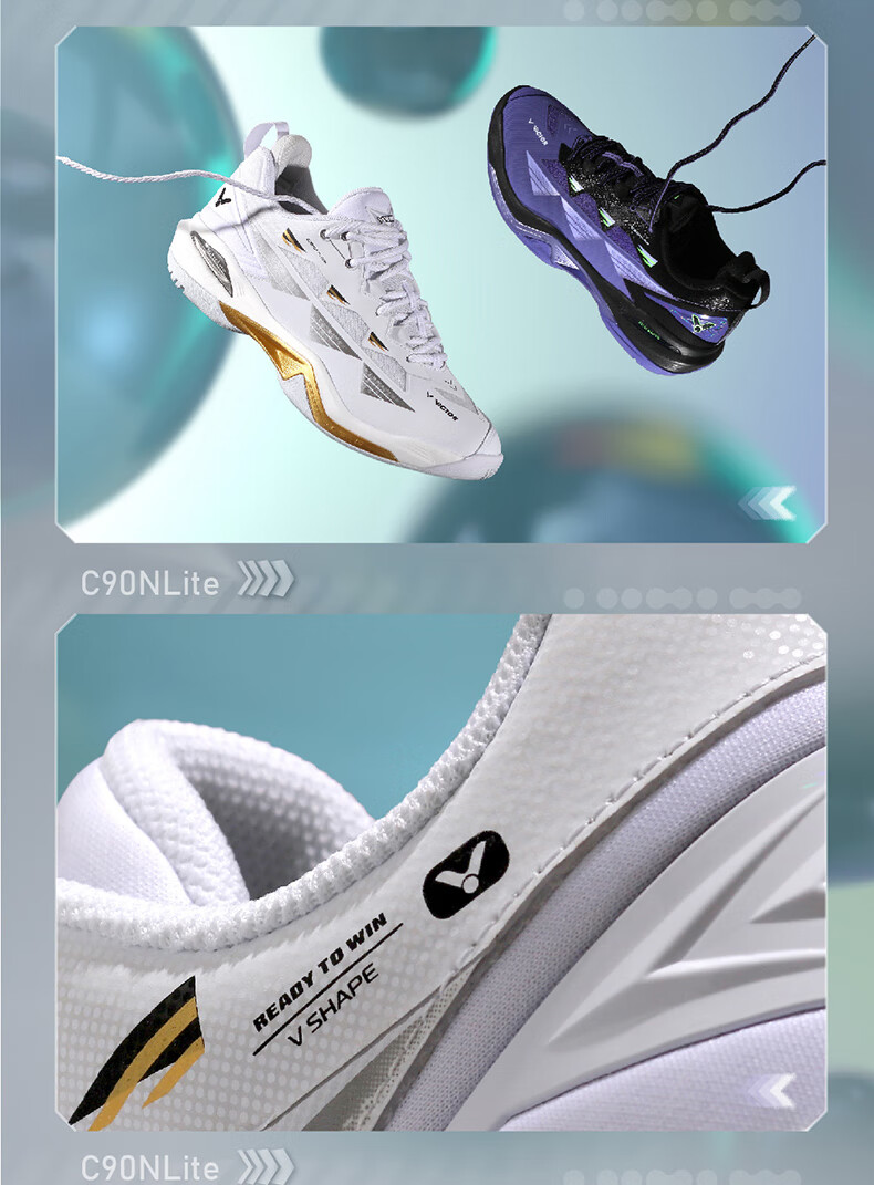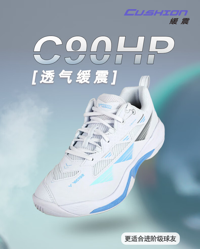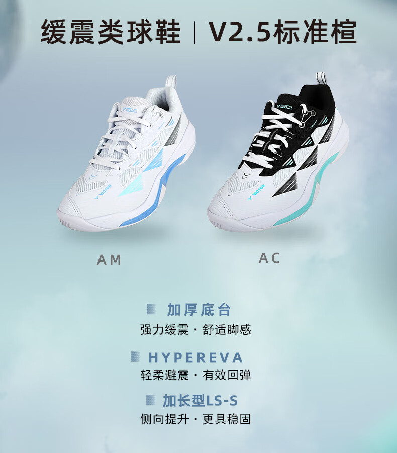 VICTOR Victory 25 new professional badminton shoes for men and women competition training sports shoes non-slip cushioning C90NitroLite C90HP-AM white fresh blue 43