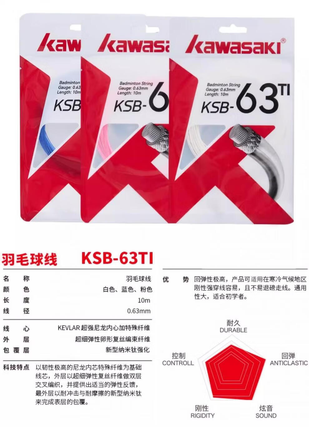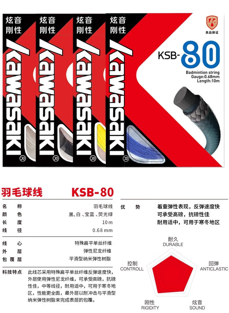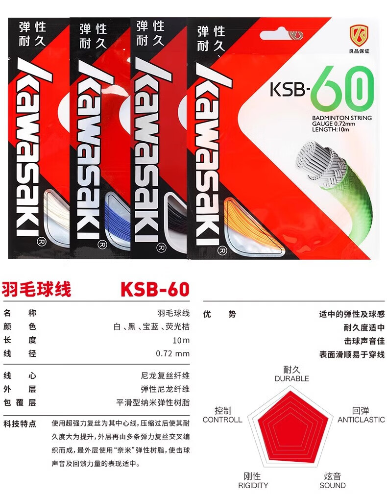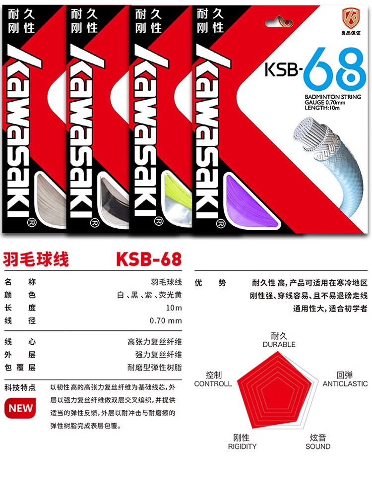 Kawasaki badminton string, badminton racket string, network cable, threading, manual cable puller, special thread for thread replacement, durable type, purple, new style, fast rebound/hitting feeling