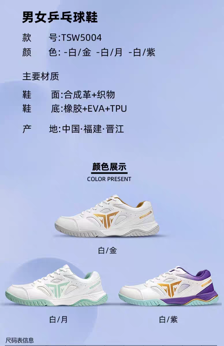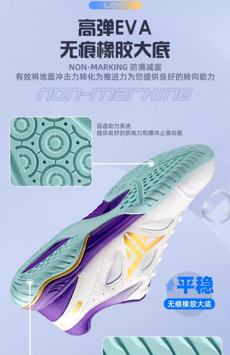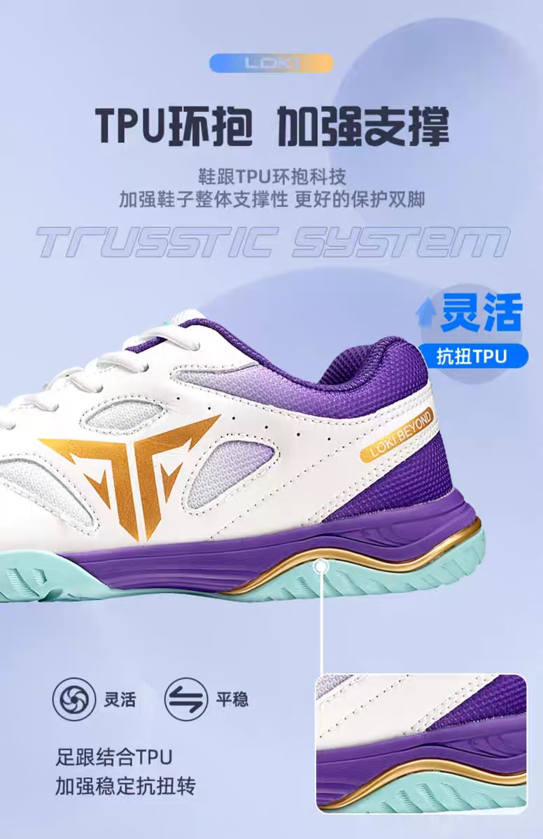 LOKI Thor Stinger table tennis shoes TSW5004 5005 Stinger table tennis shoes for men and women, non-slip, wear-resistant and breathable Stinger TSW5005-white and purple 39 (245mm)