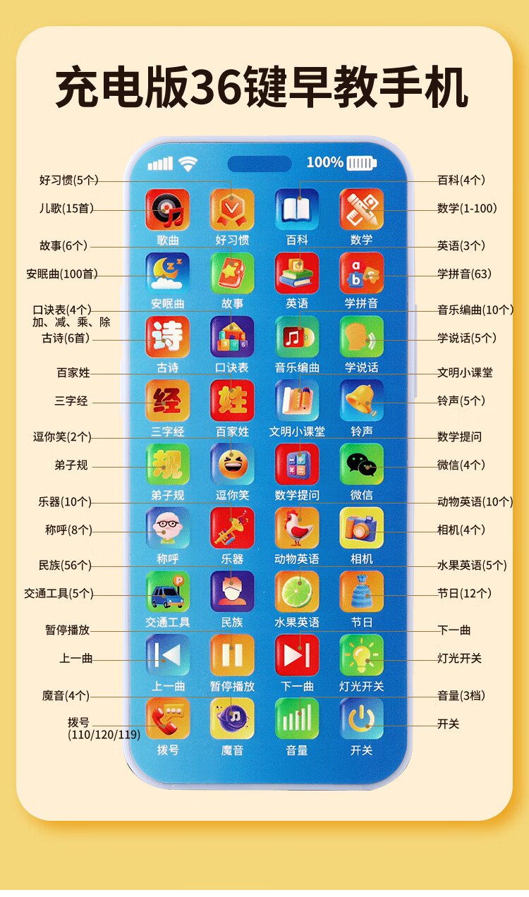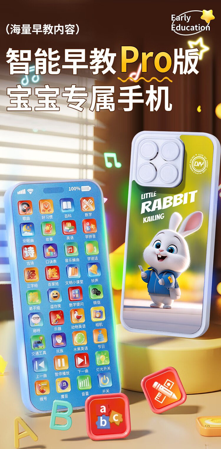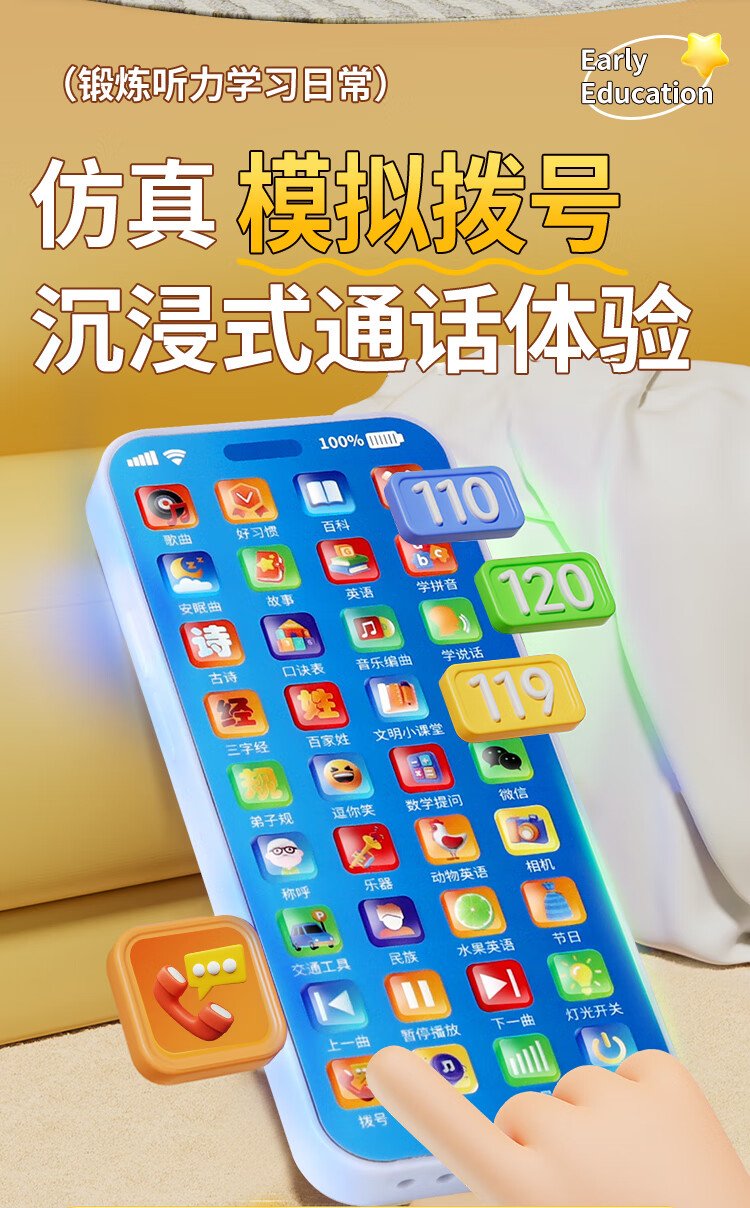Osage children's early education mobile phone toy learning machine 1-6 years old baby simulation phone story machine boy and girl birthday gift early education mobile phone 30000+ content chick 36 keys