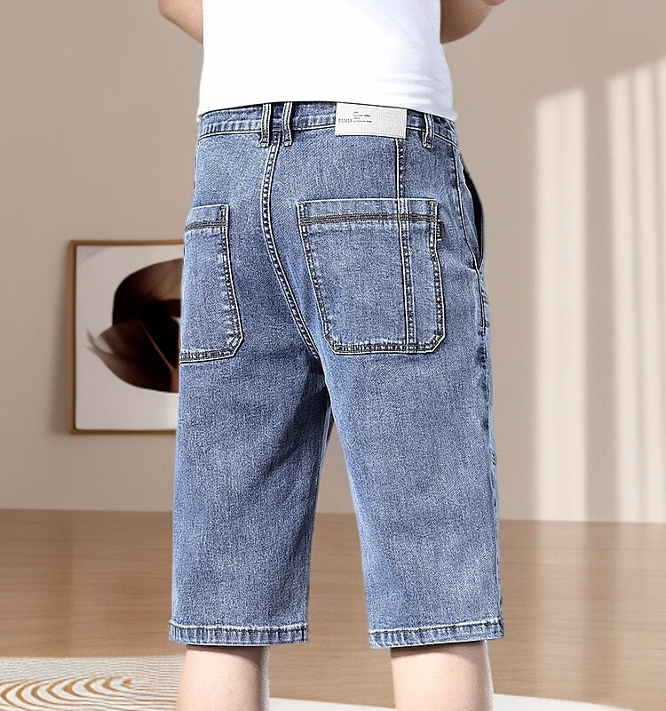 Summer new versatile denim shorts for work, six-pocket stretch men's versatile mid-pants, trendy six-point men's pants, dark blue six-pocket mid-pants 28 (recommended 95-108 Jin Jin equals 0.5 kg) 2 feet 1