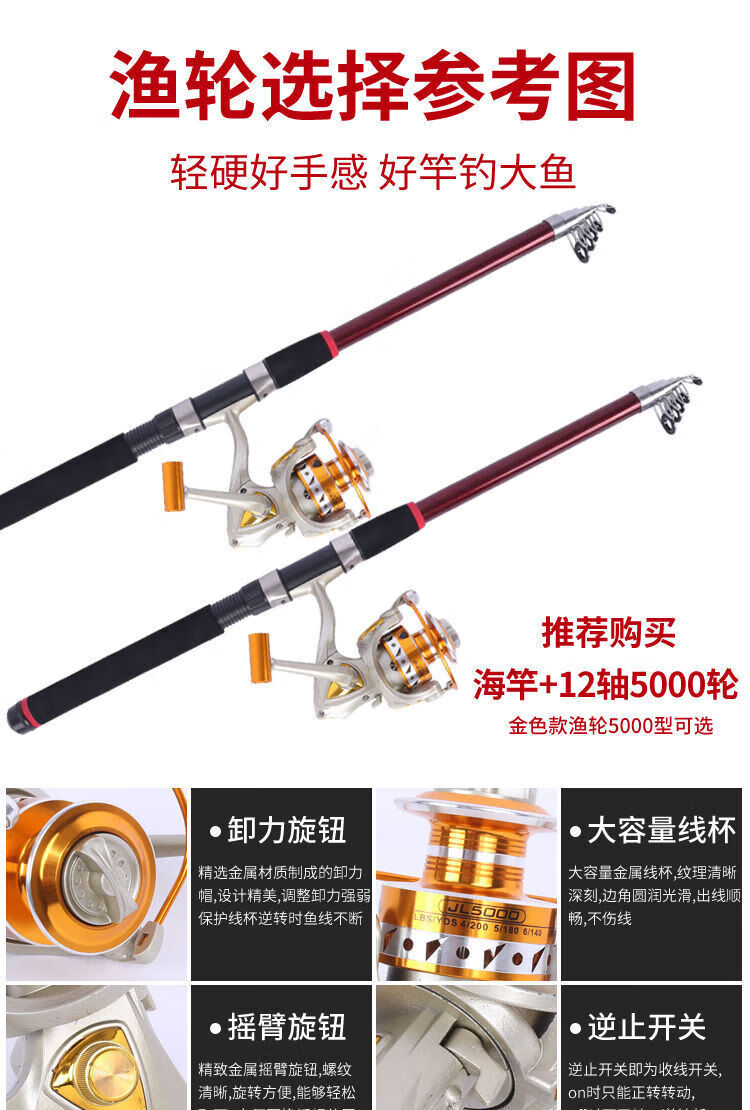 Koyinge, collected by 103,000 people, sea pole throwing pole, long-distance throwing pole, ultra-hard carbon sea fishing rod, fishing rod and fishing gear set, 2.4m, one sea pole (no fishing wheel, no gift package)