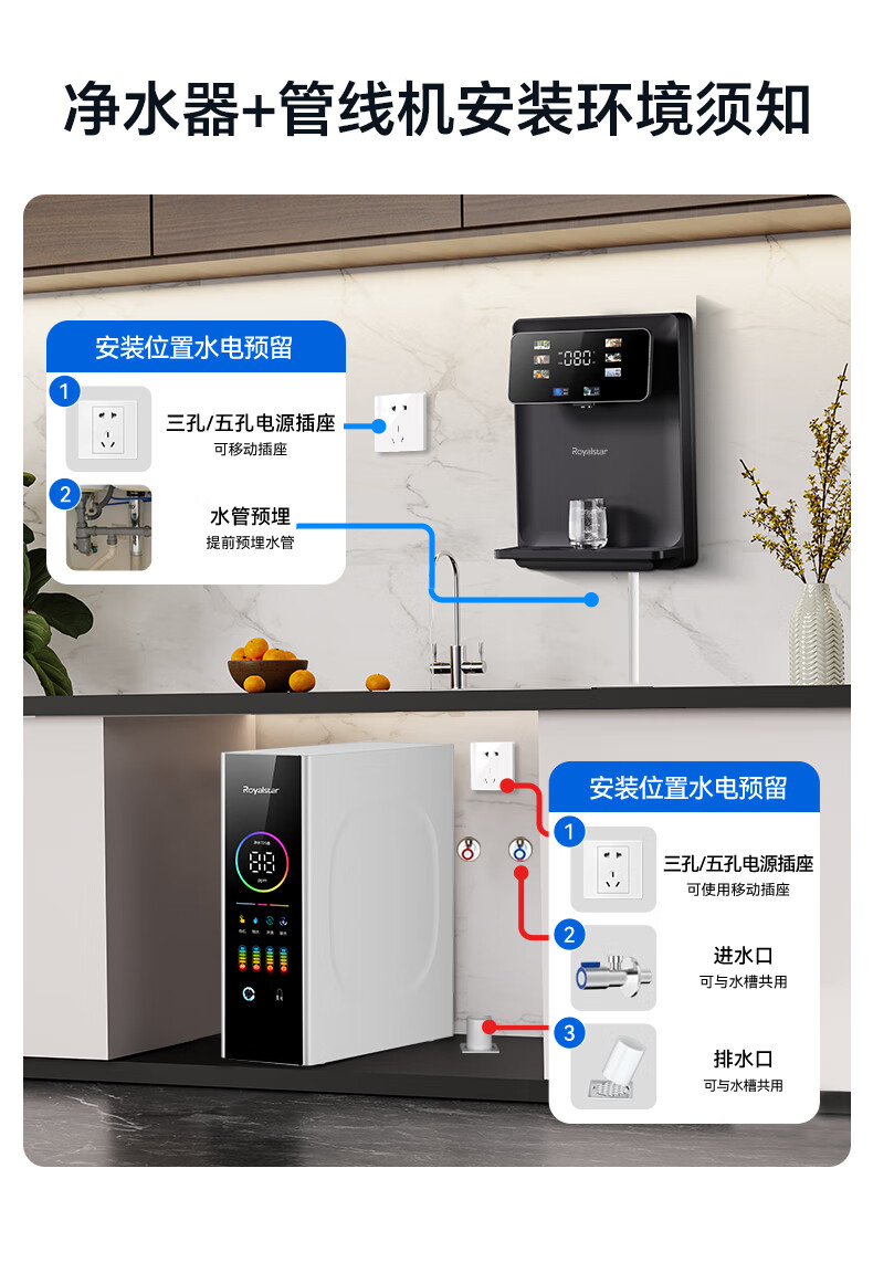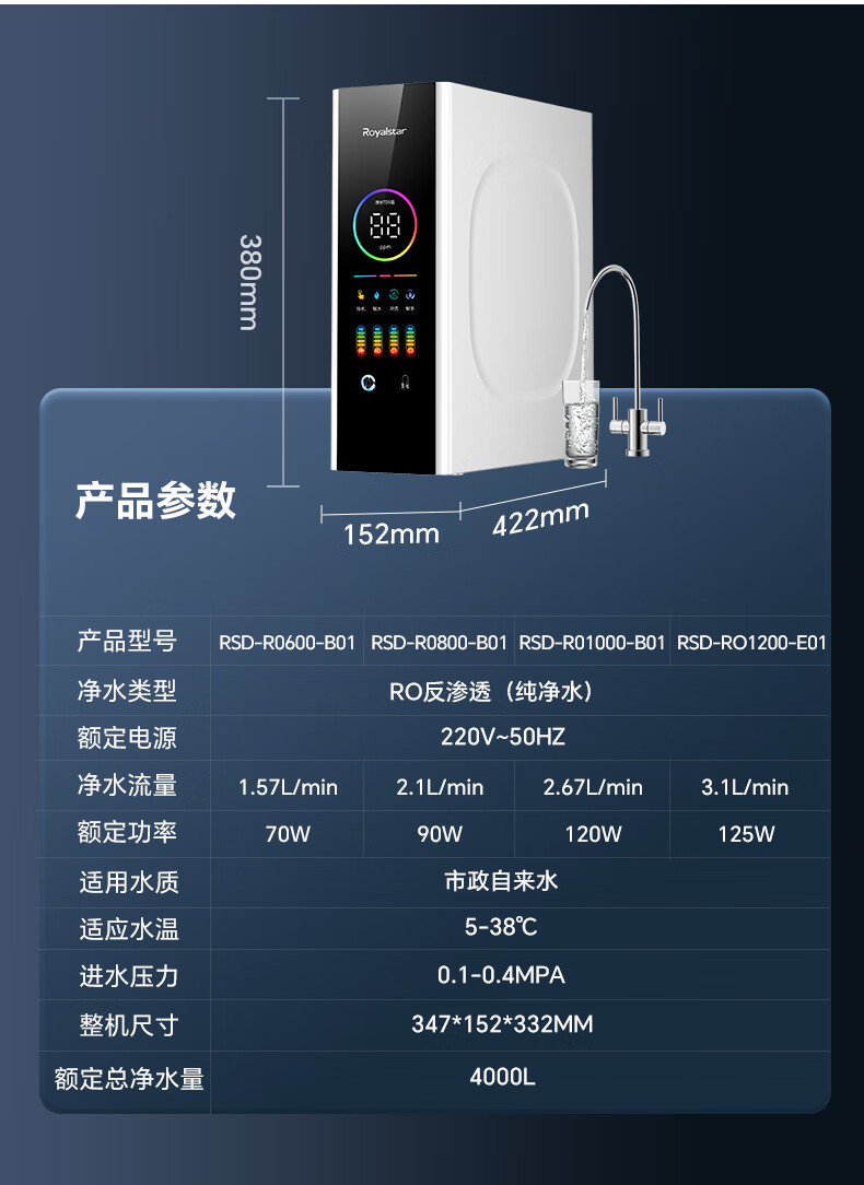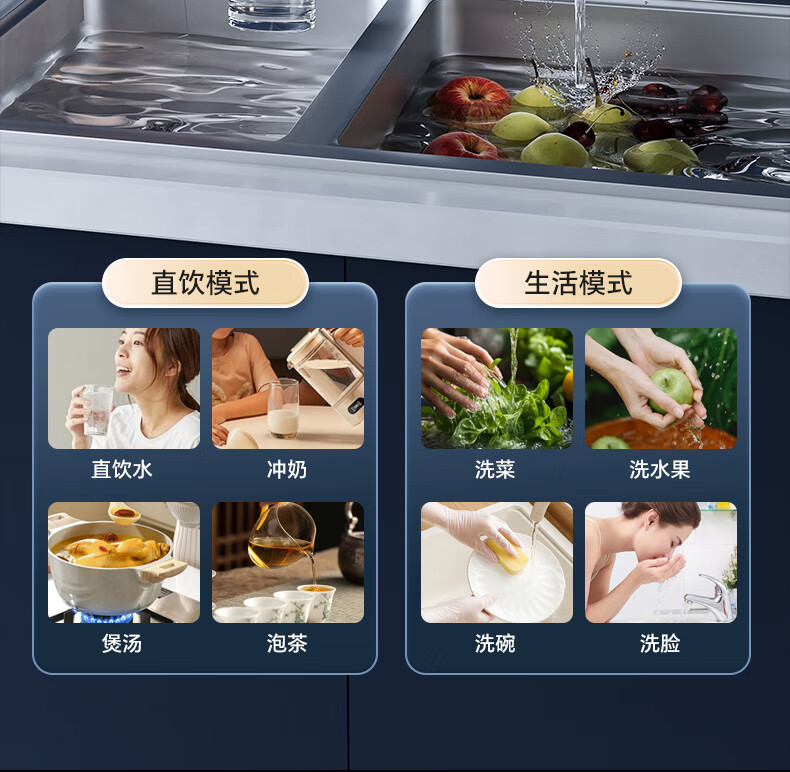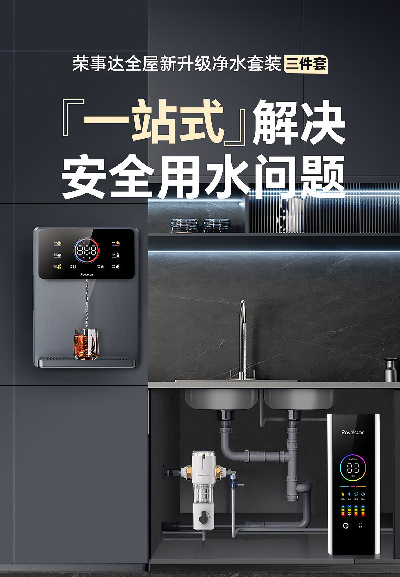 Rongshida Water Purifier Household Direct Drinking Machine Kitchen Underwater Water Purifier Kitchen Integrated Ro reverse osmosis Water Purifier Drinking Machine [Hot and Cold Two-Piece Set] 800G+Hot and Cold Pipeline Machine [365 Days Replace Only No Repair] Free Home Installation