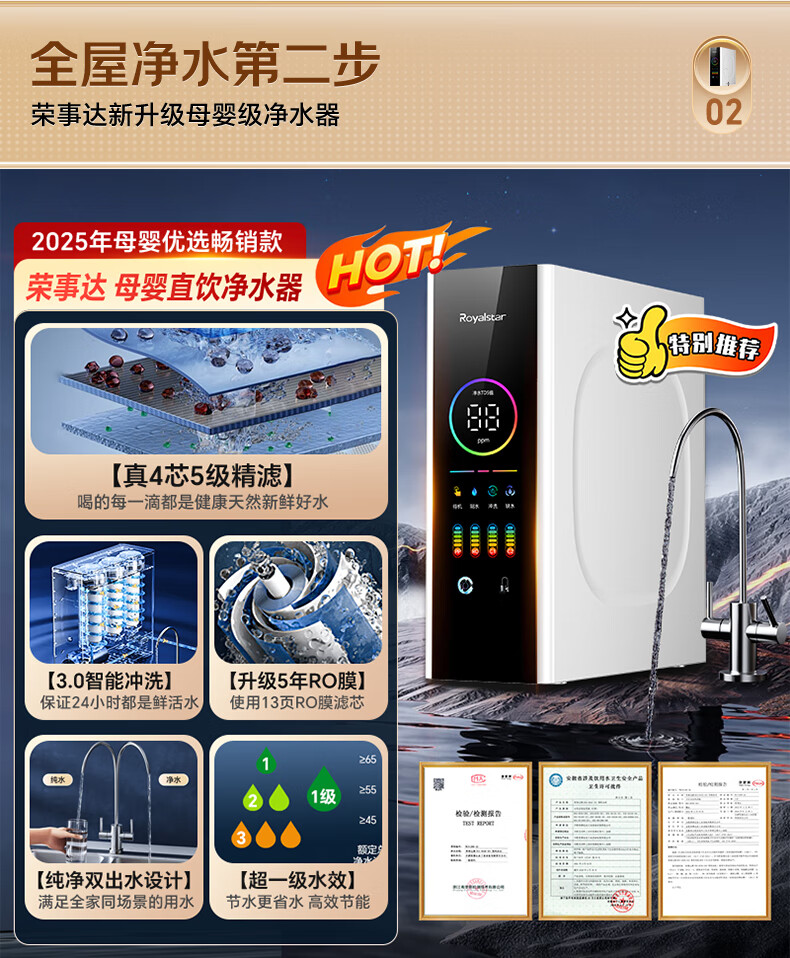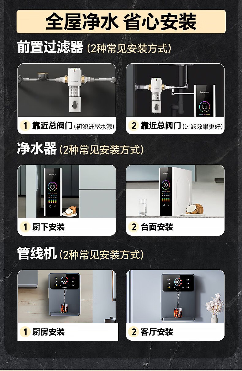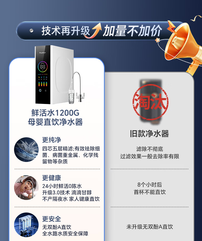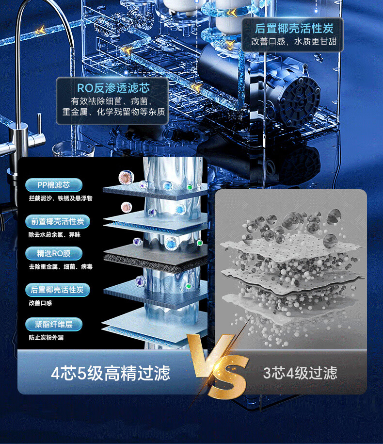 Rongshida Water Purifier Household Direct Drinking Machine Kitchen Underwater Water Purifier Kitchen Integrated Ro reverse osmosis Water Purifier Drinking Machine [Hot and Cold Two-Piece Set] 800G+Hot and Cold Pipeline Machine [365 Days Replace Only No Repair] Free Home Installation