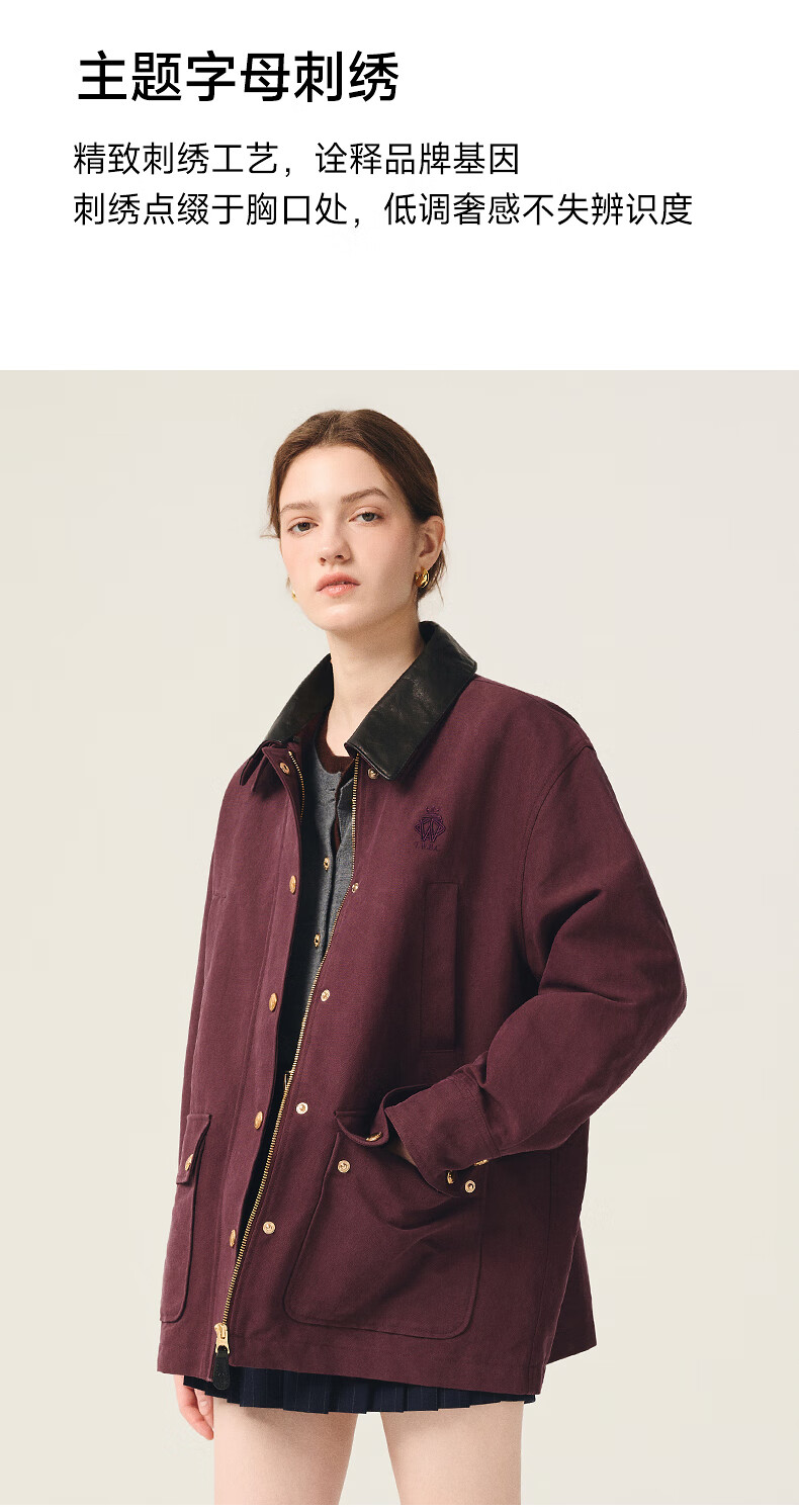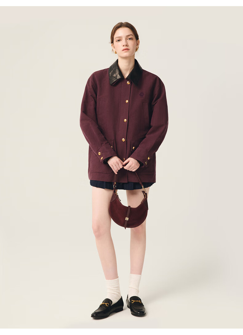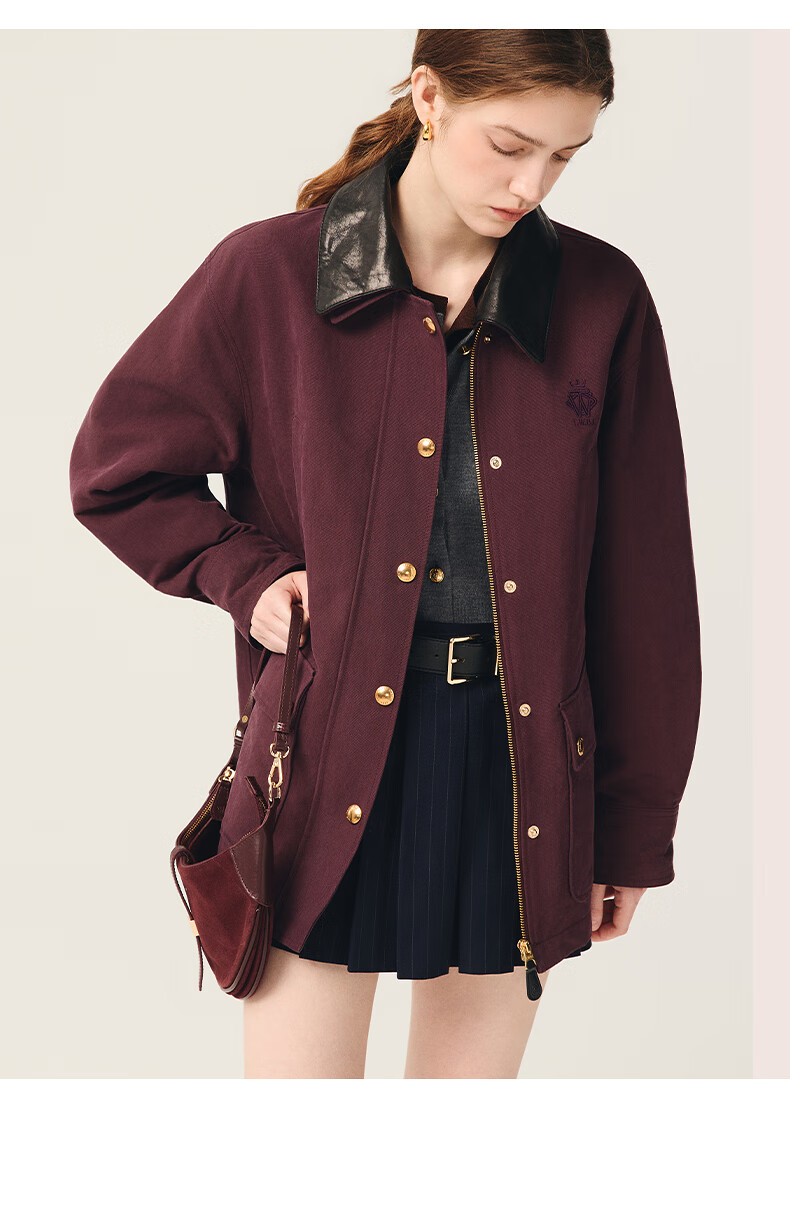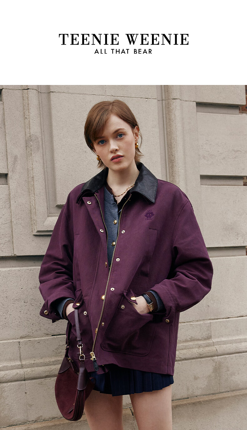 Teenie Weenie [Focus Bath] Bear women's retro loose short jacket 25 autumn new fashion jacket Burgundy S