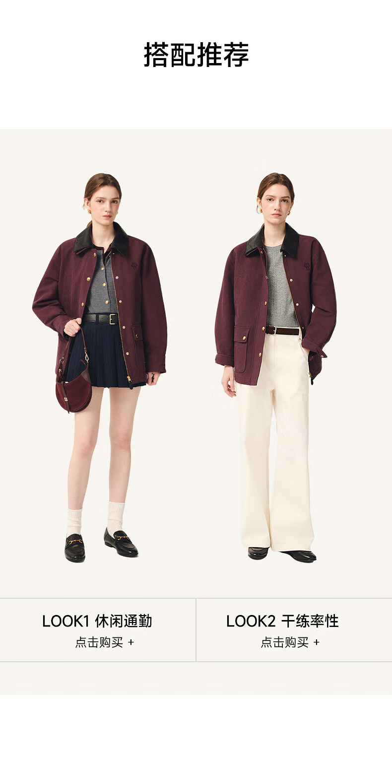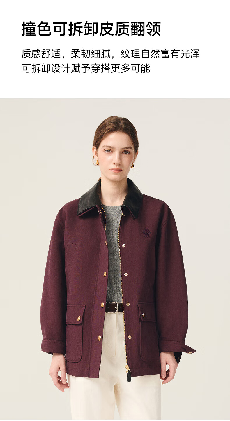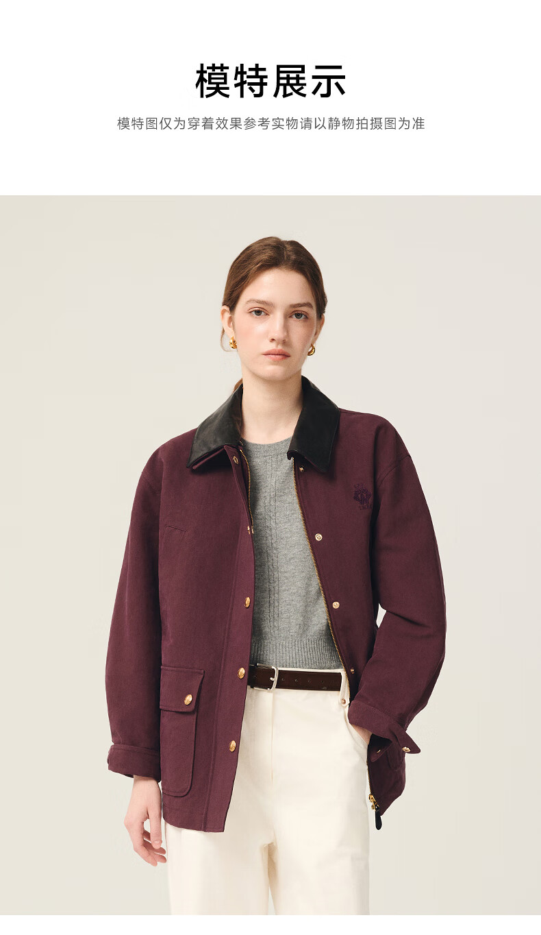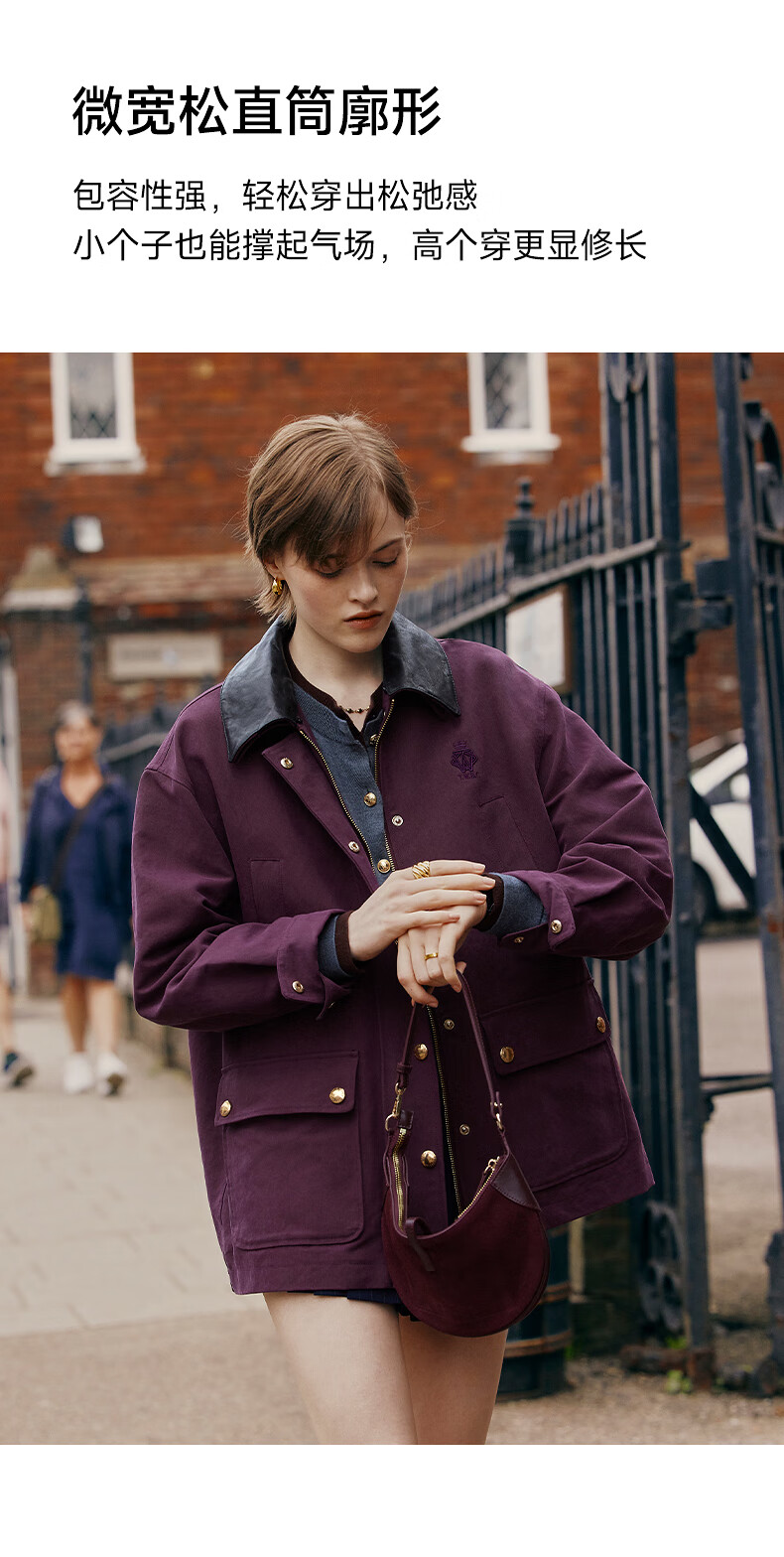 Teenie Weenie [Focus Bath] Bear women's retro loose short jacket 25 autumn new fashion jacket Burgundy S