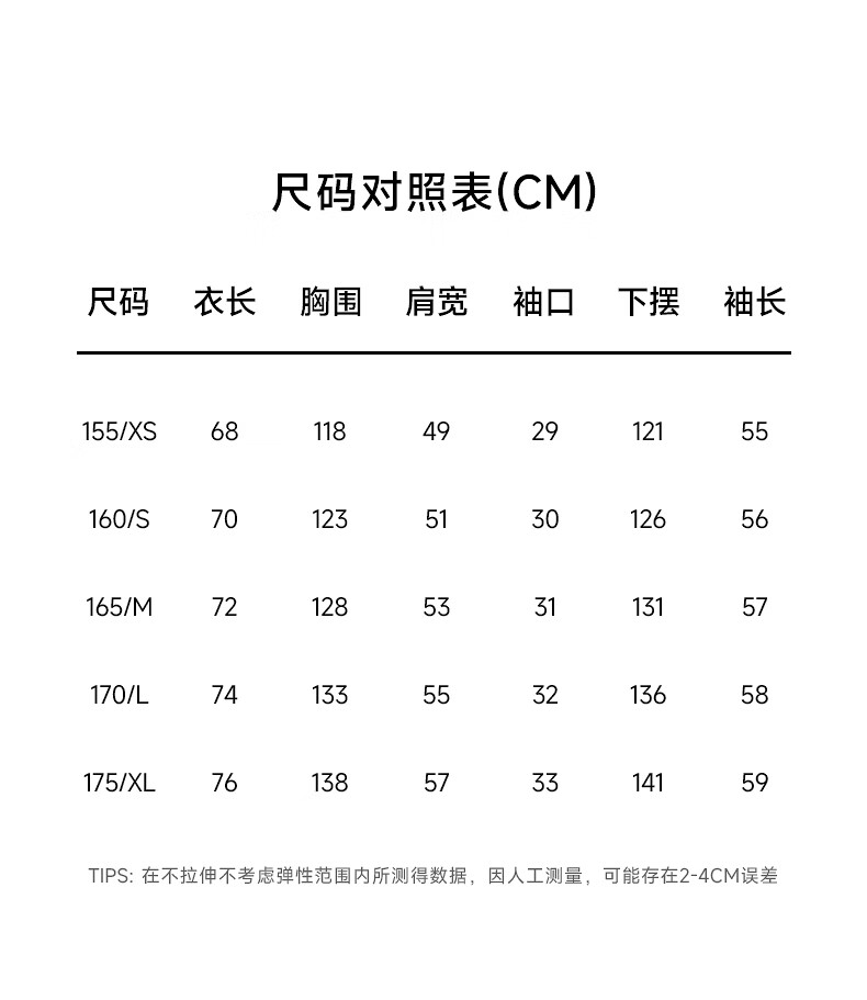 China (cm) 160-165/84-86 165-170 / 88-90 167-172 / 92-96 168-173 / 98-102 170-176 / 106-110