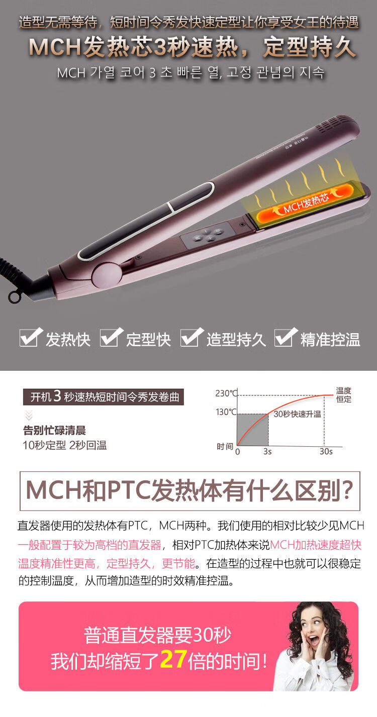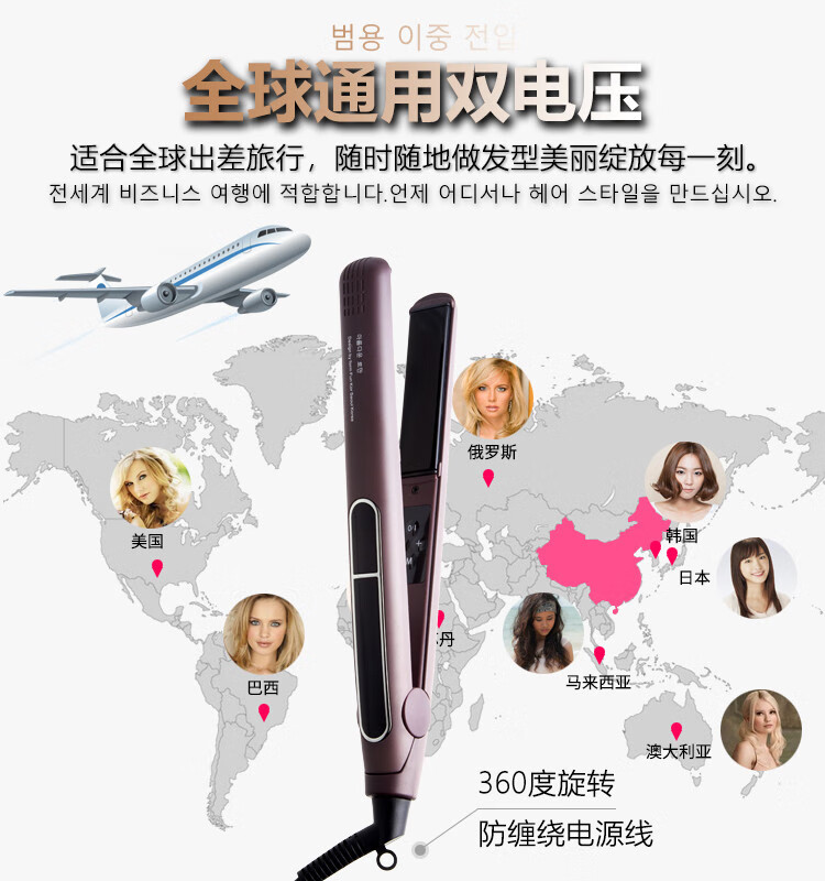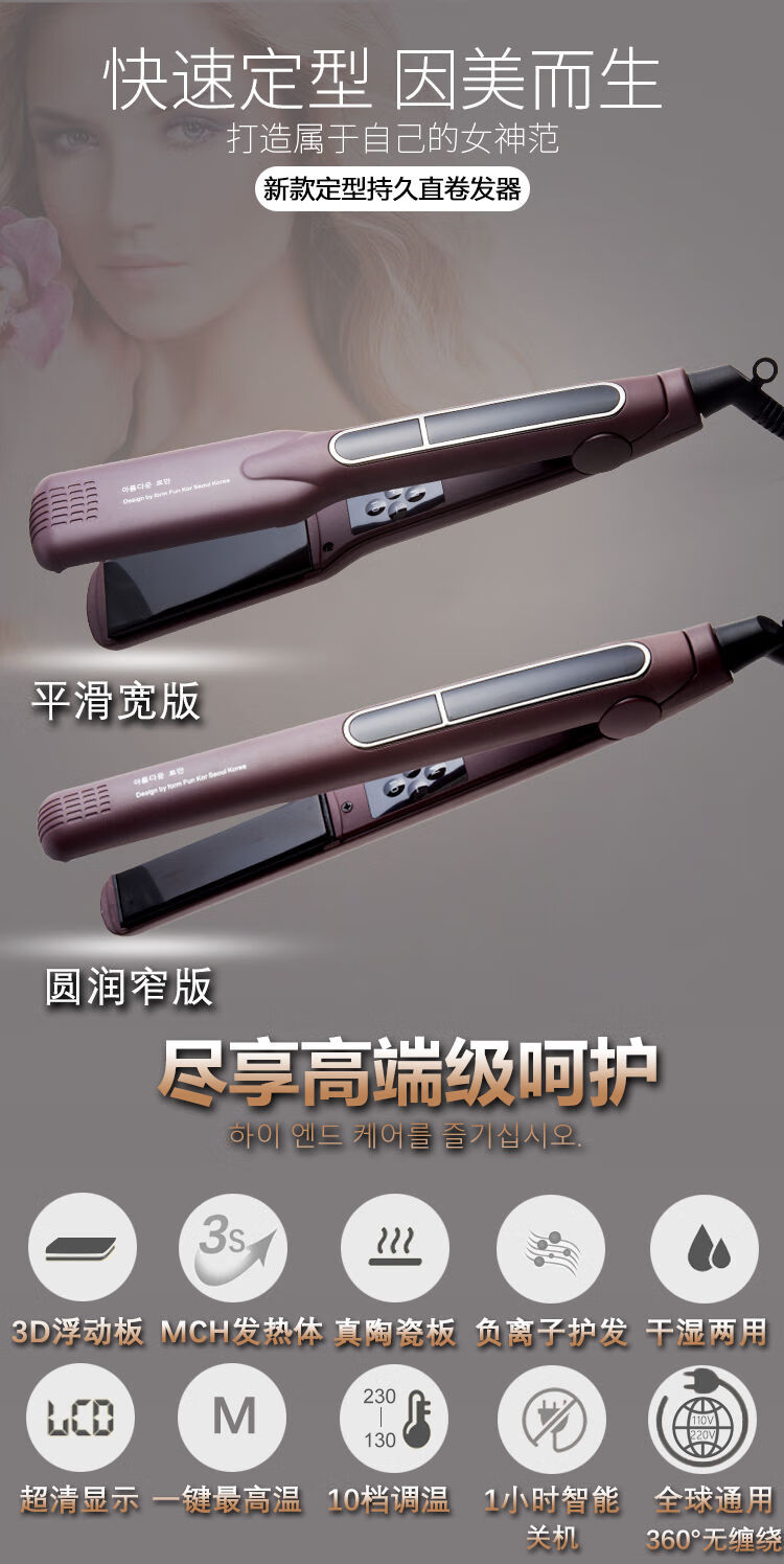 OTHER/Other Korean waterproof ply straight hair curling dual-purpose stick pull hair straight board clip hair salon hair salon hair correction special RM-39 high-end upgrade version + overseas English three plug [narrow version straight curling dual-purpose