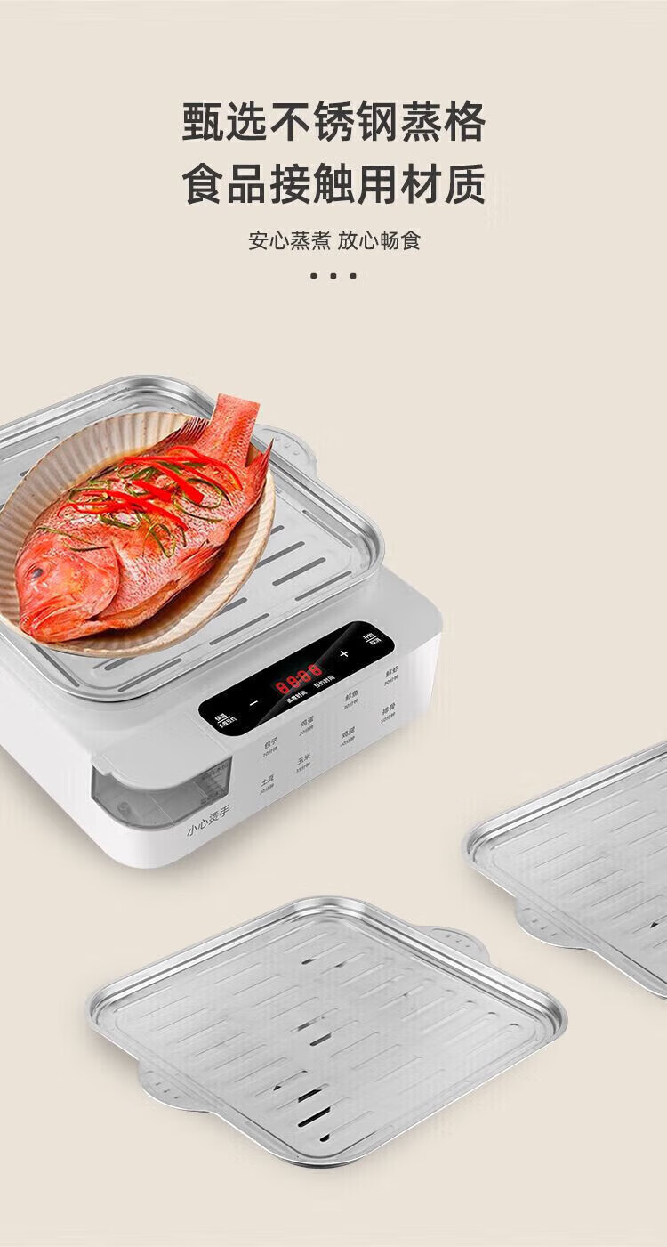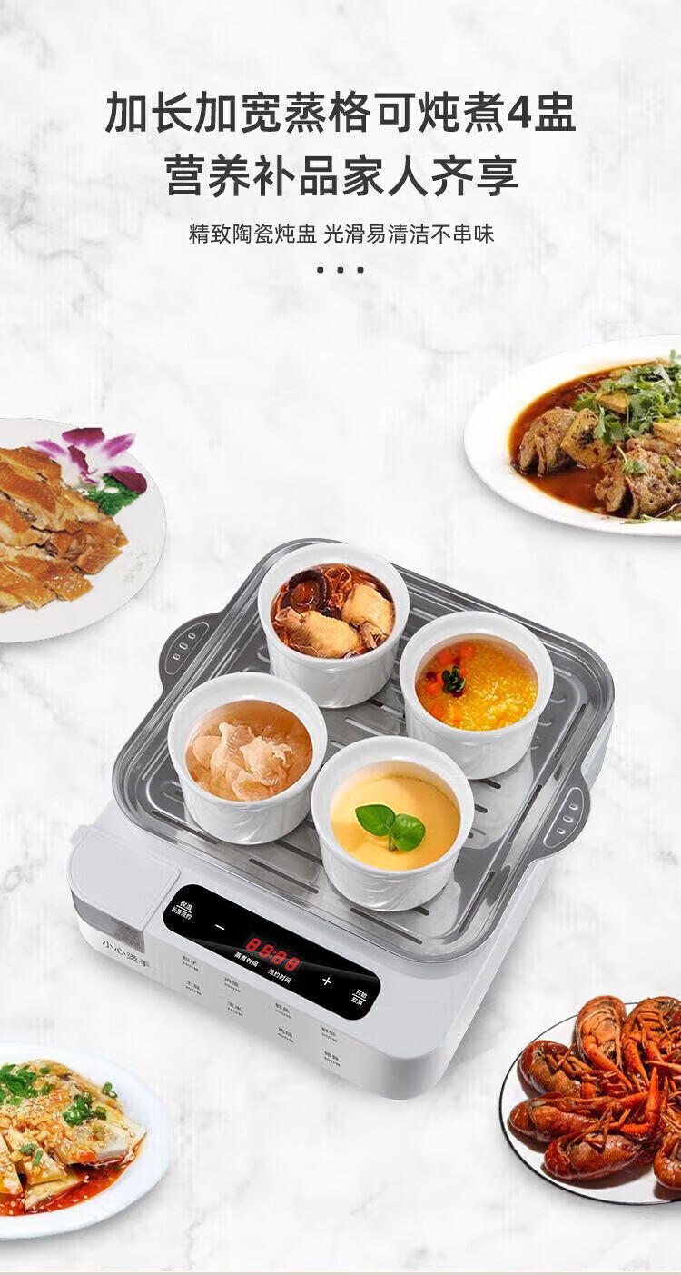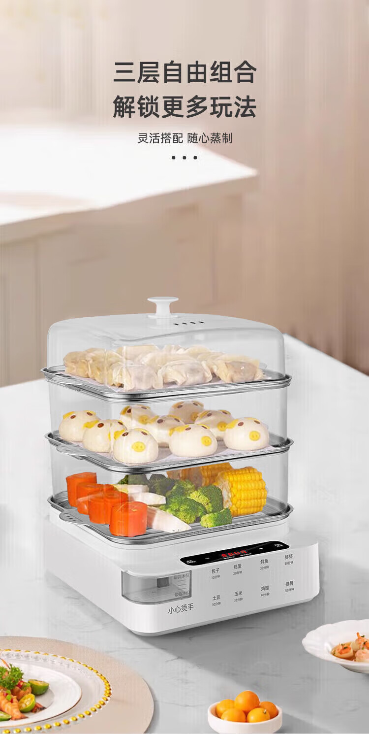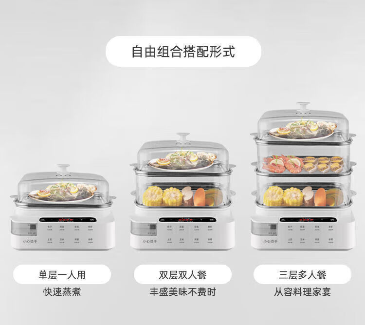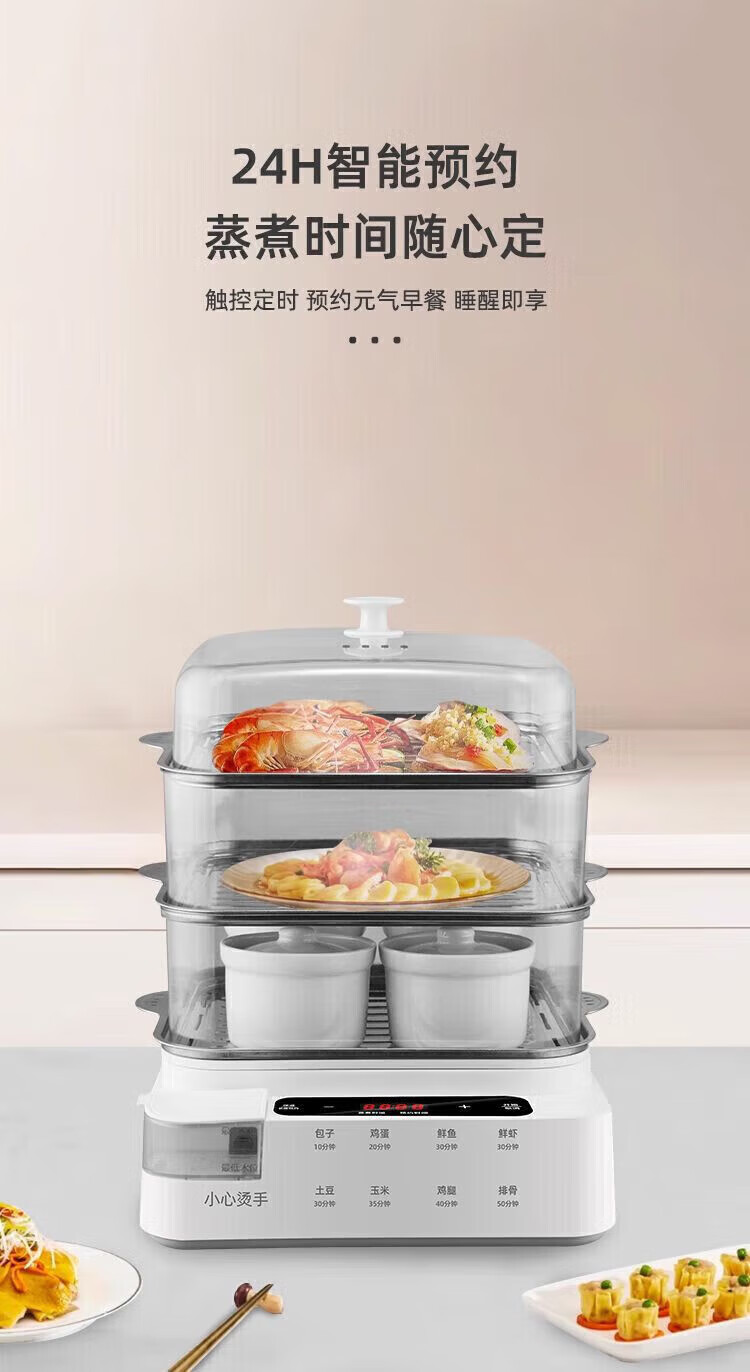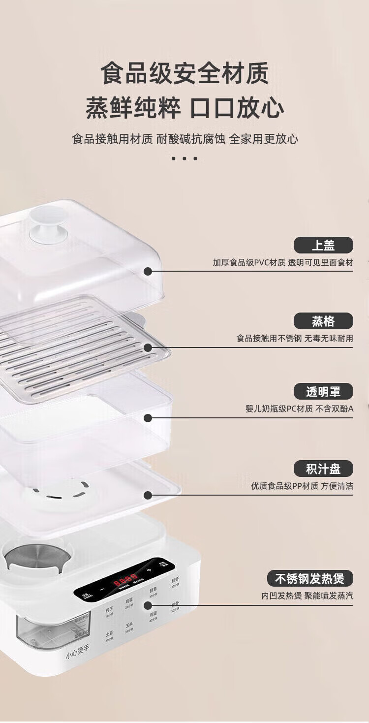 SPUCR Subo electric steamer three-layer 60L large-capacity household electric steamer multi-layer steam pot multi-purpose steamer multi-function electric steamer fully transparent window stainless steel steaming sheet [42L three-layer] + 4 stew cups high-end stainless steel model