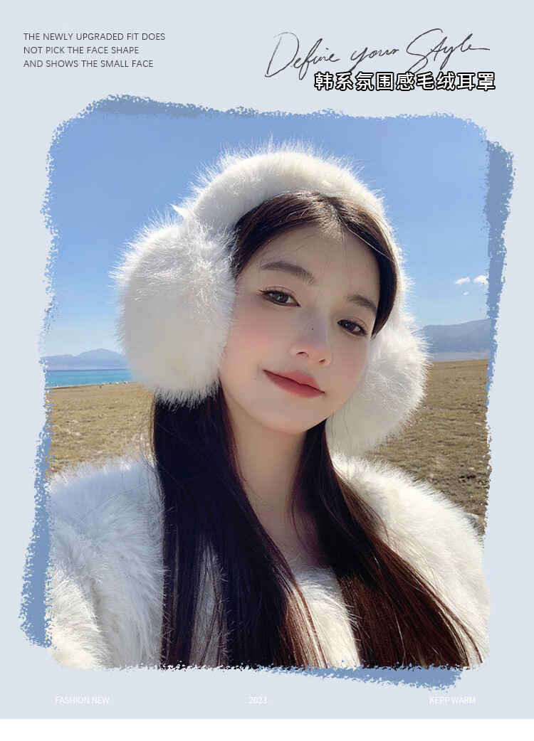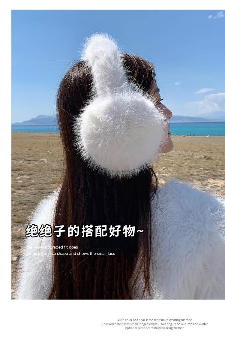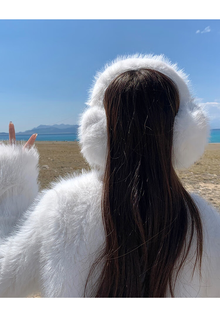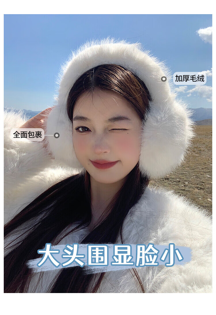 TUTORGOOSE earmuffs for women winter 2025 new white plush warm windproof earbags to prevent cold plus velvet ear covers antifreeze earmuffs [official authentic] white