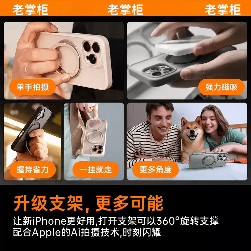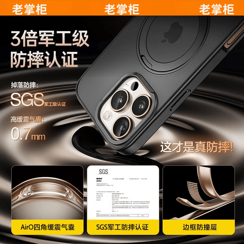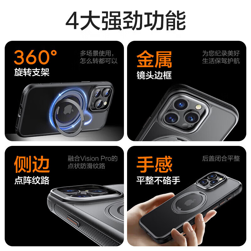 TORRAS mobile phone case, new cooling magnetic suction camera button, long-term use without yellowing, suitable for Apple 14/15/16/17 Obsidian Black, newly upgraded military quality, built-in buffer airbag rotating bracket iPhone 15pro [camera button fully included]
