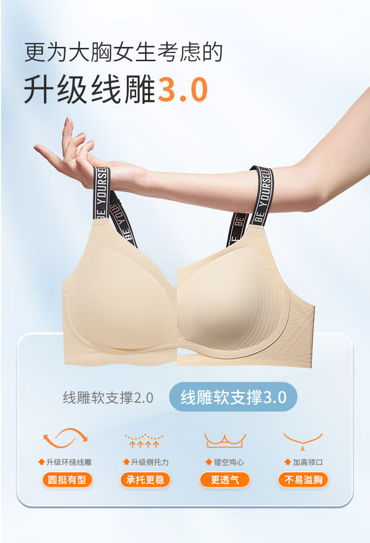 Toffee Pie [Exclusively for Bloggers] Thread Engraving 3.0 Seamless Support Bra for Women without Wires, Large Breasts Revealing Small Bras, Push-Up Bra Thread Engraving 3.0 Showing Small Cups - Oatmeal Color M 3[75F-G,80E-F]