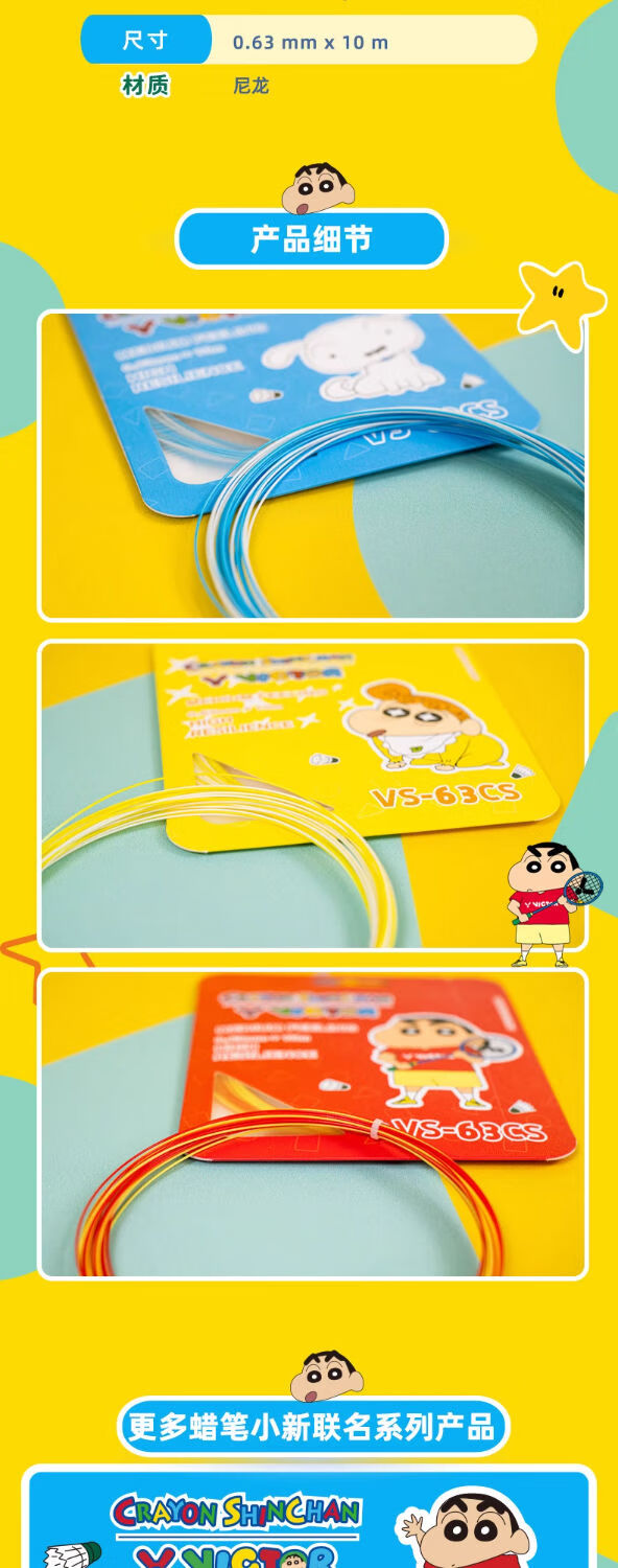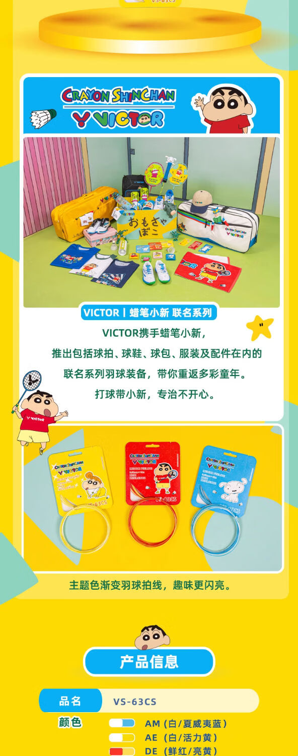 VICTOR genuine VICTOR victory badminton racket string Crayon Shin-chan co-branded VS-63CS color elastic string VS-63CS AE white/vital yellow
