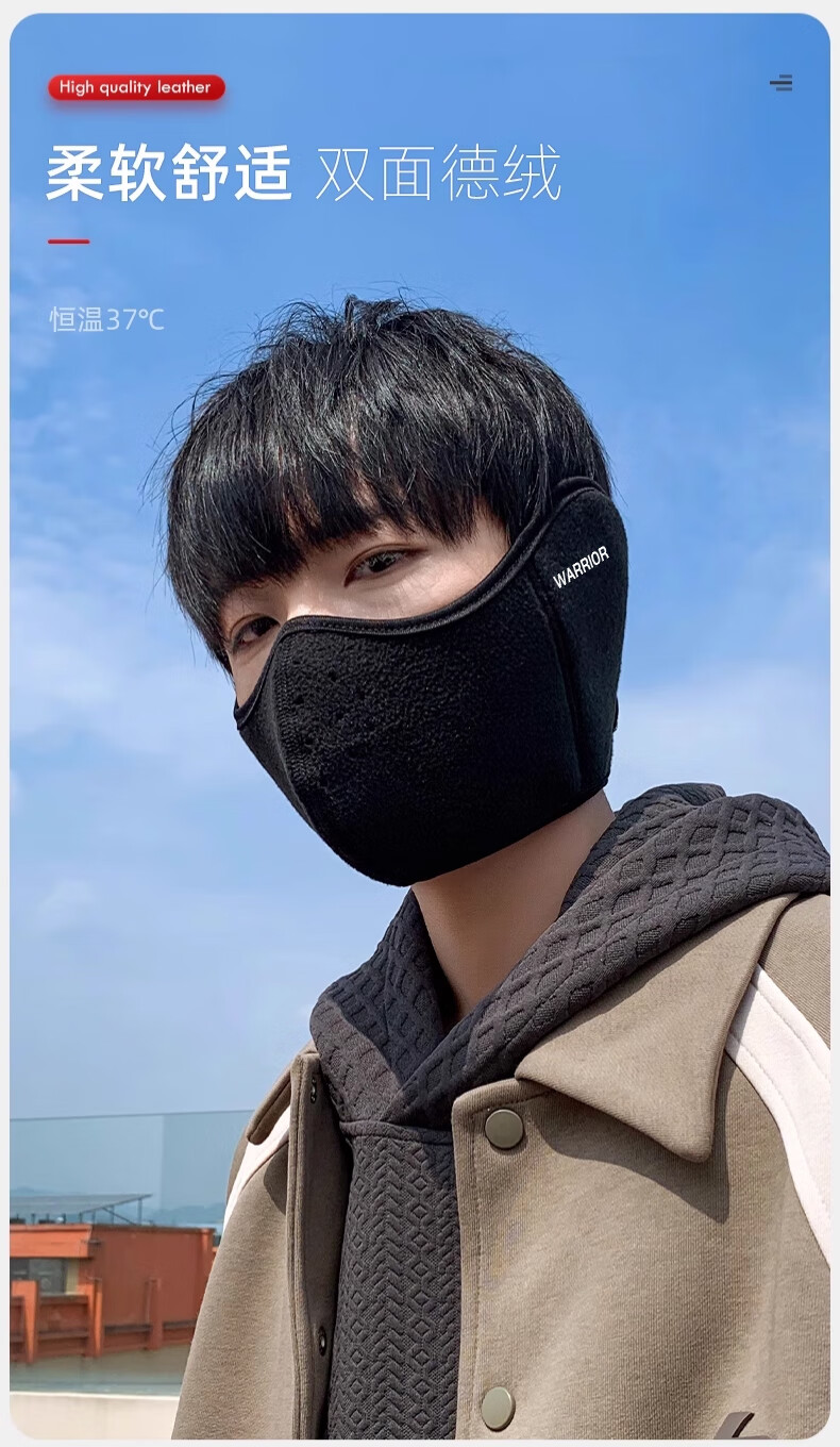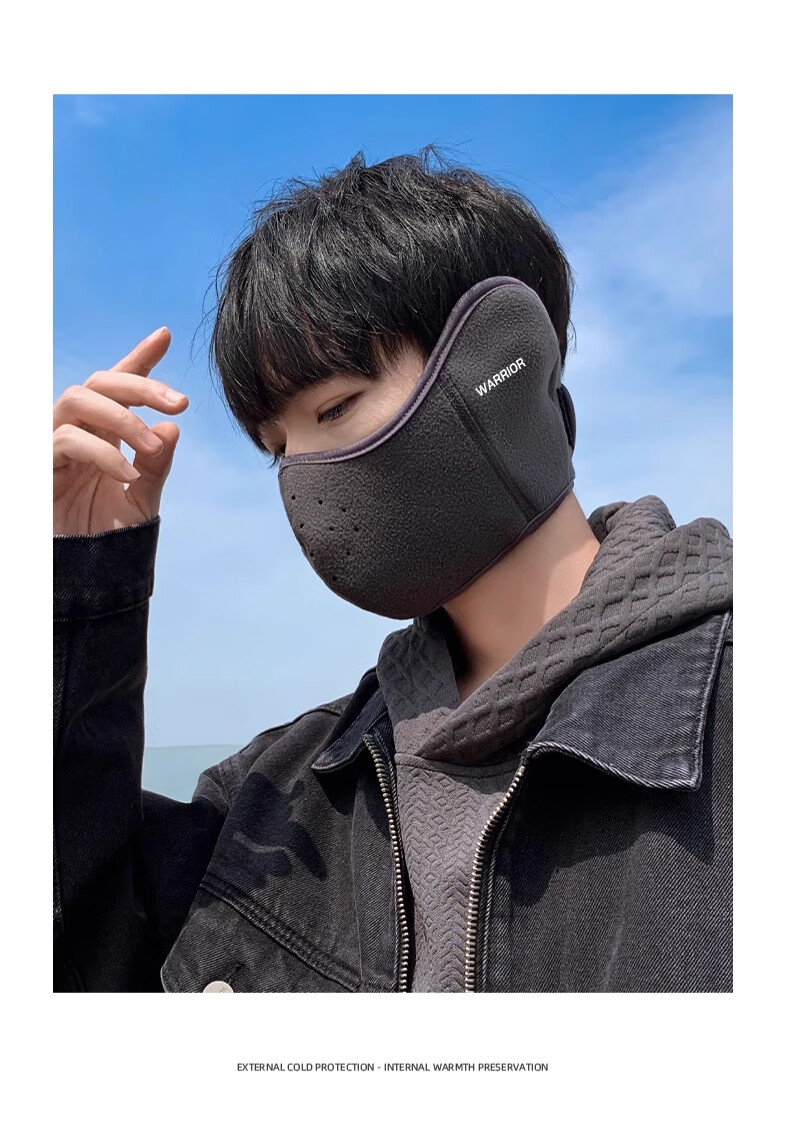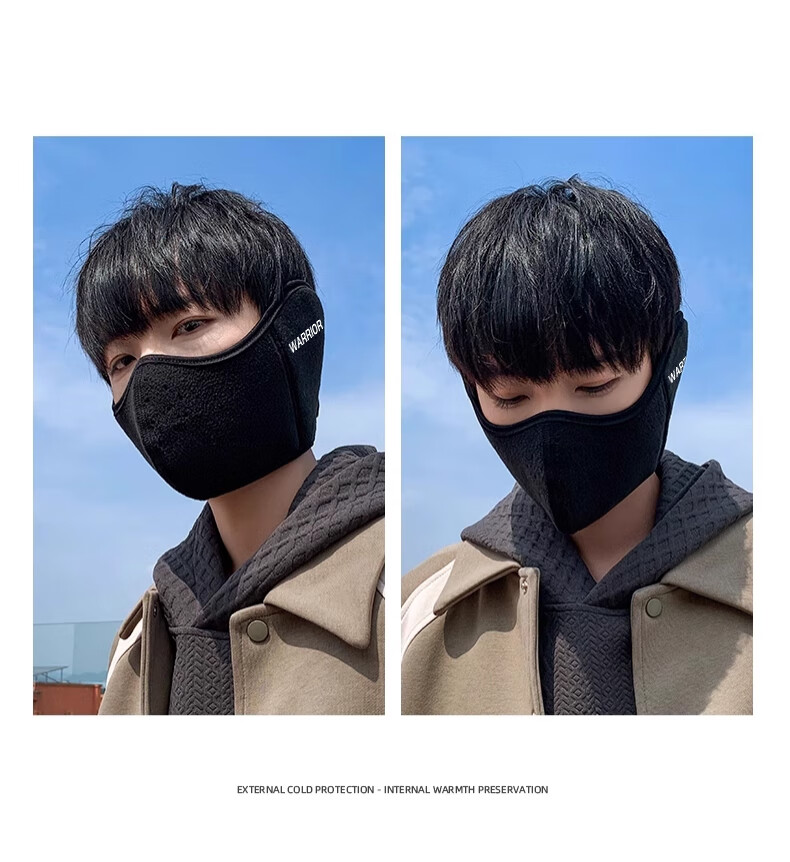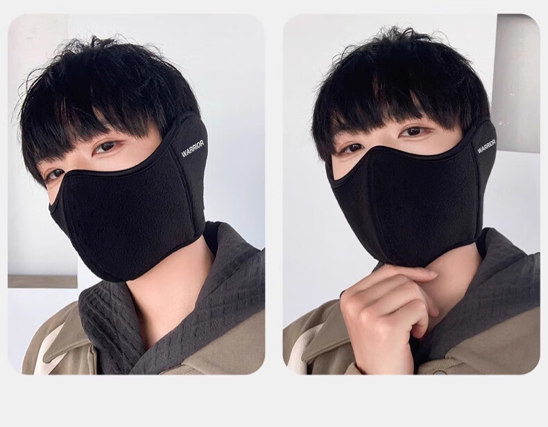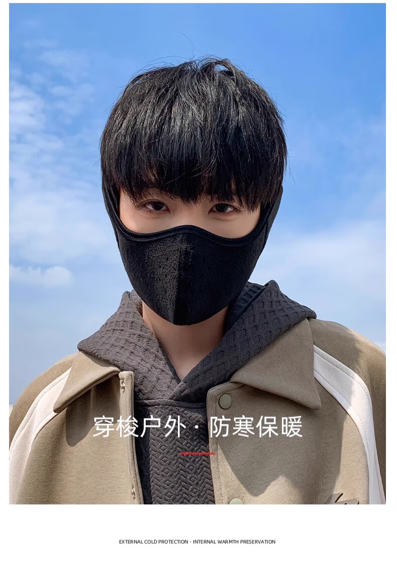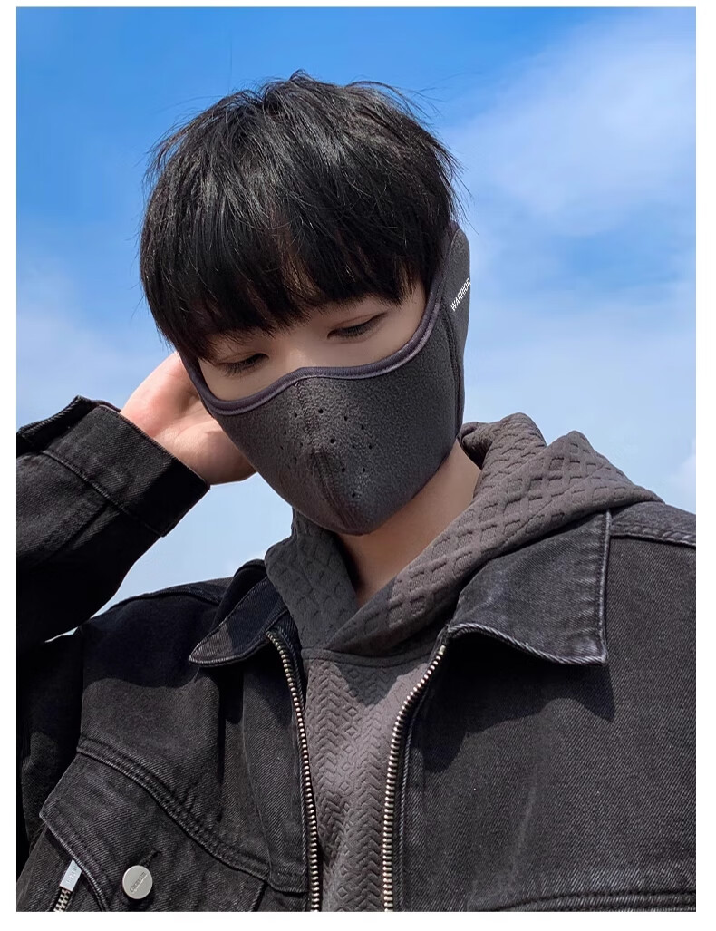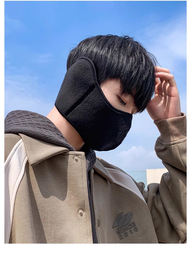 Huili mask autumn and winter men with velvet warmth and windproof mask earmuffs two-in-one breathable and non-stuffy riding electric bike ear protection women black [upgraded breathable hole]