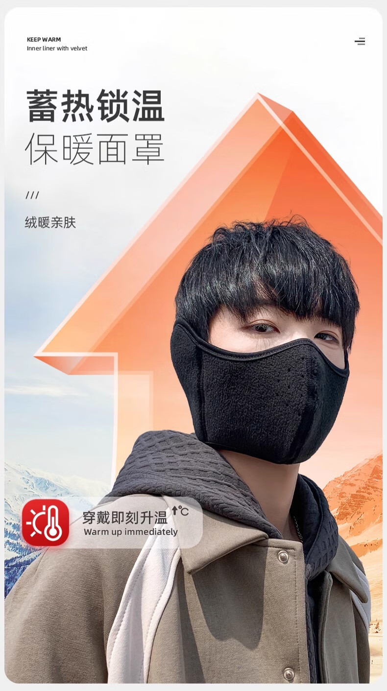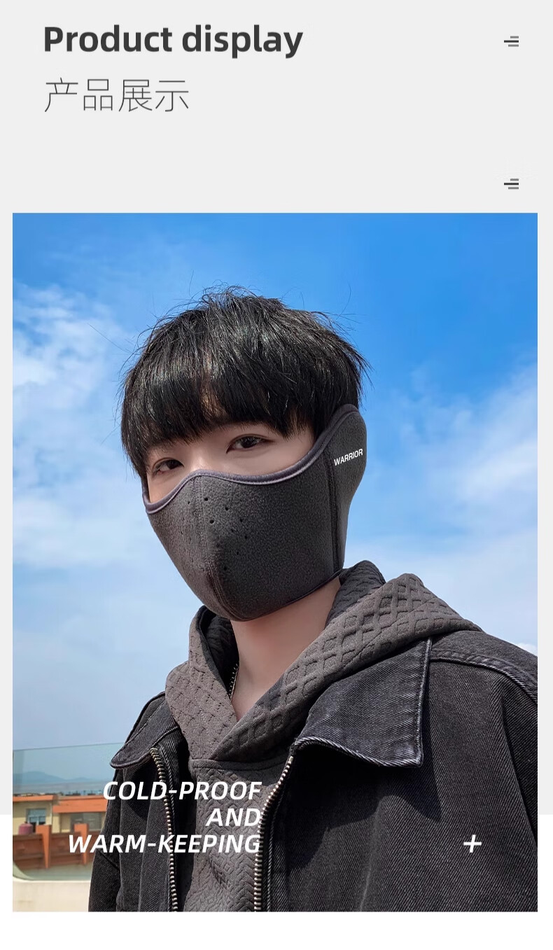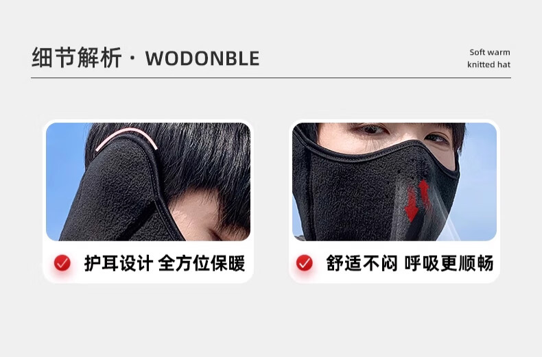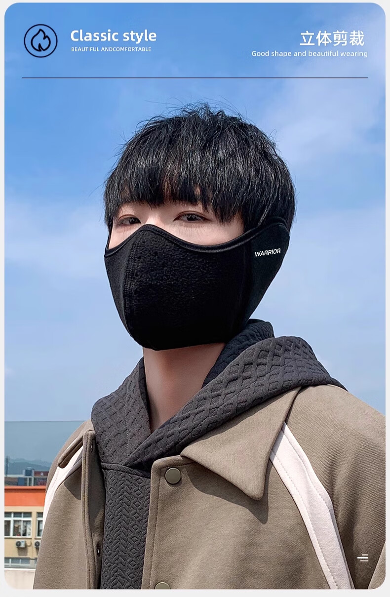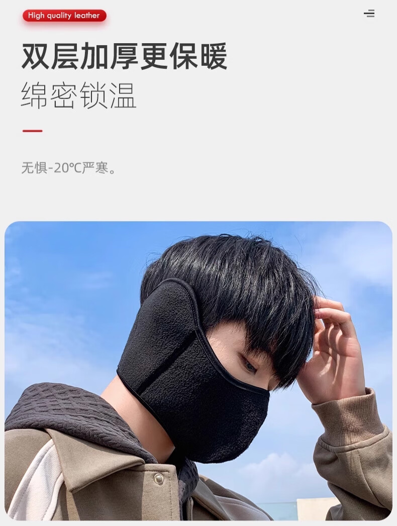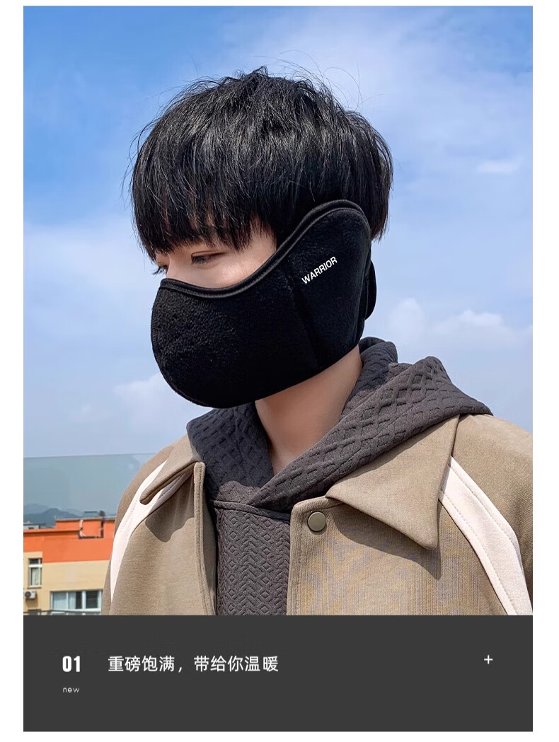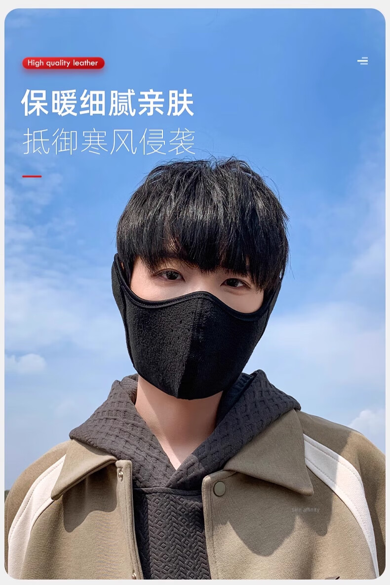 Huili mask autumn and winter men with velvet warmth and windproof mask earmuffs two-in-one breathable and non-stuffy riding electric bike ear protection women black [upgraded breathable hole]