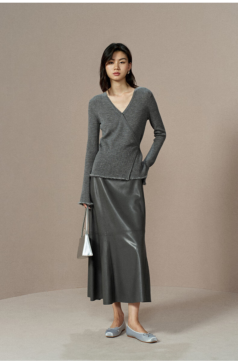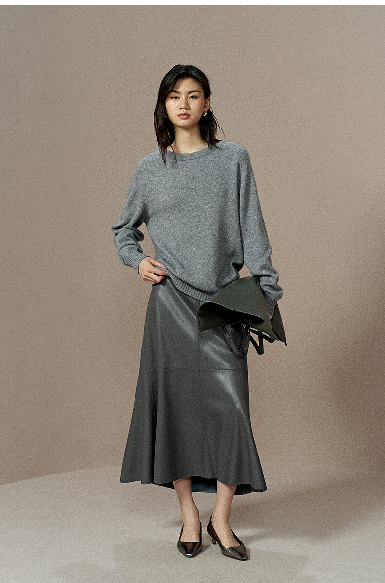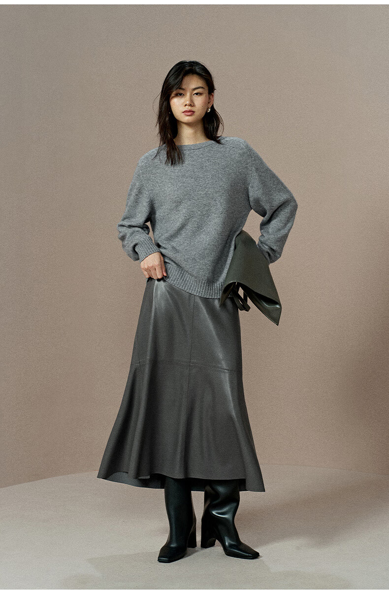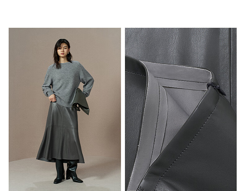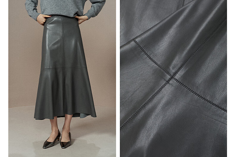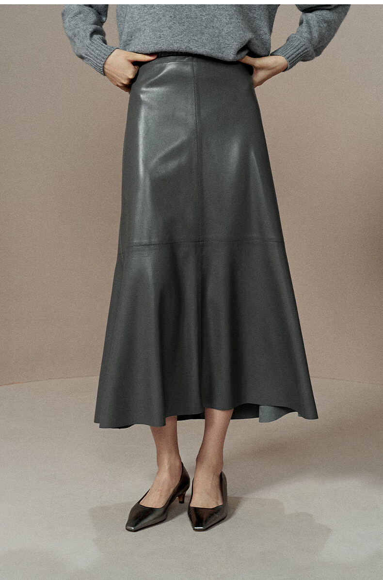 Zhizhi Hushanhao simple textured leather fishtail skirt mid-length women's 25 autumn and winter new style mist gray L
