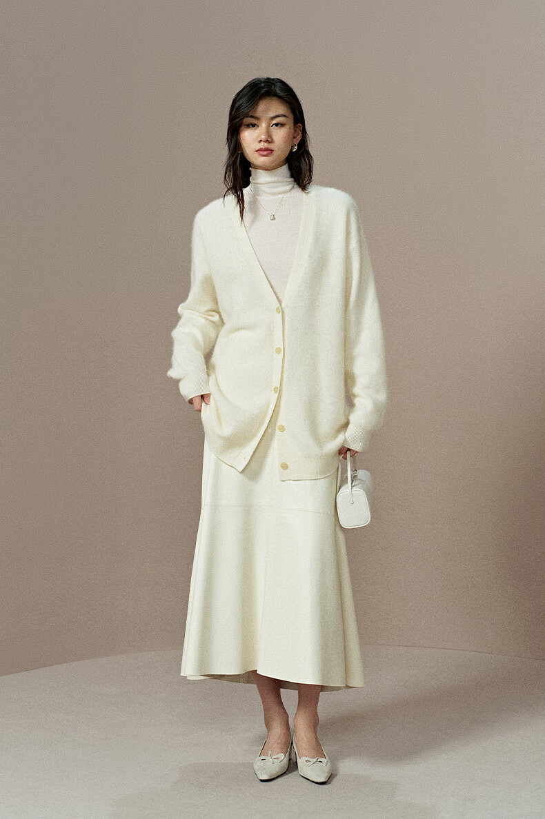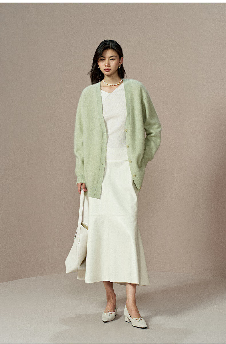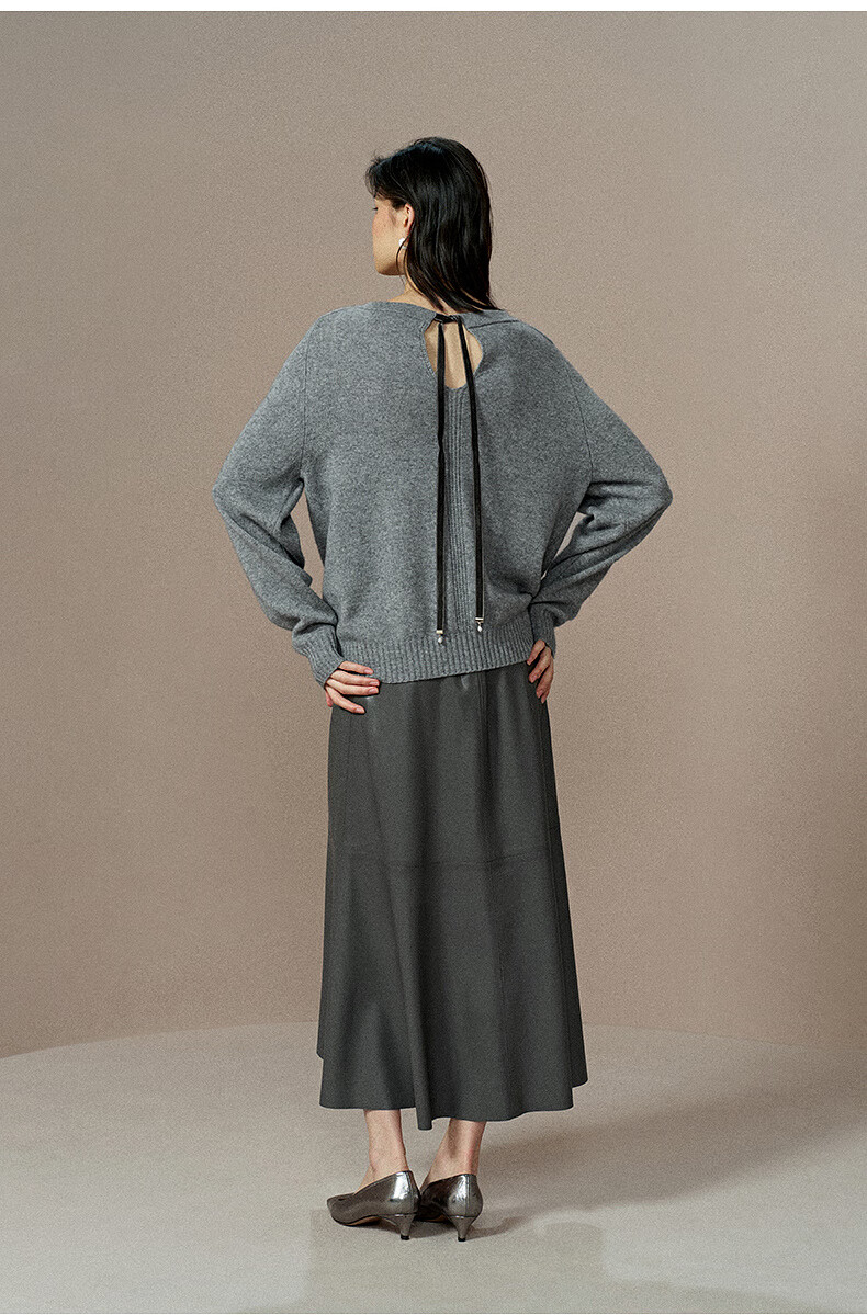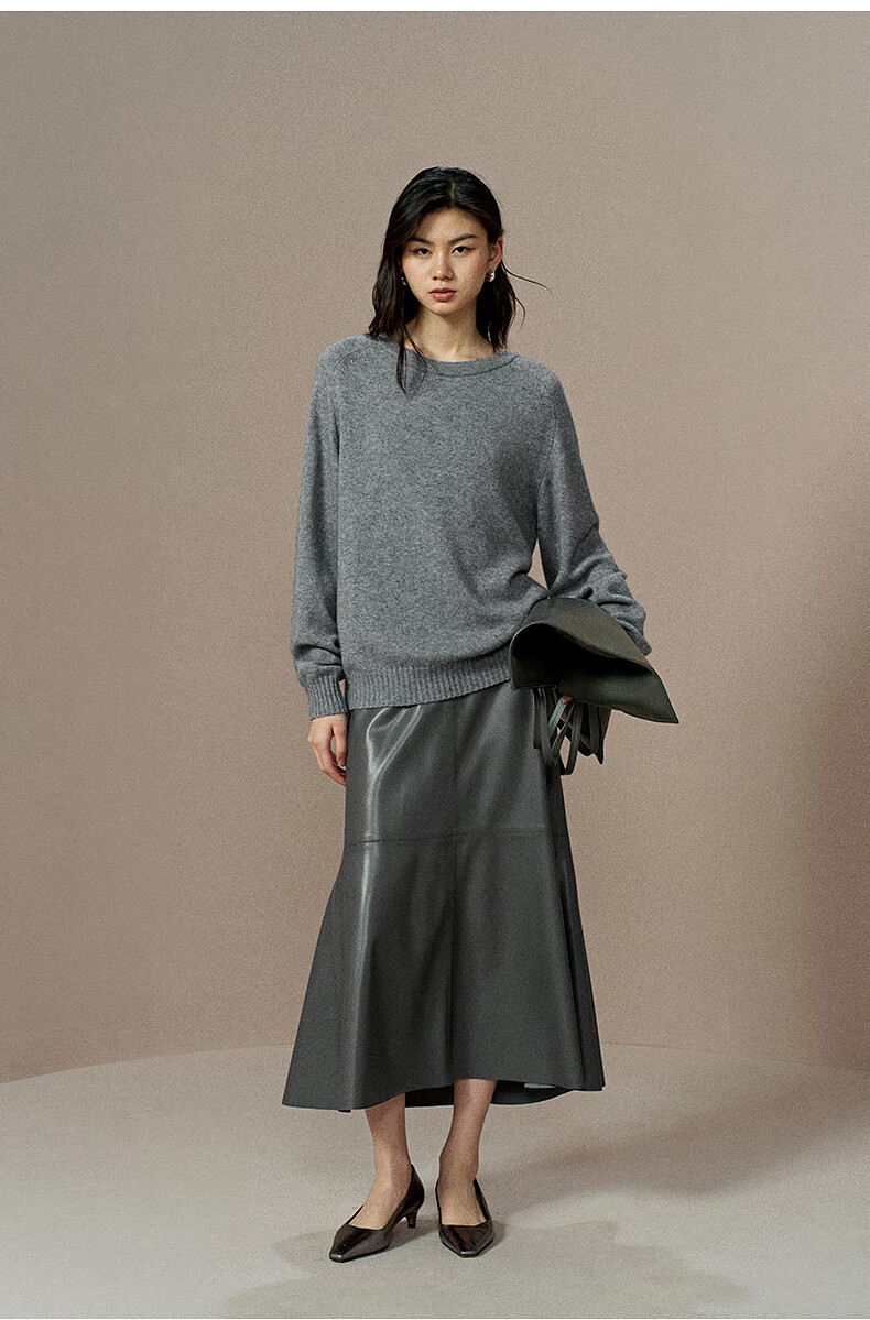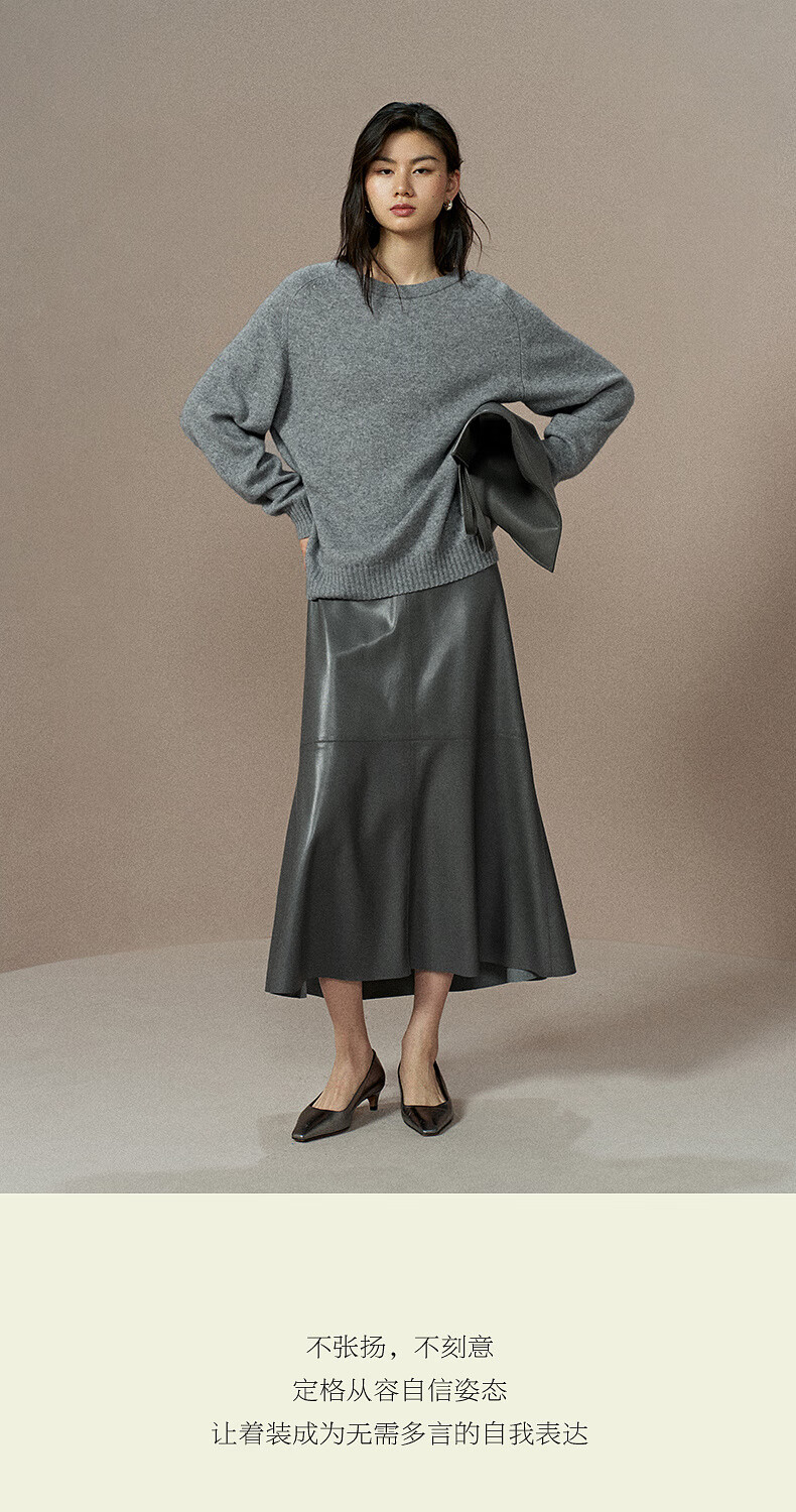 Zhizhi Hushanhao simple textured leather fishtail skirt mid-length women's 25 autumn and winter new style mist gray L
