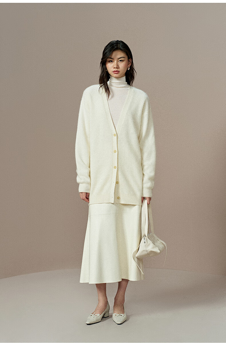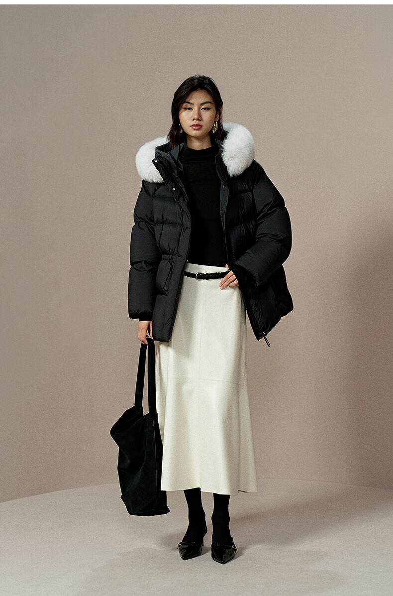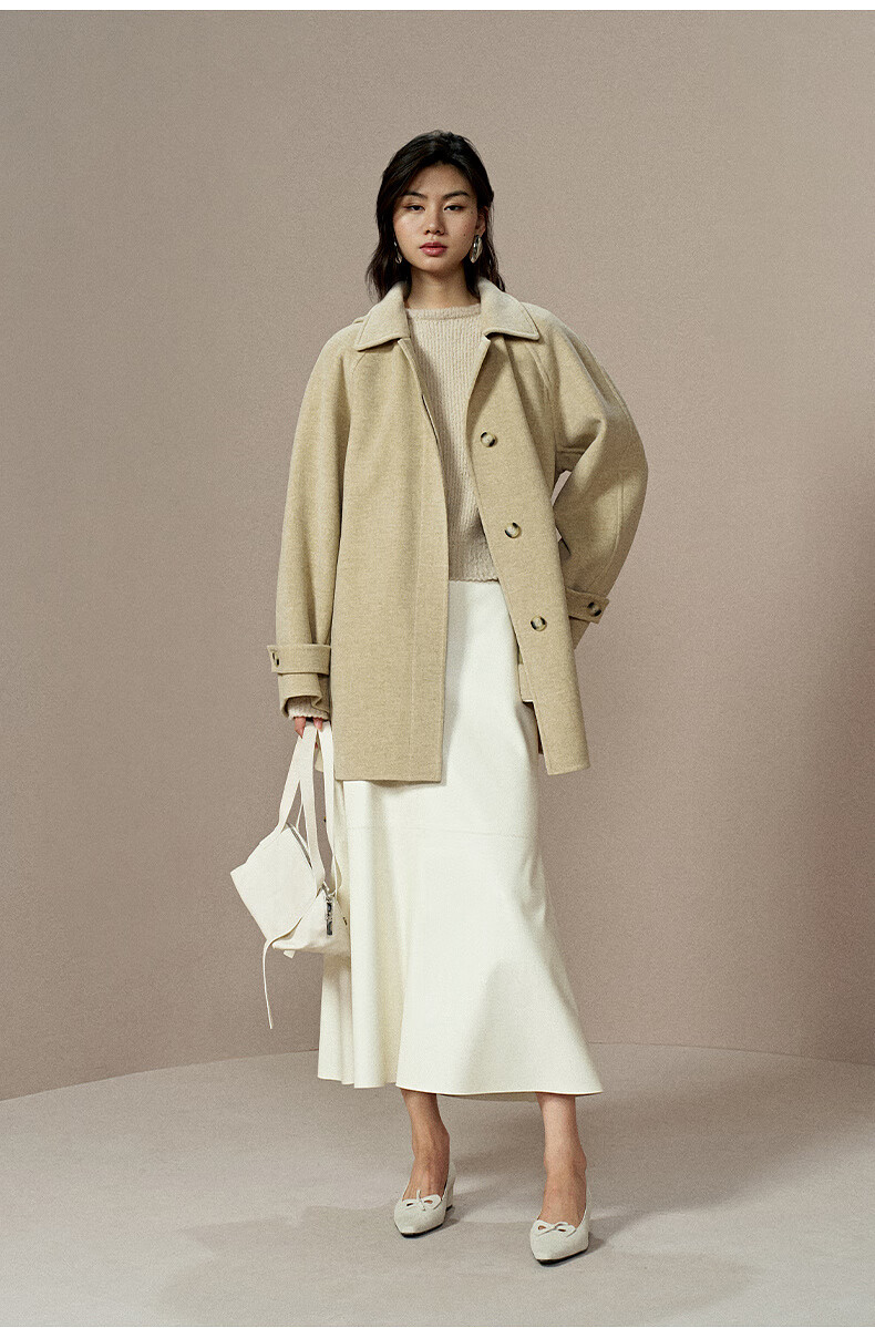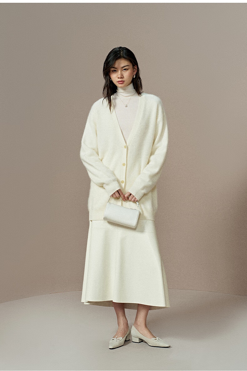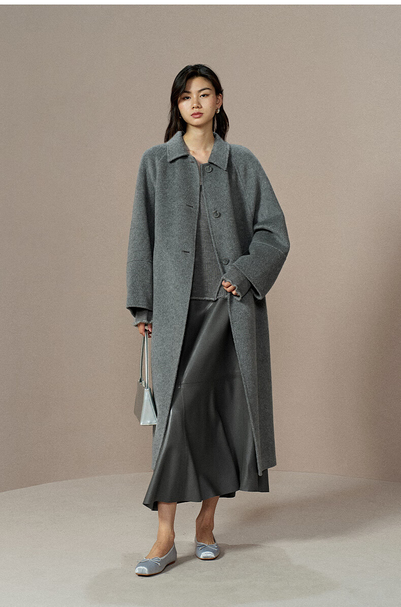 Zhizhi Hushanhao simple textured leather fishtail skirt mid-length women's 25 autumn and winter new style mist gray L