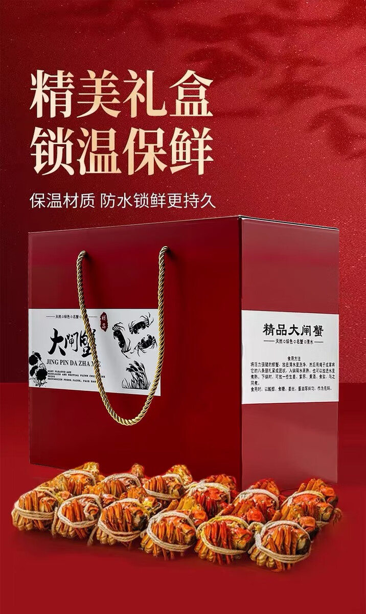 【礼盒装】公母对鲜活蟹黄世家兴化红膏大闸蟹当天发货次日达包邮 公3两+母2两 5对10只