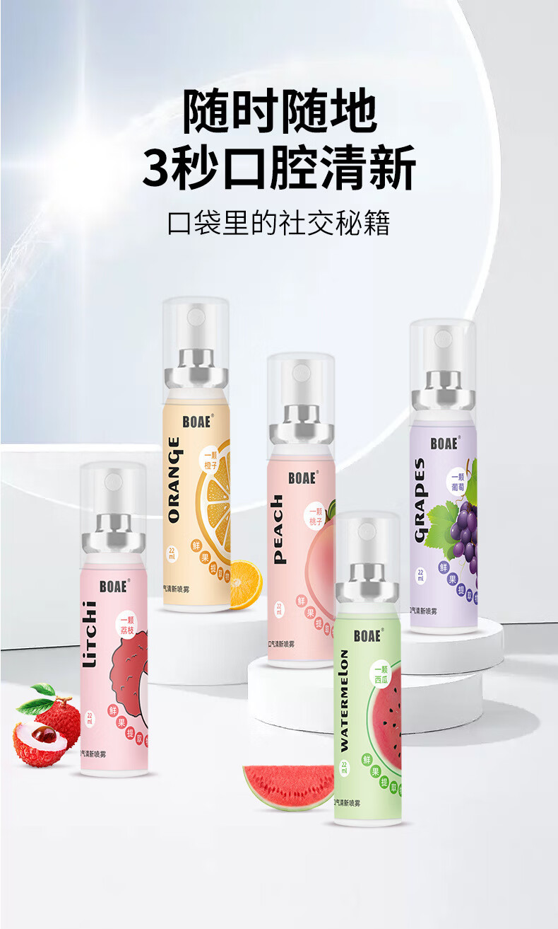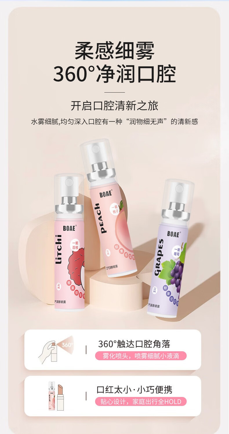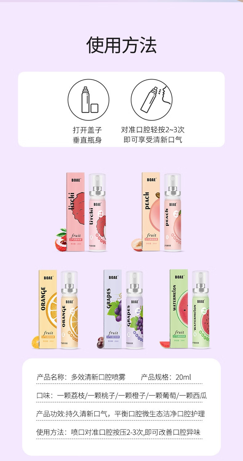 BOAE Oral Spray Fruit Flavor Spray 20ml Tone Freshing Age Long-lasting Fragrance Fresh Breathing Fruit Dental Spray-Fresh Breathing