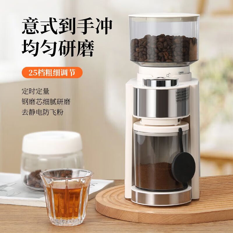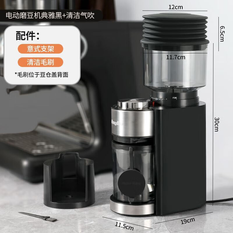 Electric bean grinder coffee bean grinder coffee bean grinder household small coffee machine grinder 420 stainless steel core grinder + residual powder discharger丨Twilight Black